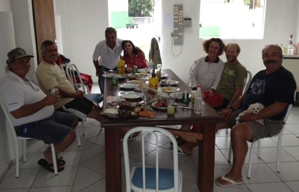 No sábado a tarde uma surpresa.. dois veleiros chegando ao CNA. O Renato no trapiche deu as boas vindas e uma breve incursão pelo Clube. A surpresa foi que entre os novos conhecidos estava o Eloir, amigo da Edi e do Negrão (Capão da Canoa RS). Como bons gaúchos já veio o convite para o almoço de domingo, onde tivemos o prazer de nos reunir com o Geraldo, Herbert, Eloir (Veleiro Chez-Moa) e o casal Marga e Ricardo! O churrasco nem precisa falar… de espeto, uma delícia! A conversa animada como sempre é nos encontros do pessoal da Vela. Teve ainda uma visita ao Veleiro TAO (Marga/Ricardo) que nos receberam com um bom café e nos contaram um pouco de suas idas e vindas ao longo dos 3 últimos anos! Todos gente muito boa! Foi um prazer compartilhar da companhia! Nos despedimos já com vontade de tornar a vê-los! Bons ventos… sempre!