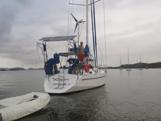 Ficamos com a foto de lembrança da Marga e do Ricardo, que estão subindo do Rio Guaiba para a Bahia de todos os Santos! Tenham uma excelente navegação!