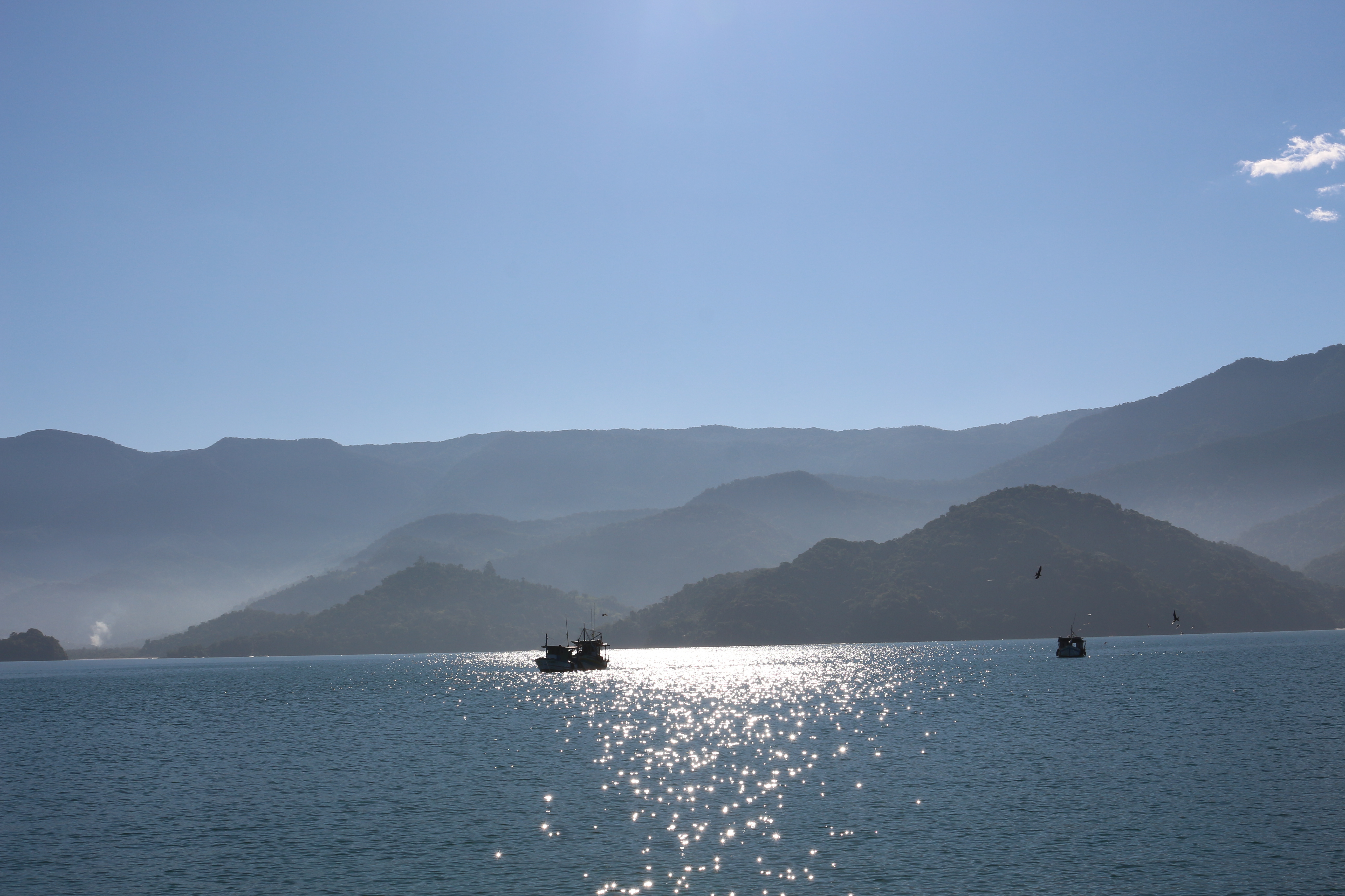 IMG_4262 IMG_4264 IMG_4255 IMG_4217Muito bom sair da marina e ficar no mar. Na marina temos o conforto da IMG_4218água, banheiros, acesso a cidade via táxi boat, mas por outro lado você fica parado, entre dois outros dois barcos e tem pouca privacidade. Como estávamos acostumados ficar na poita, como era no Clube Náutico de Antonina, que não possui pier de atracação, achamos estranho ficarmos assim paradinhos aqui. Já guardei as roupas de tempo, os fleeces, as jaquetas pesadas, pois desse que chegamos só sol e dias quentes. A noite refresca e um quebra vento é mais que suficiente. Penso nas toucas, cachecóis e outros acessórios trazidos por quem morava em Curitiba e que aqui não são usáveis  ☀️🐬⛵️😎👙👣. Namastê!