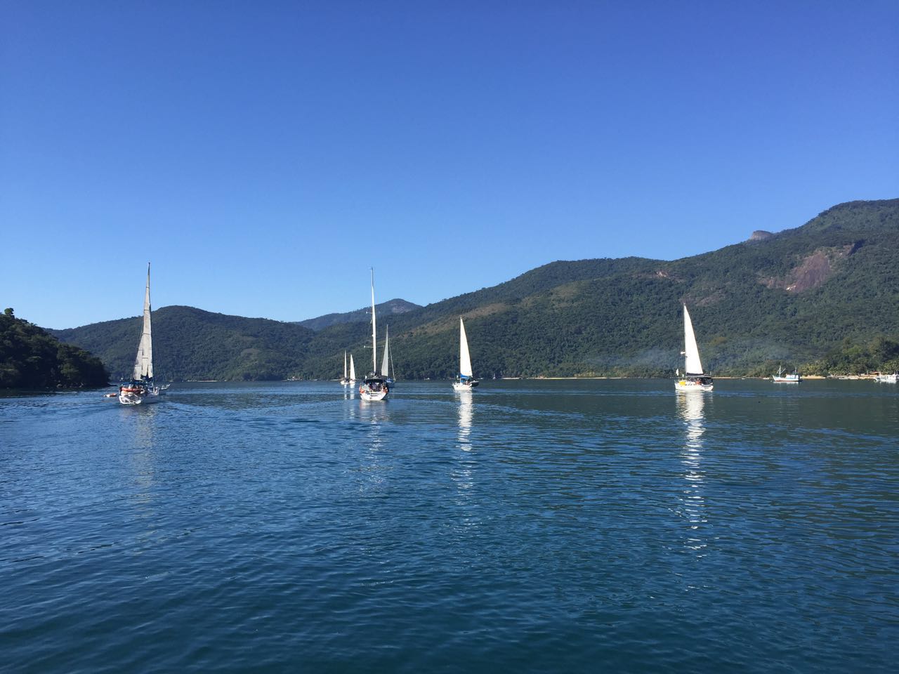 Hoje é sábado, saímos da Marina Farol de Paraty e fomos abastecer o barco na Imperial, depois seguimos rumo à Ilha da Bexiga, para nos juntar aos veleiros que saem de Paraty, rumo a Ilha do Cedro, onde a flotilha que fará o Cruzeiro Costa Verde se reunirá. O visual fantástico, com vários veleiros se alinhando e desenhando uma paisagem única no horizonte.