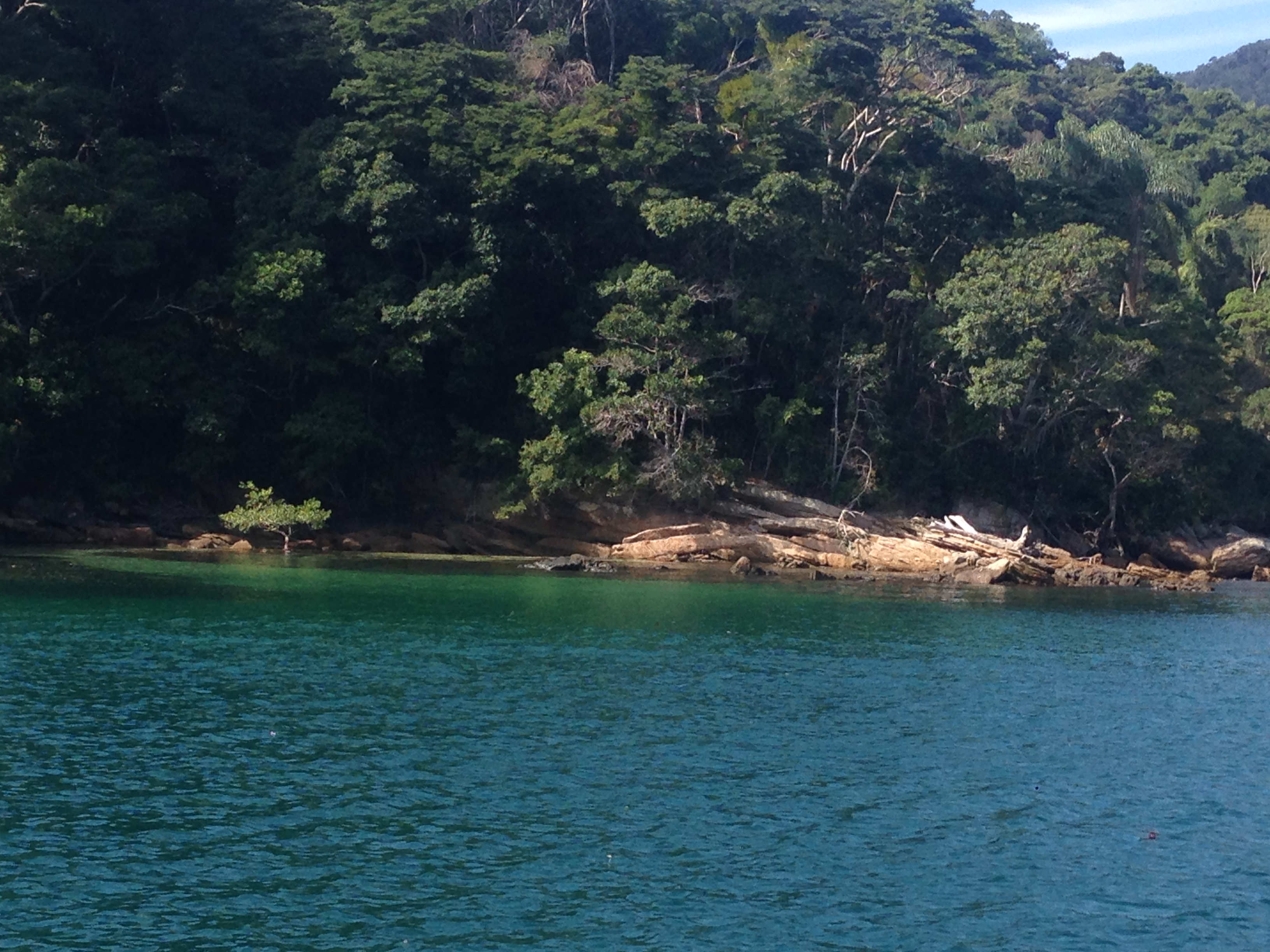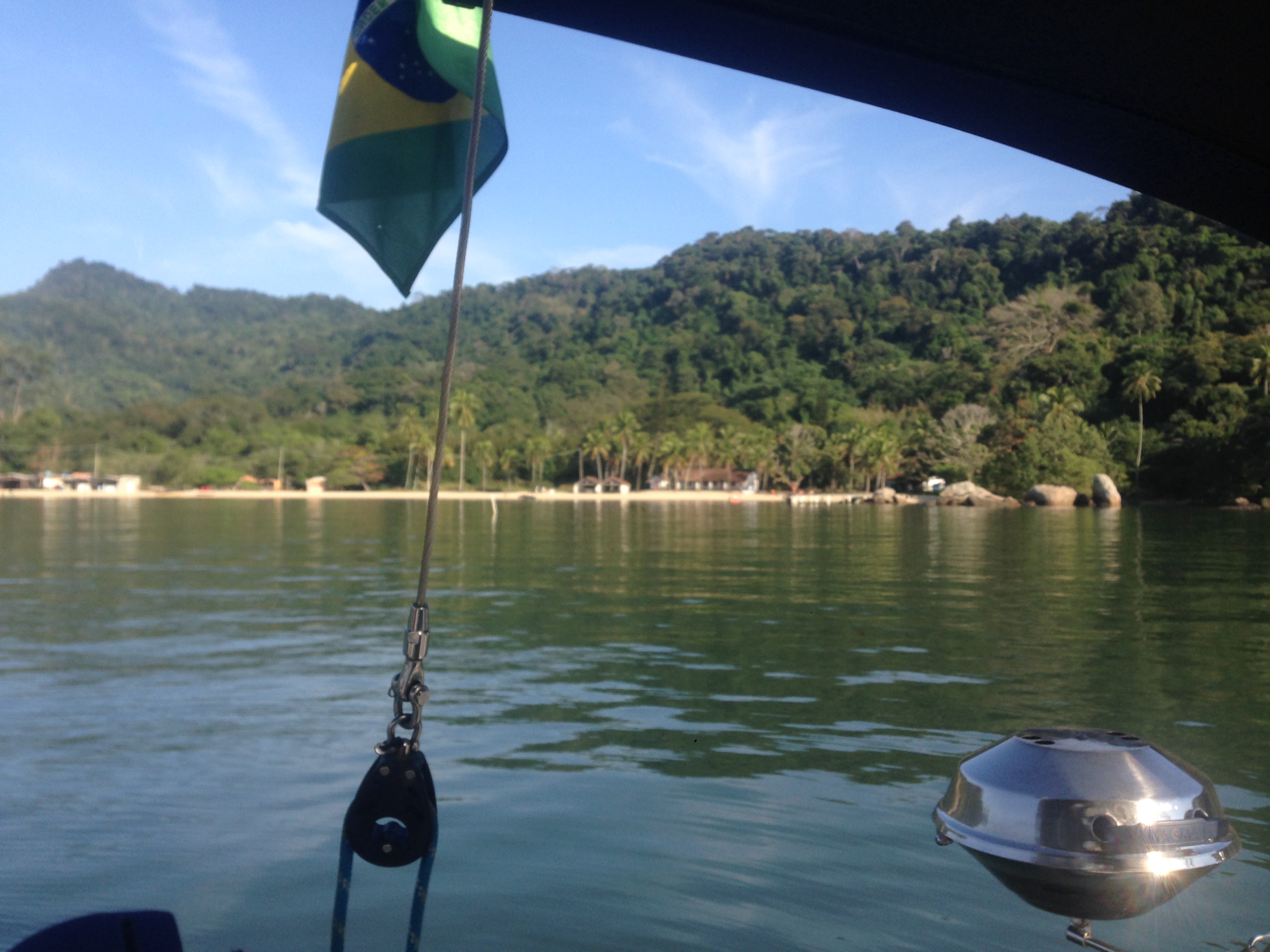 Na sexta cedo, fomos em terra com a Wiliam e a Janine, do Grão, andamos com a Bellinha e compramos alguns itens que faltavam na cozinha do Relax, entre eles uma penca de banana, que quando fui guardar percebi que tinha alguns casulinhos… assim, lembrando das recomendações, tirei todas as bananas da penca, lavei e sequei cada uma delas. Este é um cuidado para que não entre insetos & outros bichos a bordo.Junto com a flotilha seguimos para o próximo destino,o Sítio forte, praia da Tapera, já recomendada pelos velejadores paranaenses. No caminho seguimos o Grão, que adentrou mais à costa e nos mostrou um lugar belíssimo, a Lagoa Azul… o visual é fantástico, água azul clara, esmeralda e super transparente… com certeza voltaremos para passar um bom tempo ali.