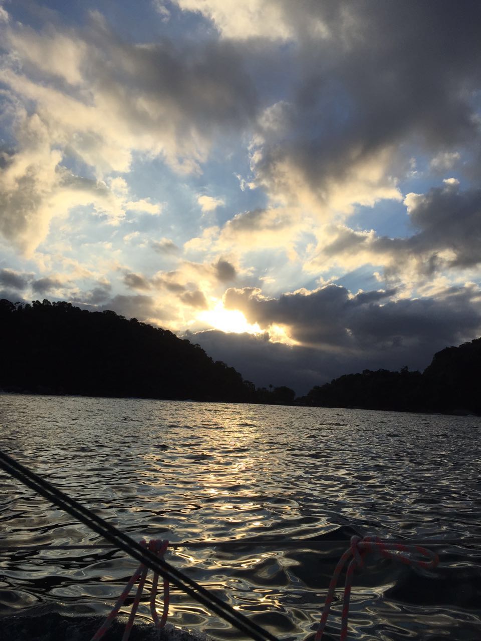É segunda e saimos cedo, 06h50m, rumo à Paraty. Veleiro Fé traçou a rota e fomos acompanhando. O mar estava crescido, muitas ondas e valas que encobriam boa parte do Fé. Mar de ressaca e comandante atento. Ficamos os três no cokpit, pois devido ao balanço não era confortável ficar na cabine. A Bella um pouco inquieta com o barulho das ondas mas já está ficando safa. Chegamos bem, em aproximadamente 4 horas.