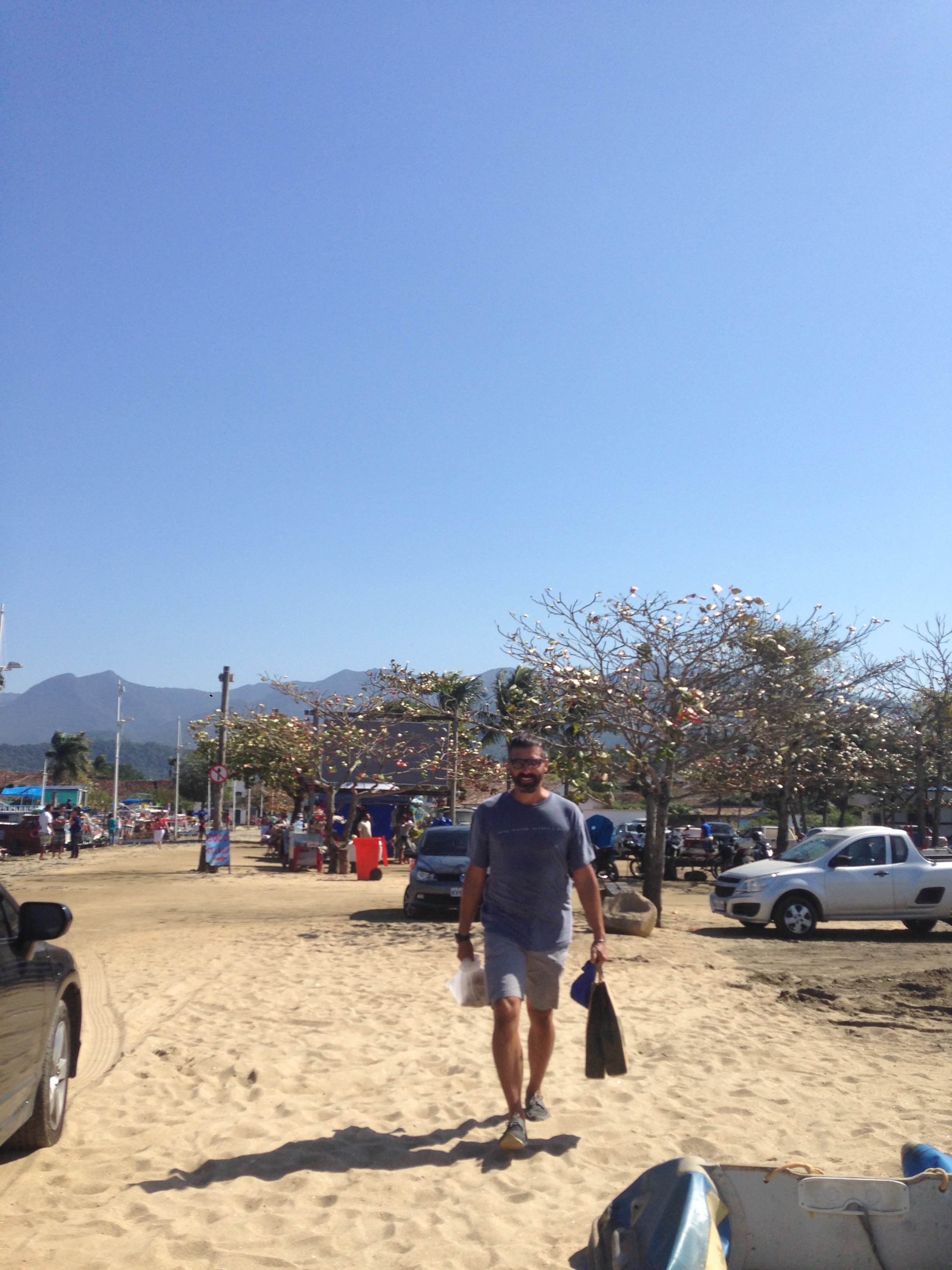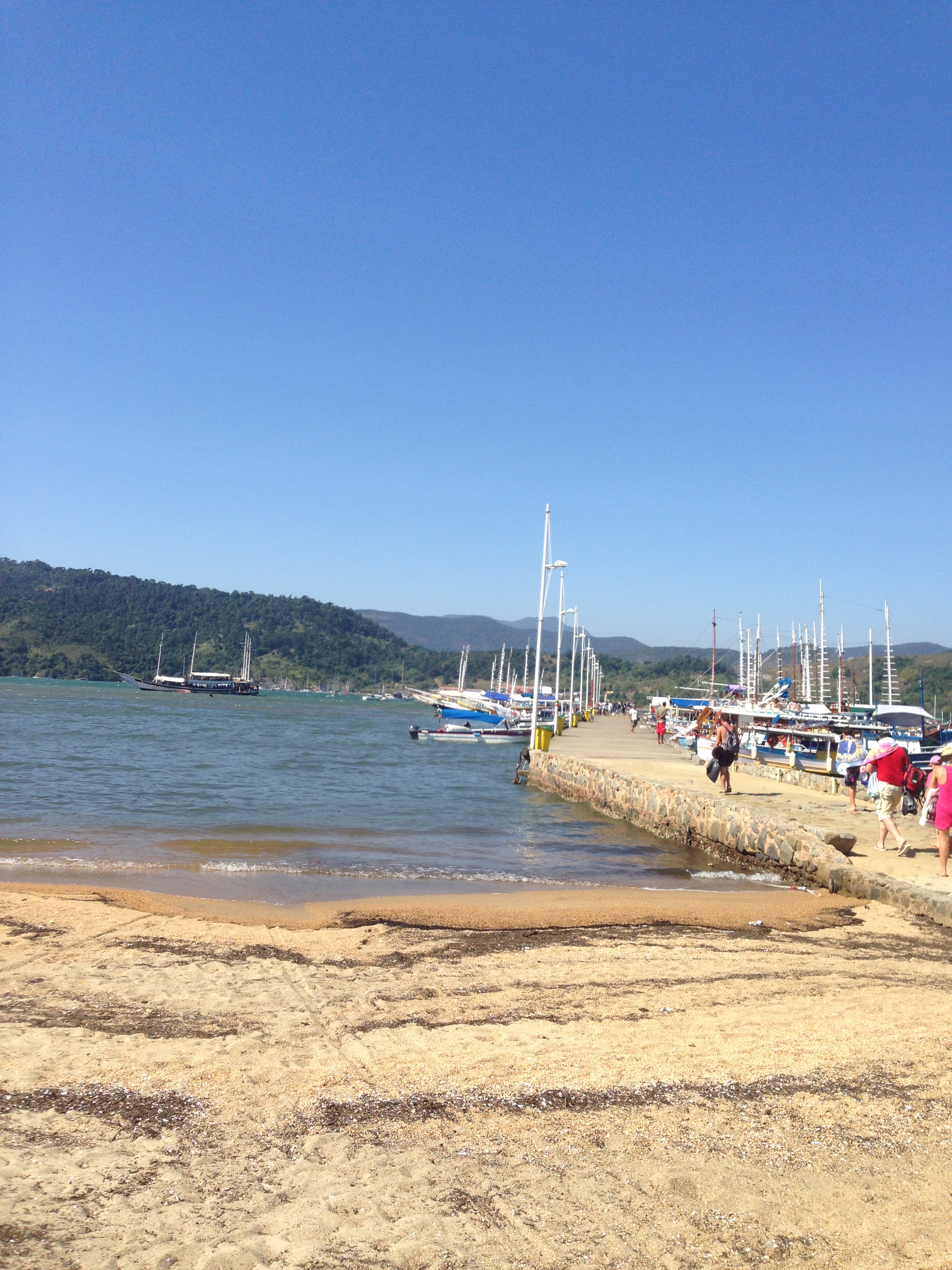 Já cedo o telefone não parou de tocar com a felicitação dos amigos! Combinamos de ir para Paraty. Me arrumei, deixamos tudo em ordem, a Bella ficou no barco e fomos de veleiro e atracamos próximo ao cais central. Nos deslocamos com o bote e Passeamos, compramos umas aguardentes daqui e fomos ao mercado. Tudo super tranquilo, muito quente e agradável. O Renato avisou, acho que vai molhar um pouquinho no percurso do cais para o veleiro e eu disse: sem problemas… Acontece que o tempo virou, mais cedo que o comandante esperava e foi embarcar no bote e os carneirinhos e ondas começaram junto com rajadas de vento de 30 knots… Simplesmente nos ensopamos, a água entrava no bote sem dó… Chegamos molhados e ainda esperamos uma canoa com dois adultos e duas crianças darem lado, pois estavam se segurando no Relax para esvaziar a canoa deles que tinha entrado muito água. Retiramos as compras todas molhadas do bote, que já estava com uns 20 centímetros de água que entrou das ondas… Sinff falei ao Renato, nem tiramos nossa foto de aniversário que estávamos arrumadinhos kkk. O vento diminuiu mas permaneceu o dia todo. A Bella estava com muito medo, ela ficou no veleiro enquanto saímos e teve medo do barulho do vento e das ondas.