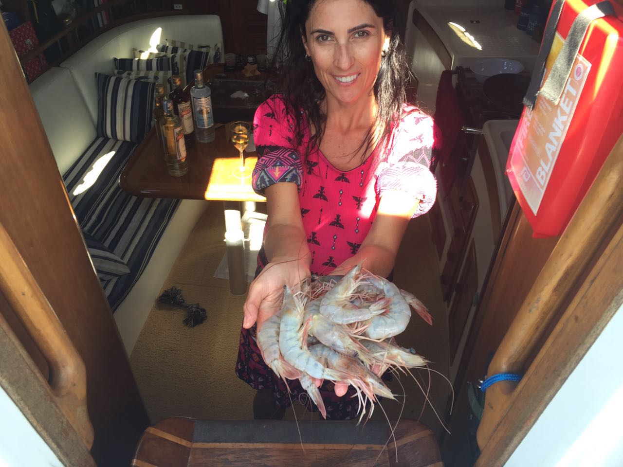 nosso almoço, um belo camarão fresquinho que o Renato trouxe do mercado do peixe e depois nos sentamos no convés e curtimos a tarde, conversando e curtindo o vai e vem constante das escunas, veleiros e barcos de passeio…