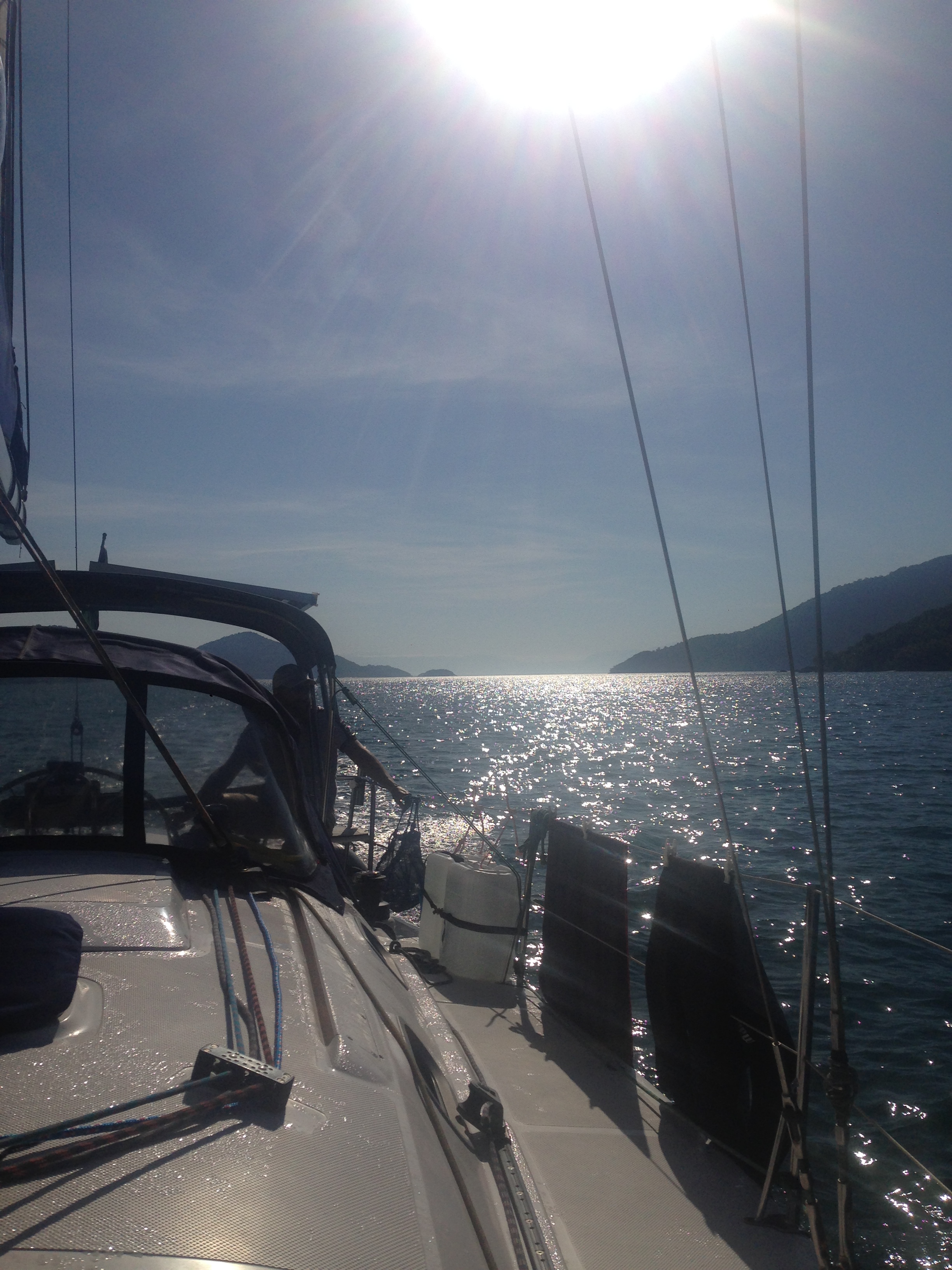 Na quinta (21) saímos rumo á Ilha da Cotia, aproveitamos para adentrar até o fundo, pois faz um “u”, tempo quente, dia ensolarado. Descemos até a prainha para caminhar e curtir a natureza, que parece intocada e plena, ilhas e ilhas cercadas de montanhas, simplesmente lindo. A tardinha retornamos para o ponto de ancorarem da Ilha da Cotia, pernoitamos e esperamos o Flávio Studart, veleiro Pigro, que nos encontraria lá no dia seguinte.