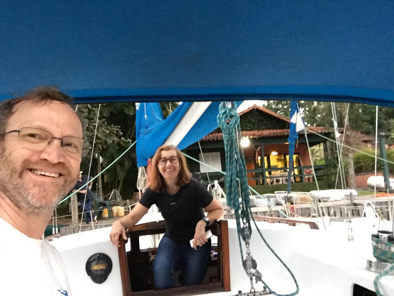 Dia 02/08 (terça) amanheceu com vento forte de sudoeste, tínhamos planos de ir passar o dia no Saco da Velha, mas com o vento forte ficamos por aqui na Cotia. O Ariel, do Veleiro Sian ben se despediu, rumou para Paraty deixar o barco e retornar para Punta de Leste. Mais tarde chegou o veleiro Tauá, com o casal Claudio e Themis e os filhos Gabriel e Patrick. São brasileiros, de Porto Alegre, que saíram do Brasil há vinte anos para morar em Paris, onde nasceram seus dois filhos, e hoje moram na Holanda, em função da atividade profissional do Claudio. Nos contaram que tiveram veleiro quando moravam no Brasil e que agora trazem os filhos para velejar com eles. Todos super queridos. A noite nos convidaram para conhecer o barco e bater papo. Jogamos rommi cube que foi criado por um israelense. O jogo é super divertido, vamos ter a bordo, não como o deles com as peças em plástico, mas usando um baralho comum. Retornamos ao barco e tivemos uma boa noite de sono. Namastê 🙏