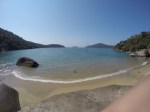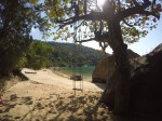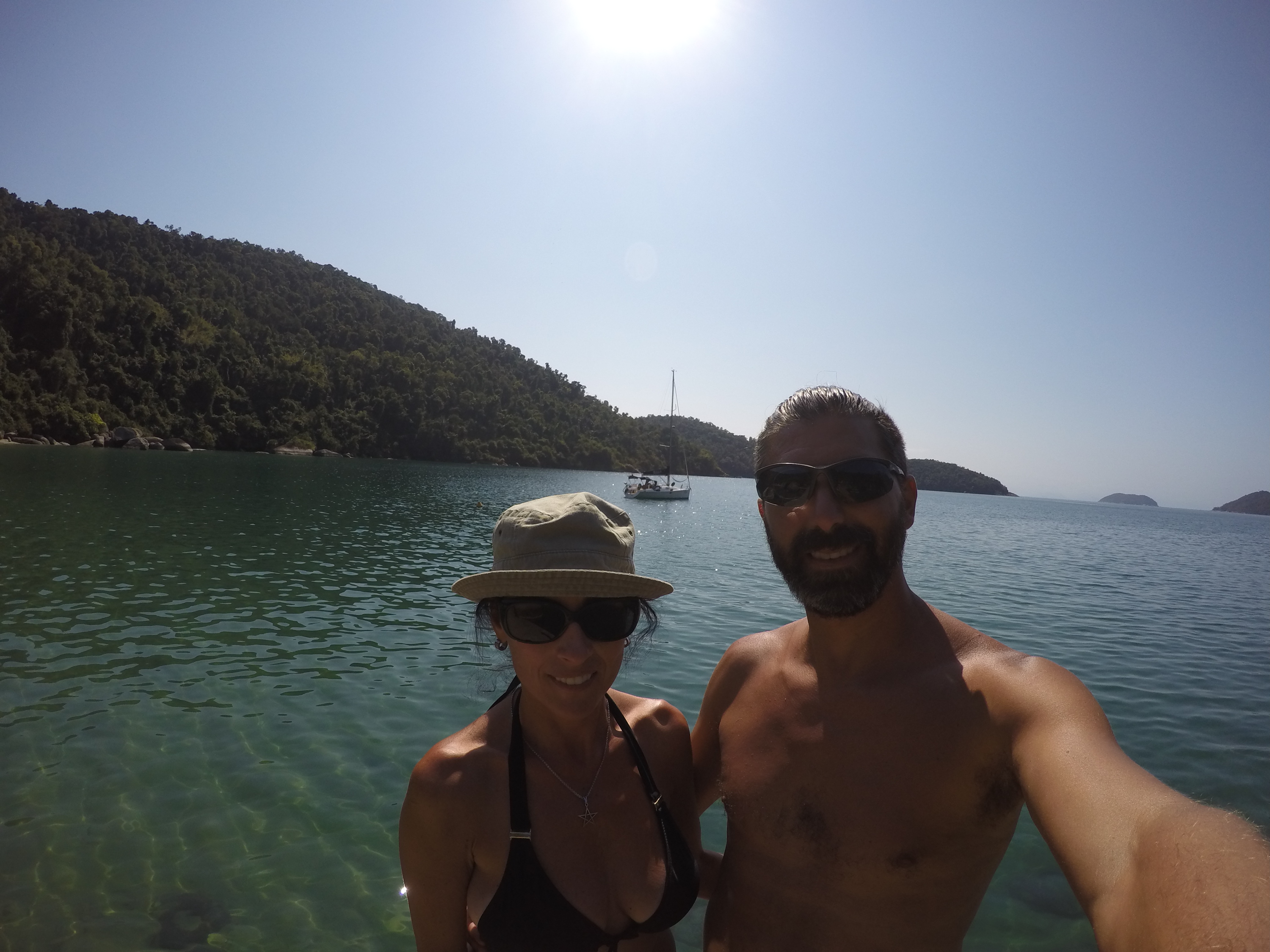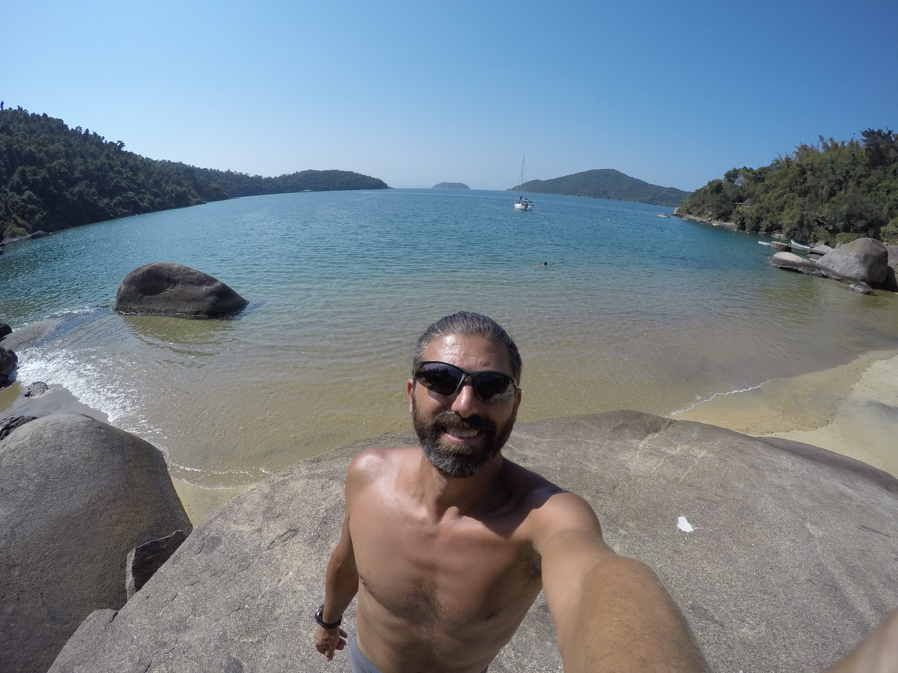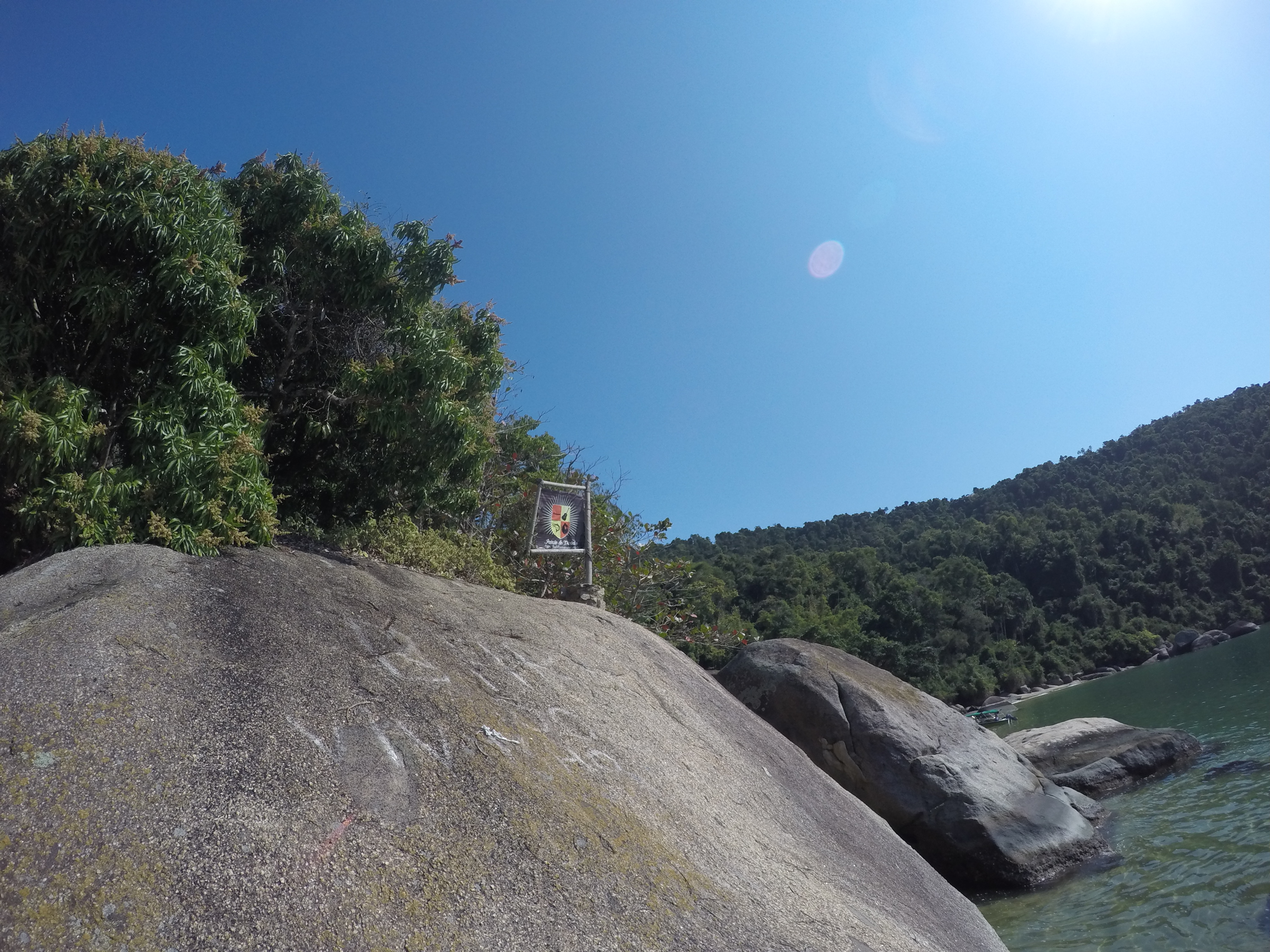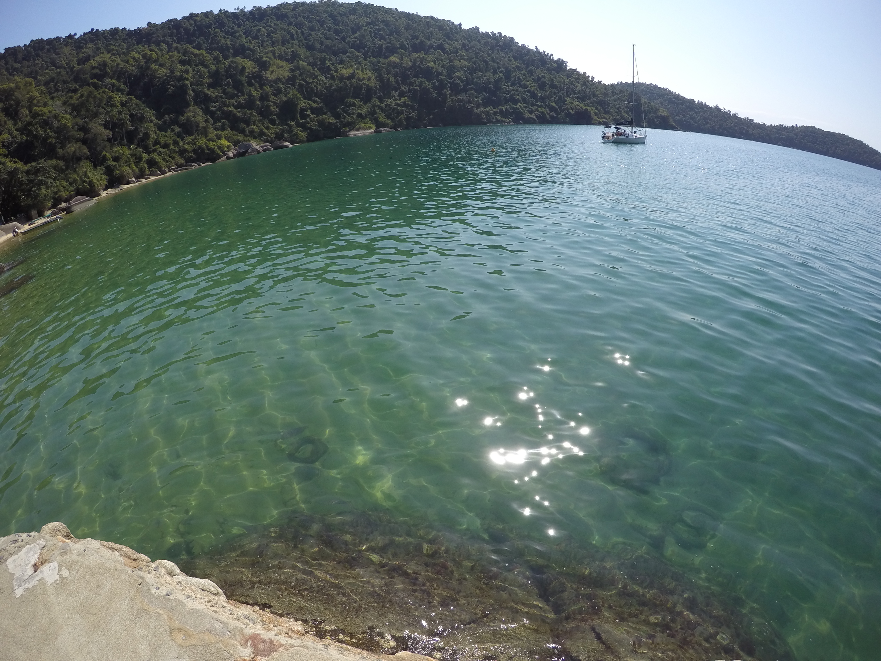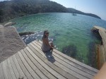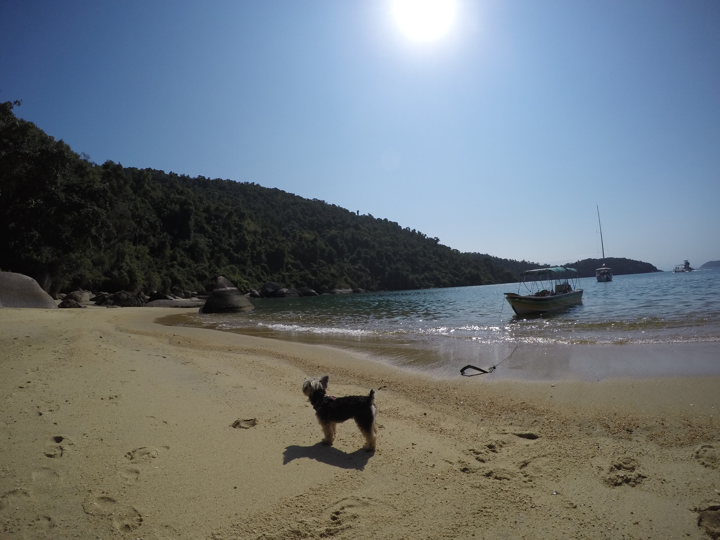 Seguimos em direção ao Saco da Velha, lugar fantástico, com rochas enormes fincadas na areia, água clarinha e visual de cinema. Lá conhecemos o Restaurante do Vivinho, comemos a famosa casquinha de Siri, caipira de maracujá (relembrando os tempos de Antonina) e almoçamos. Brincamos muito na água e a Bella também teve a companhia de dois cachorros de lá, que andavam atrás dela o tempo todo. Para pernoite retornamos a Ilha da Cotia, como sempre bem abrigada.