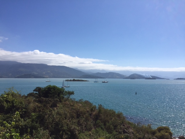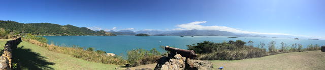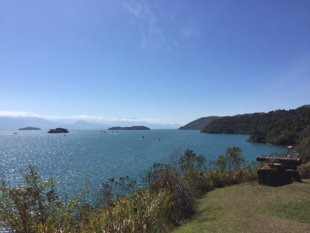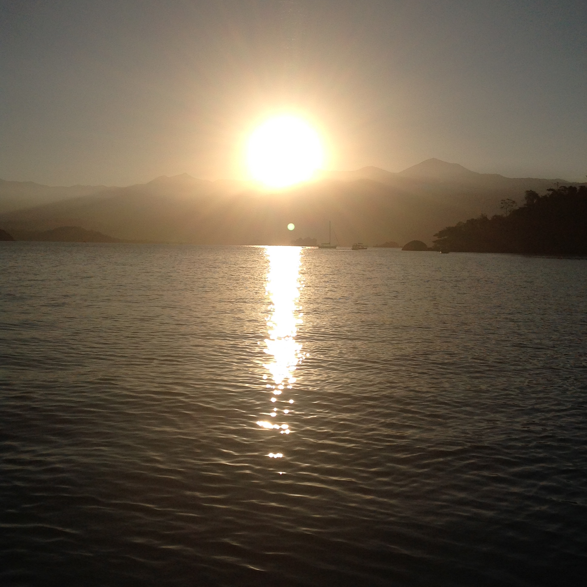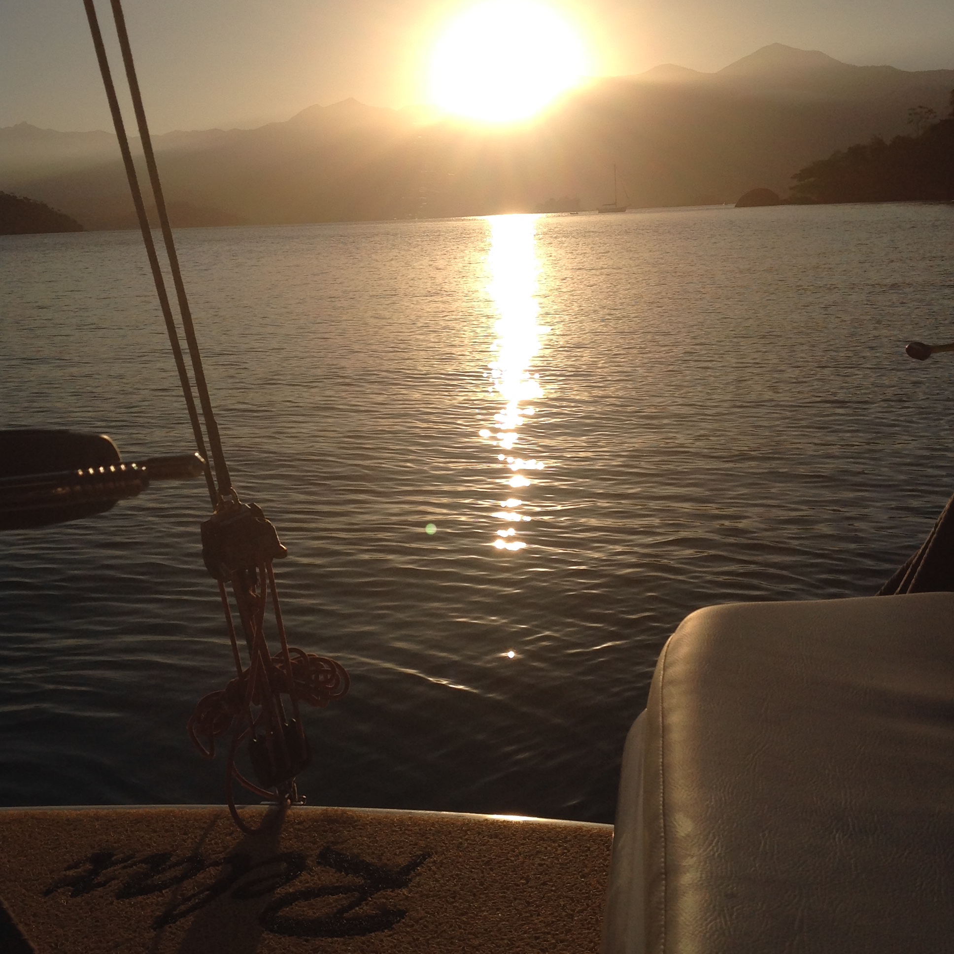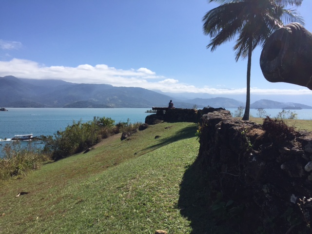 Próximo de onde ancoramos tem uma trilha que leva ás ruínas de um antigo forte, em que é possível encontrar canhões do século XVIII, que garantiam a segurança de Paraty e de seu Porto, que situava-se na “rota do ouro”, sendo a cidade um importante entreposto comercial daquela época. Subimos a trilha e ganhamos uma vista maravilhosa e é emocionante ver a vida náutica tão forte, com tantos barcos na água num vai e vem infinito. No retorno almoçamos a bordo, descansamos e o Renato entrou na água para nadar um pouco. Fim de tarde, paramos, como sempre, para ver o sol se por.  image image image