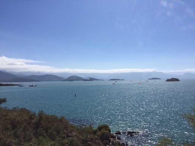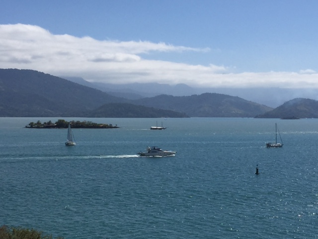 imageSábado (13/08/16) dia ensolarado, café da manhã no cokpit assistindo o vai e vem incansável das escunas, barcos de passeio, veleiros e lanchas. Estamos a margem do canal por onde todos saem para ir às tantas prainhas e lugarzinhos que tem aqui. O Renato nos levou de bote, Bella e eu, para uma grande volta contornando toda a costa daqui até a Ponta do Cantagalo. Um passeio bem bacana, ao longo da costa tem pousadas e umas casas com placa de “propriedade privada”, o que é bastante discutível, pois isso é se apoderar da faixa litorânea, mas enfim….