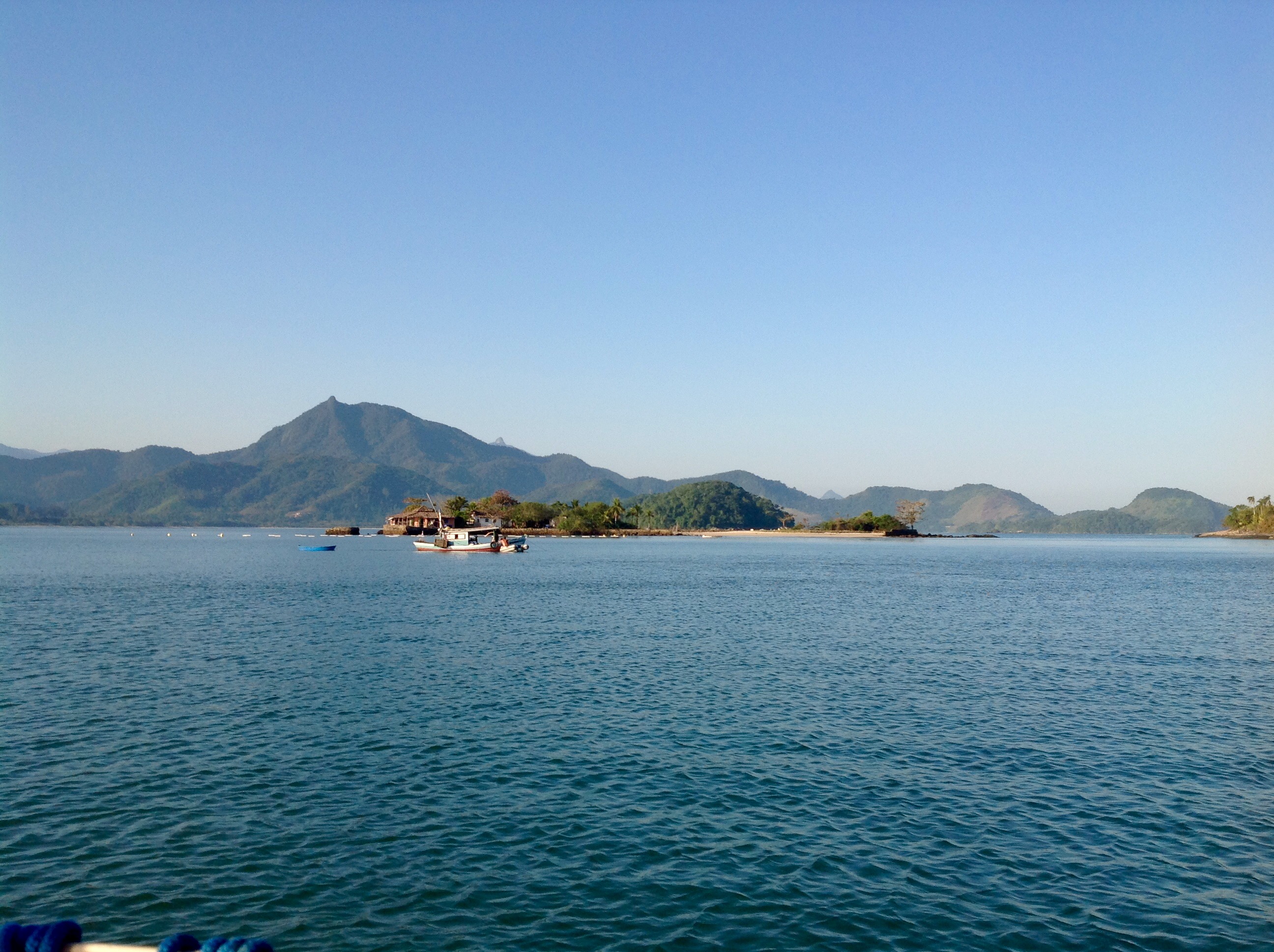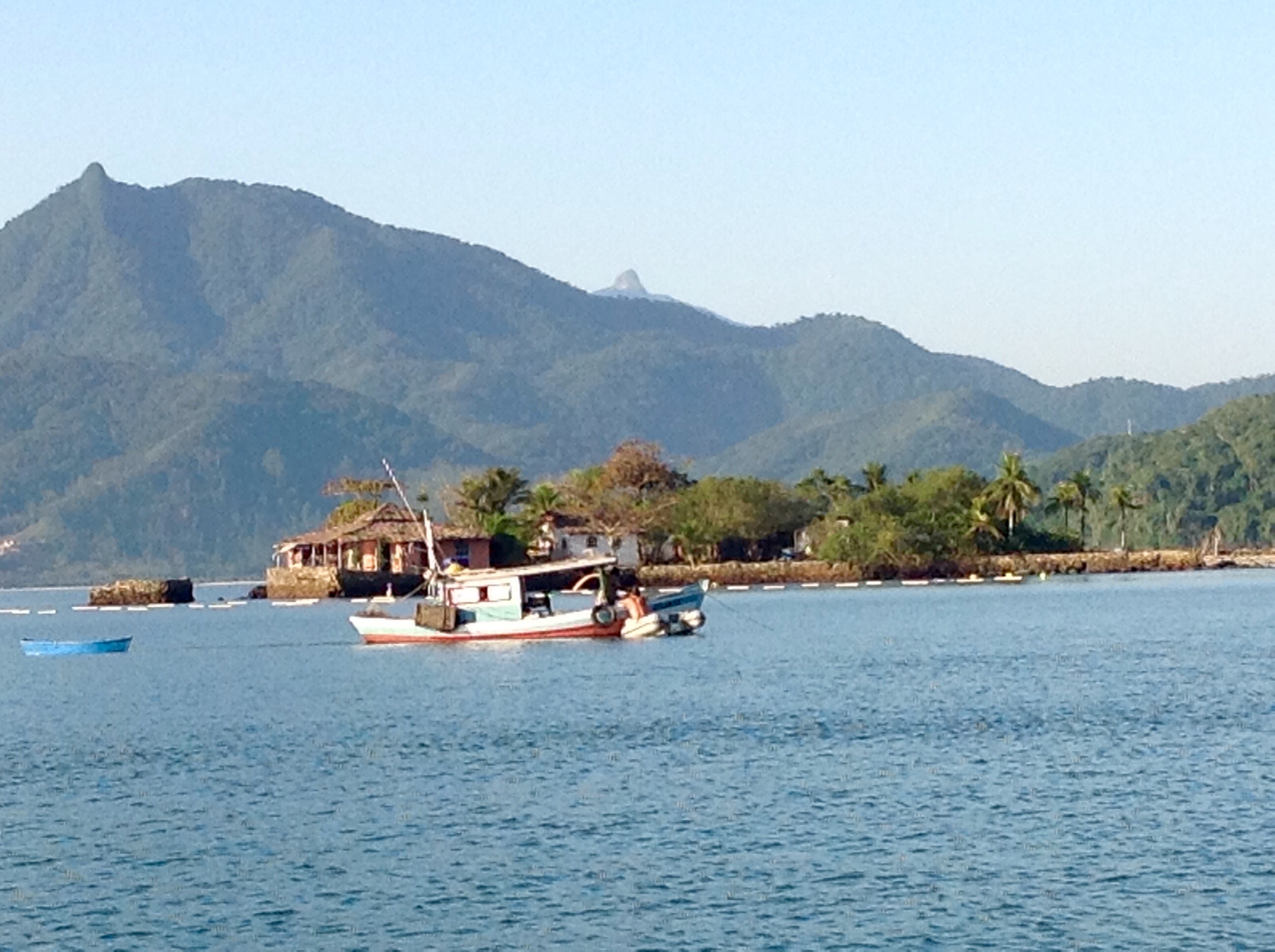 Rumamos para conhecer a Ilha do Araújo, distante aproximadamente cinco milhas e ao chegarmos, percebemos que, apesar do mar estar calmo não seria uma boa ancoragem e tem também baixo calado. Como estávamos sem pressa, resolvemos ir para a Ilha do Cedro (ótima pedida) e mais cinco milhas. Ancoramos em frente ao Restaurante do Nelson (vejam vídeo no #sal) onde almoçamos e encontramos a caipira de maracujá servida como na Ilha das Peças, em vidro de conserva. Eles possuem um pequena biblioteca, onde pôde-se levar o livro para ler e devolver na próxima ocasião que retornar. Escolhi para ler ” Meu velho e o mar” , que conta a história de pai e filho saindo dos EUA para o temido Cabo Horn.