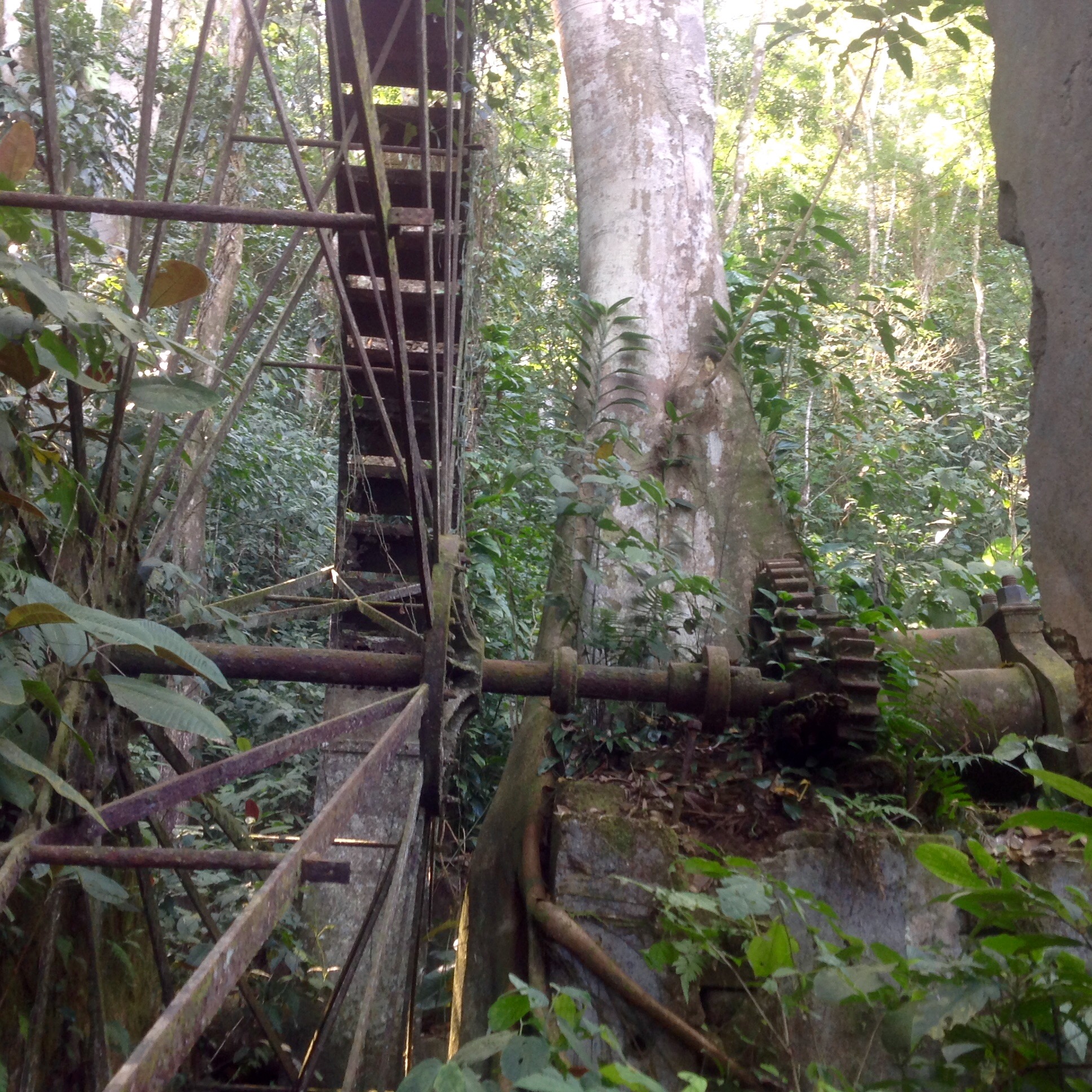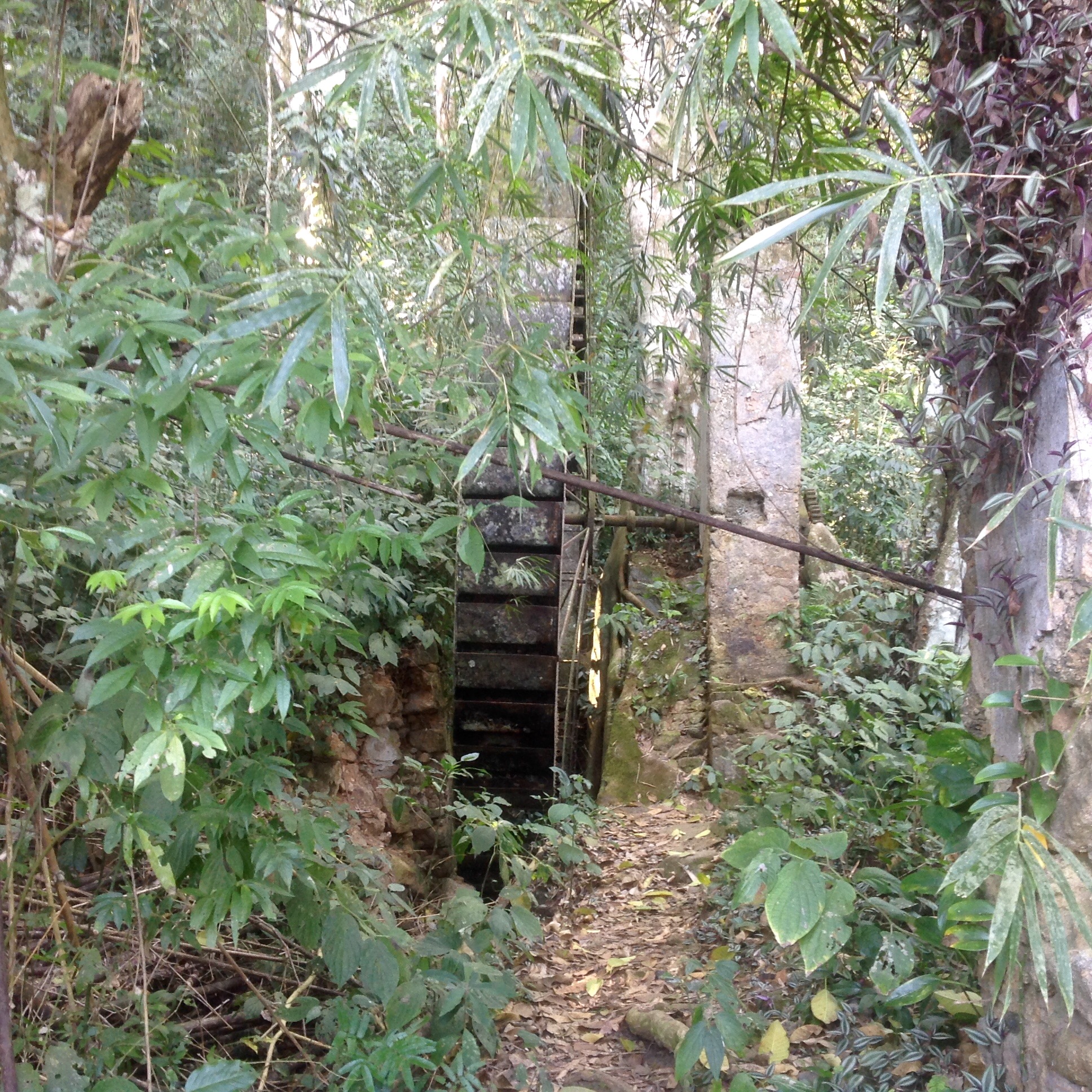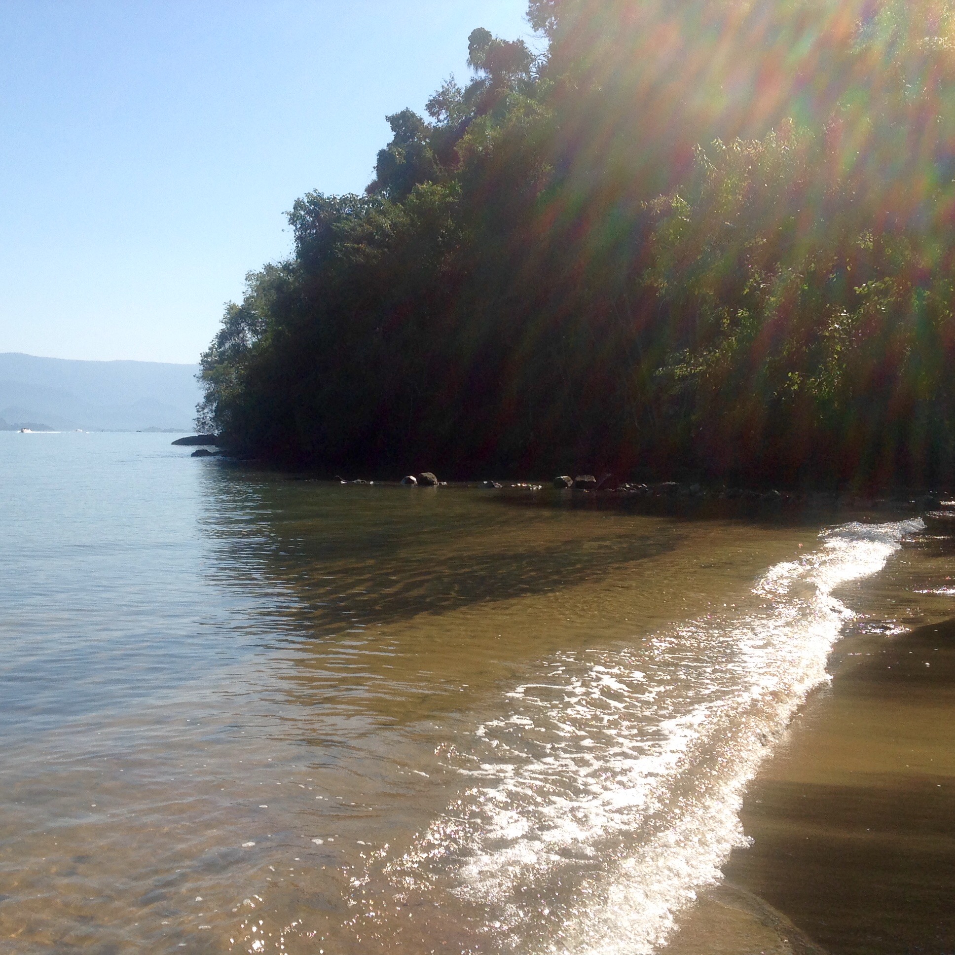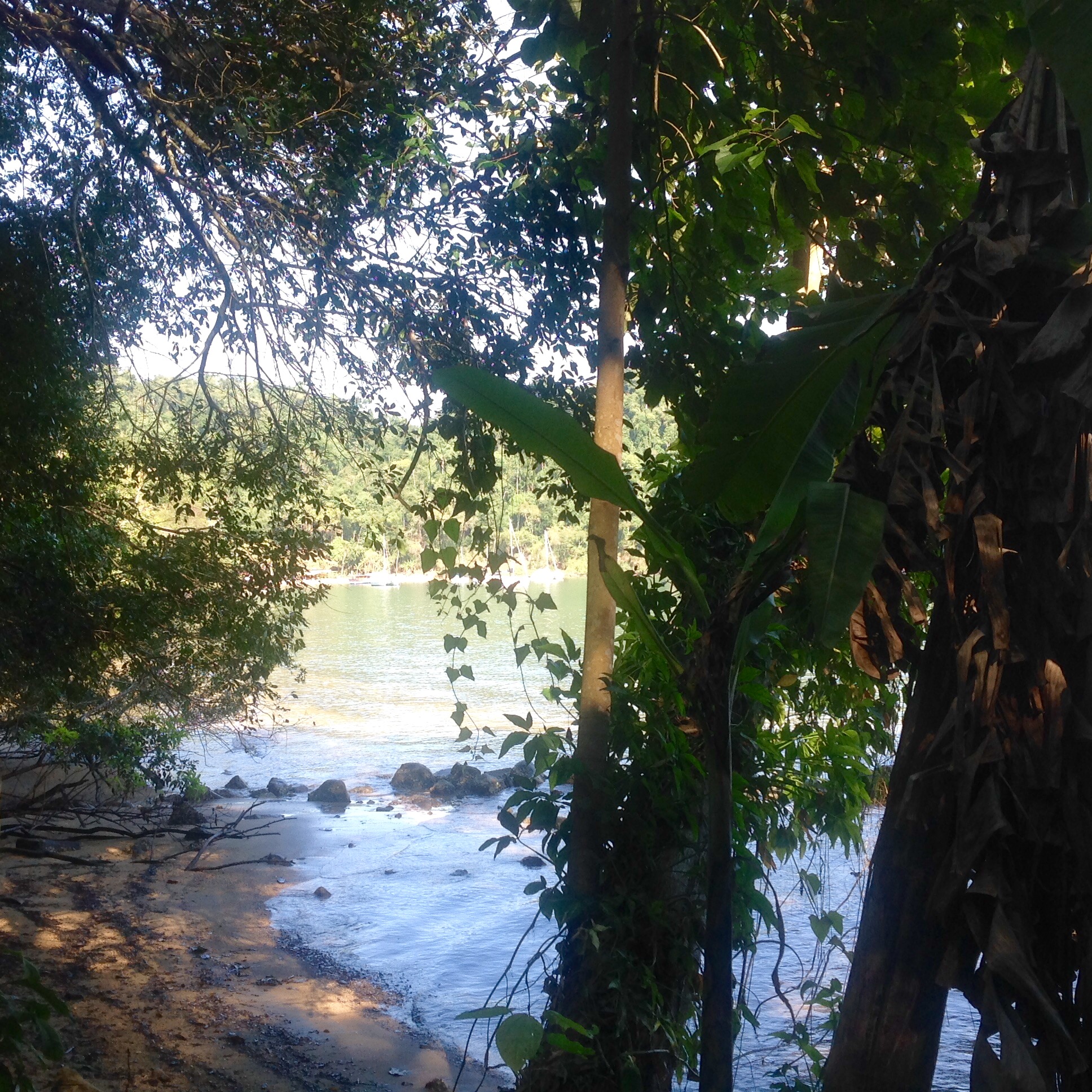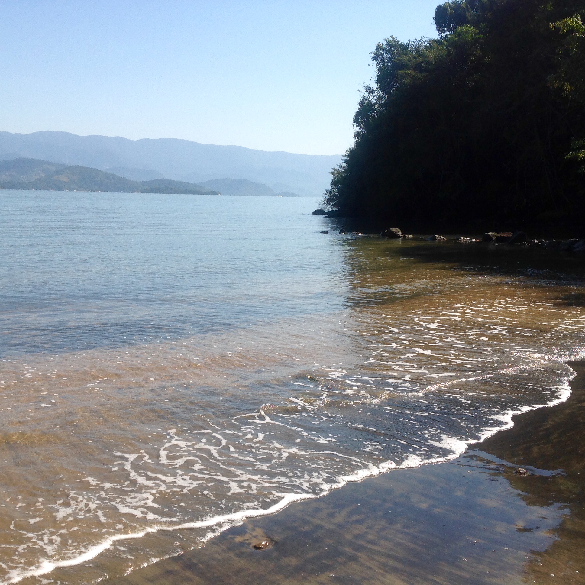 Dia 54 (14/08/16) domingo 🌞 dia dos pais – Renato ligou cedo para felicitar o Teixeira pelo seu dia. Hoje olhamos no guia do Helio Magalhães: Santos-Rio (imperdível para quem quer ficar navegando por aqui) e decidimos seguir para a Praia Grande e Praia do Engenho. As duas são vizinhas, bem próximas. Ao chegar descemos de bote (sem motor, pois o Renato está curtindo remar quando o percurso é pequeno ou então quando vamos passear bem na beirinha do mar, para ver os peixinhos) na Praia do Engenho e caminhamos um pouco e já encontramos uma grande roda d’Água, que já se mistura com a vegetação, mas que produziu aguardente até o final da segunda guerra mundial.
