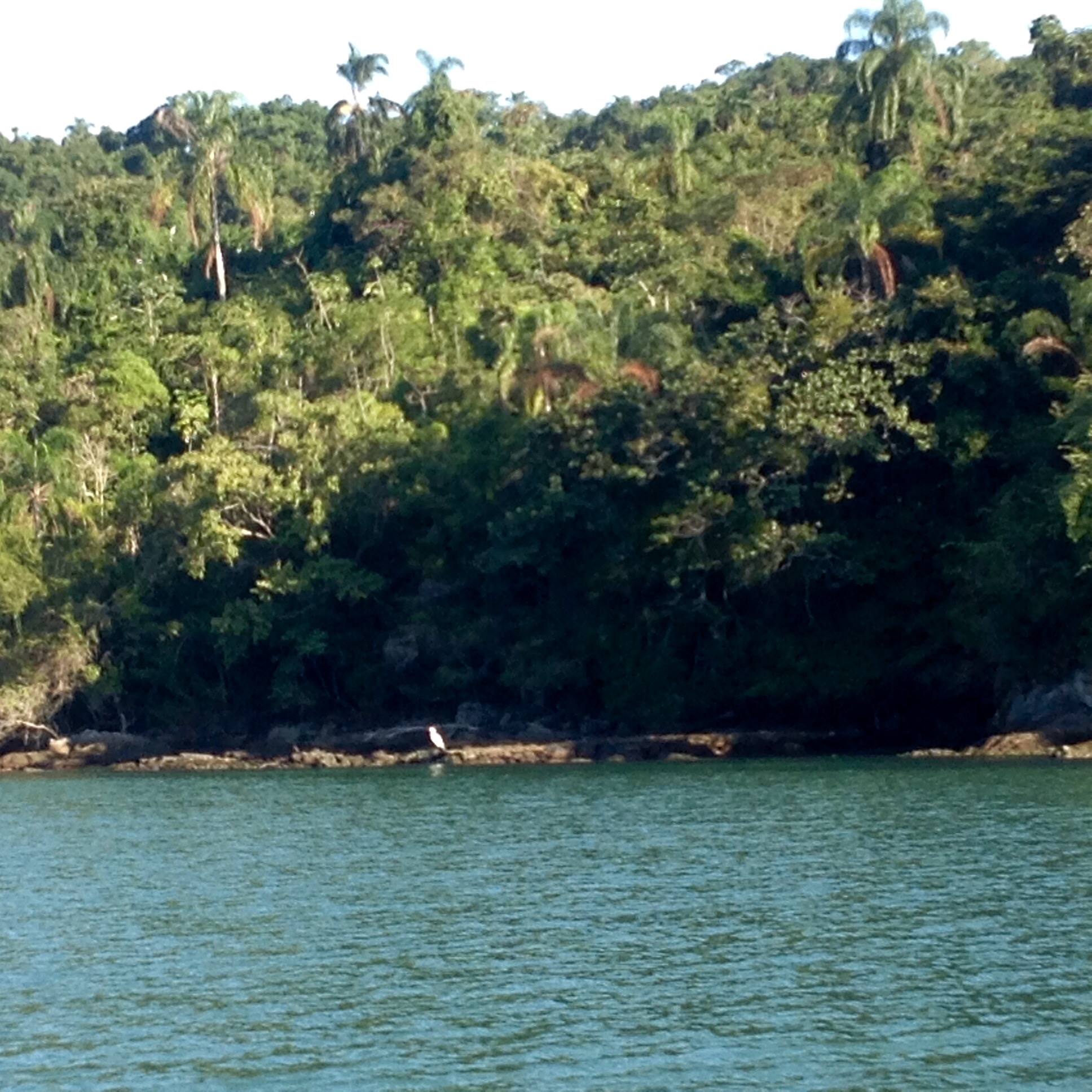 Havia um barco de pesca e o Renato foi até ele de bote para comprar camarão, logo voltou e disse que só tinha “sete barbas” e eu falei ok! Ele ficou conversando com o pescador que acabou por quase encher nossa caixa térmica pequena de camarão e ainda três postas de tainha que estava limpando. Quando o Renato foi pagar ele não aceitou e disse que deu de bom grado… Assim só restou aceitar, agradecer e voltar lá para levar umas cervejinhas geladas para ele. Como já era final de tarde, deixamos para limpar os camarões no dia seguinte. A Ilha do Cedro tem um belo visual e por do sol encantador, a tarde as garças vem pousar nas árvores e pela manhã acorda-se com o canto dos pássaros. Namastê 🙏🏼