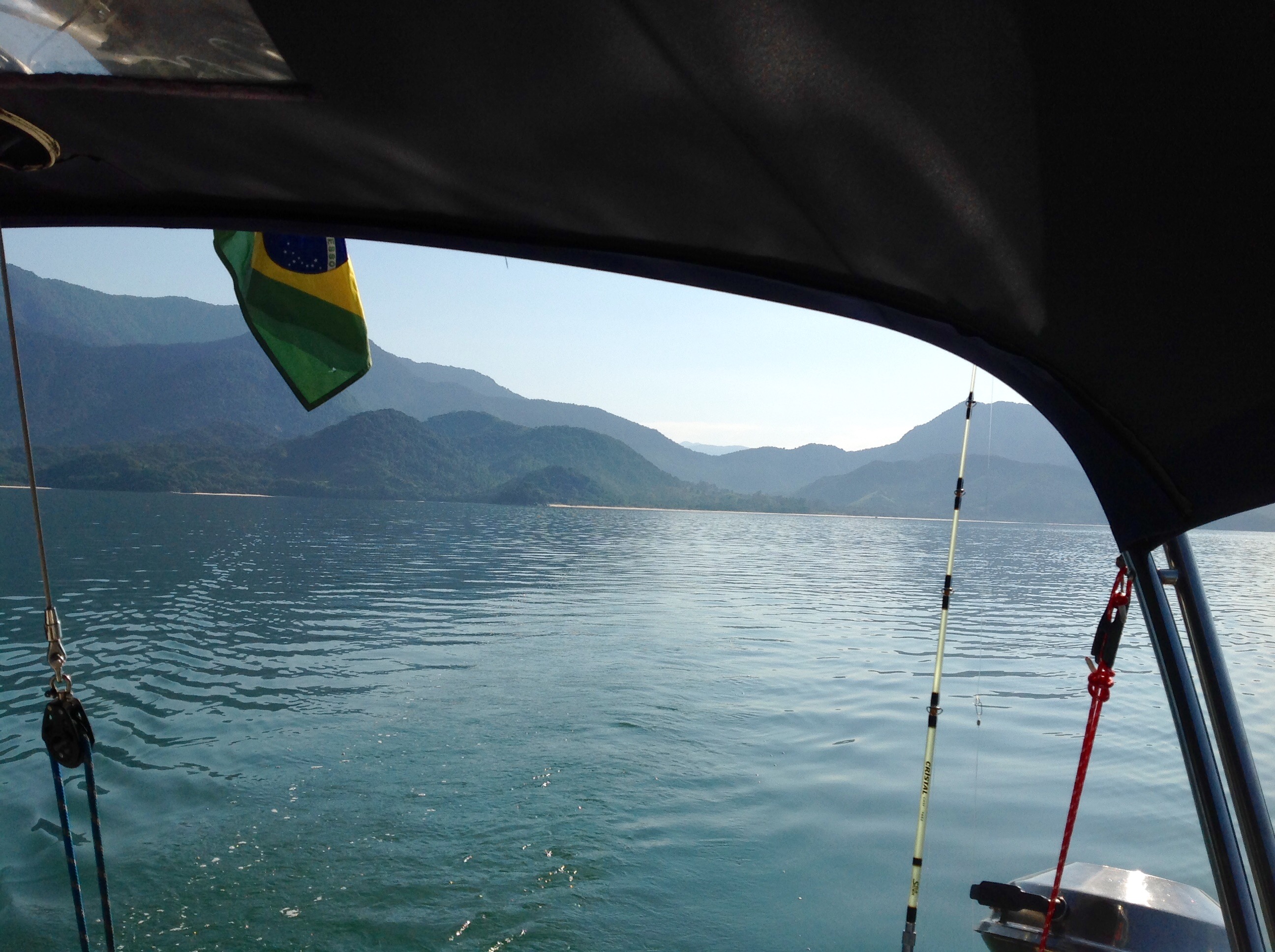 e descemos de bote até a prainha, corremos e brincamos com a Bella. Tínhamos a tarefa de limpar os camarões e ao abrir a caixa térmica, vimos que eram muuuuitos e ficamos uma hora e meia limpando e depois rendeu um ótimo empadão. Lá pelas tantas, o Renato disse: não sei se amo ou se odeio o seu Dadaco – pescador que nos deu os camarões, pois já estávamos cansados de limpá-los kkk.