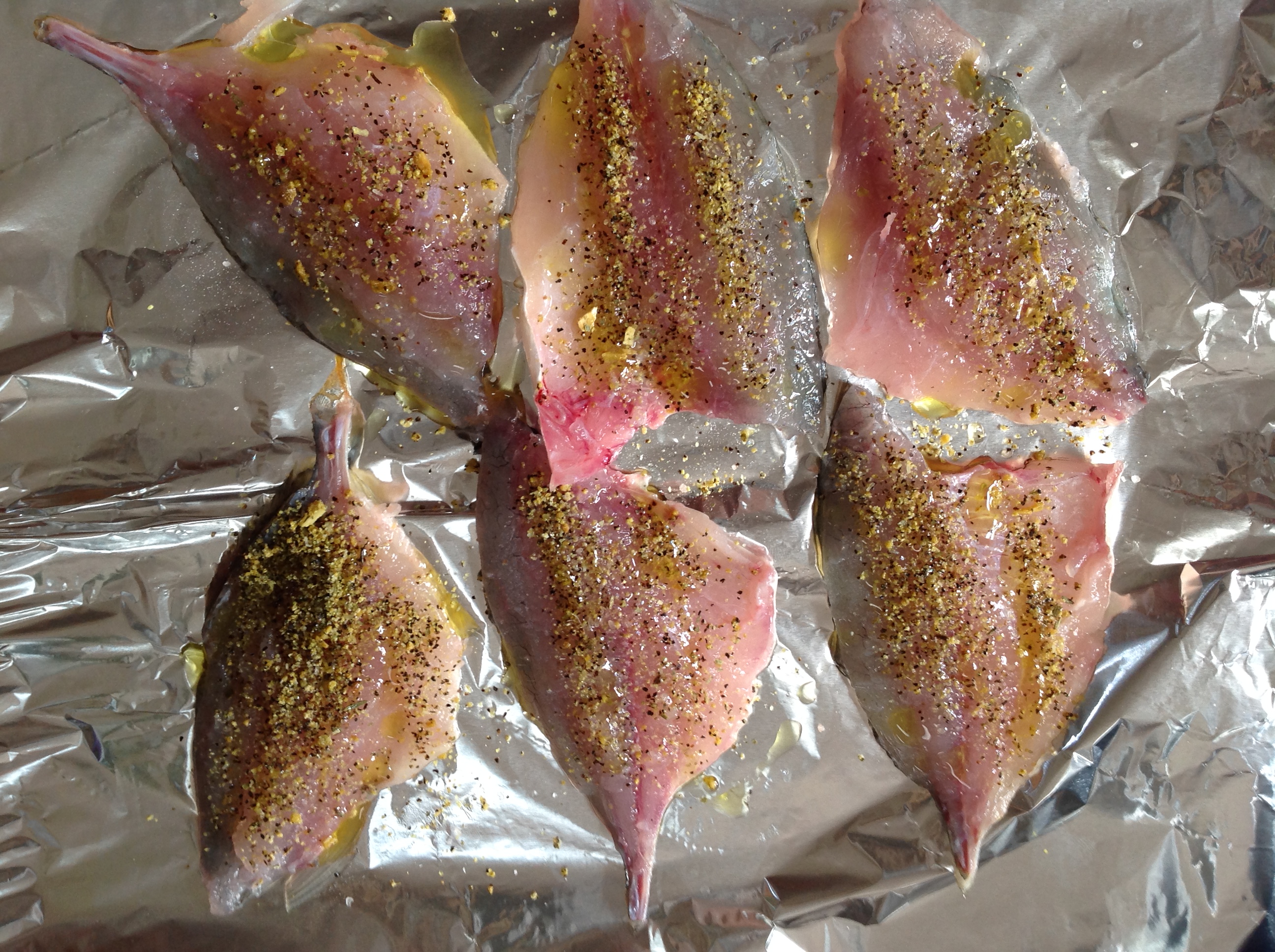 Preparamos as postas de tainha na churrasqueira, e o Renato colocou o molinete na água e de três peixes de uma vez só, com uma isca que possui vários anzóis… Não preciso dizer que eles foram pra grelha também!