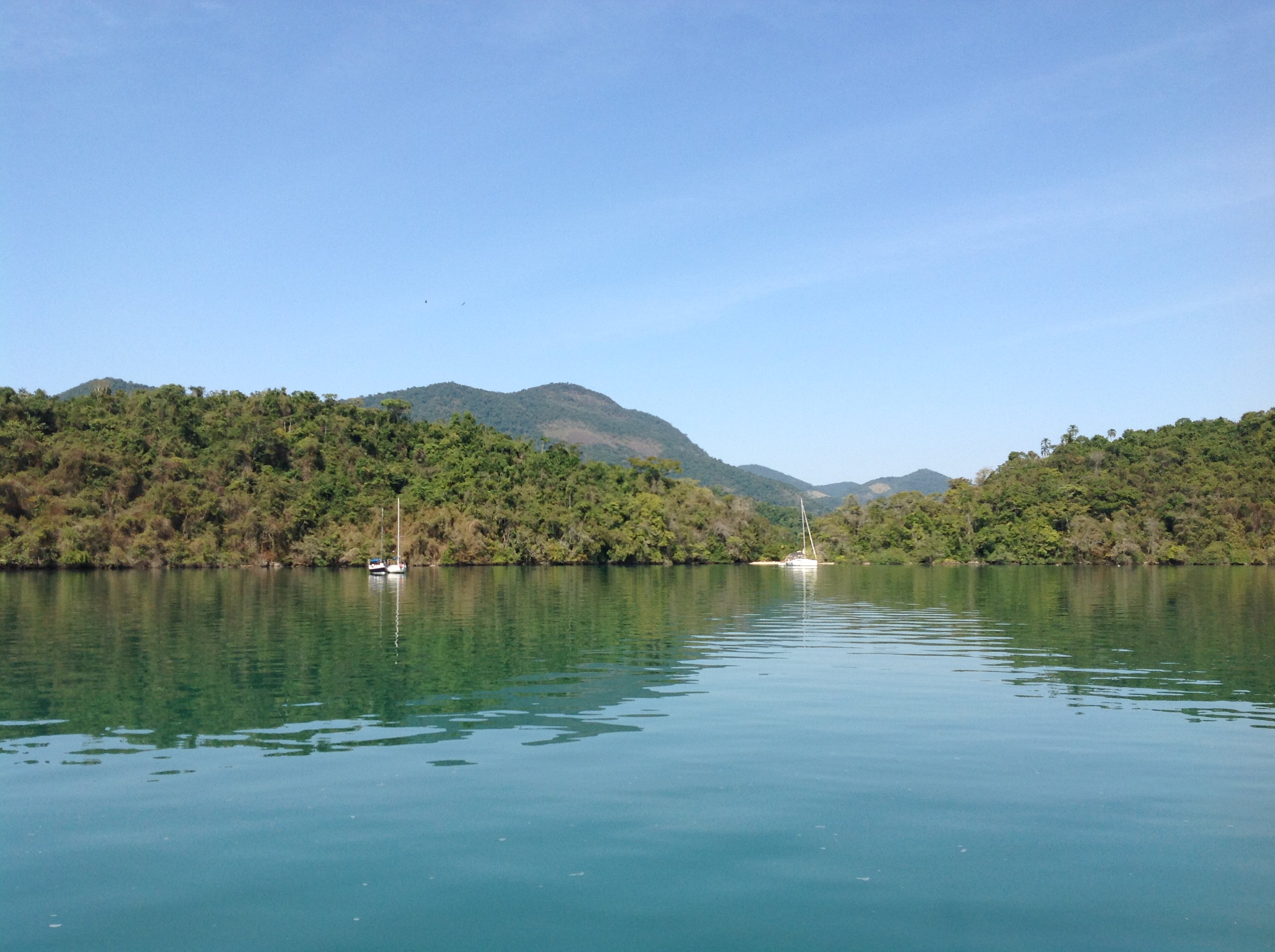 Dia 55 (15/06/16) segunda 🌞, o Renato acessou a previsão do tempo e viu aviso da Marinha de vento forte. Assim, preferimos sair da Ilha do Cedro após o café, para a Ilha da Cotia, onde como já dissemos, é bem abrigado.