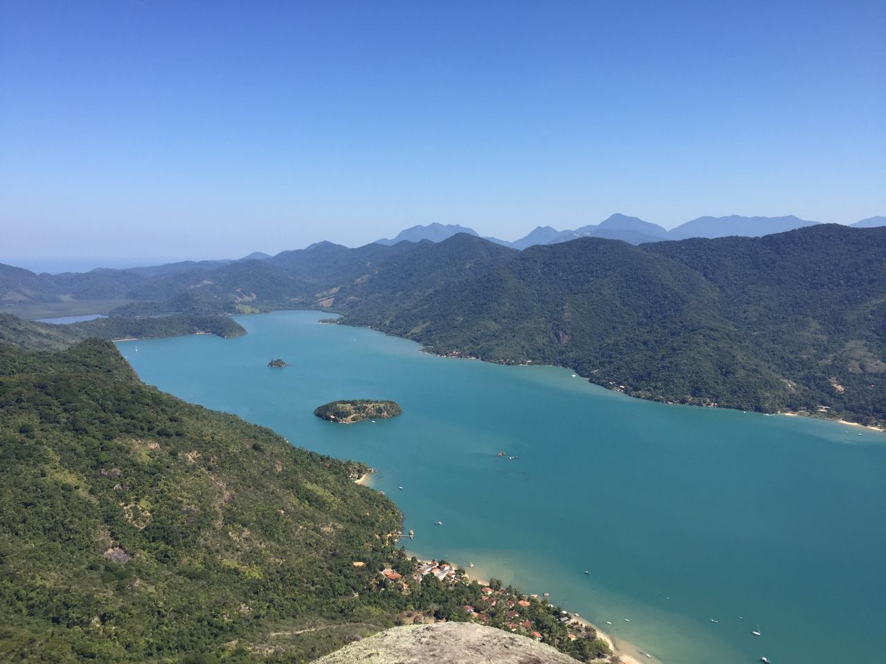 Dia 57 (17/06/16) quarta 🌞 o dia estava novamente lindo e quente, geralmente acordamos com o sol no rosto, que entra pela gaiúta. Nossos planos: fazer a trilha do Pão de Açúcar. Após o café rumamos para a Vila do Cruzeiro, no Mamanguá.
