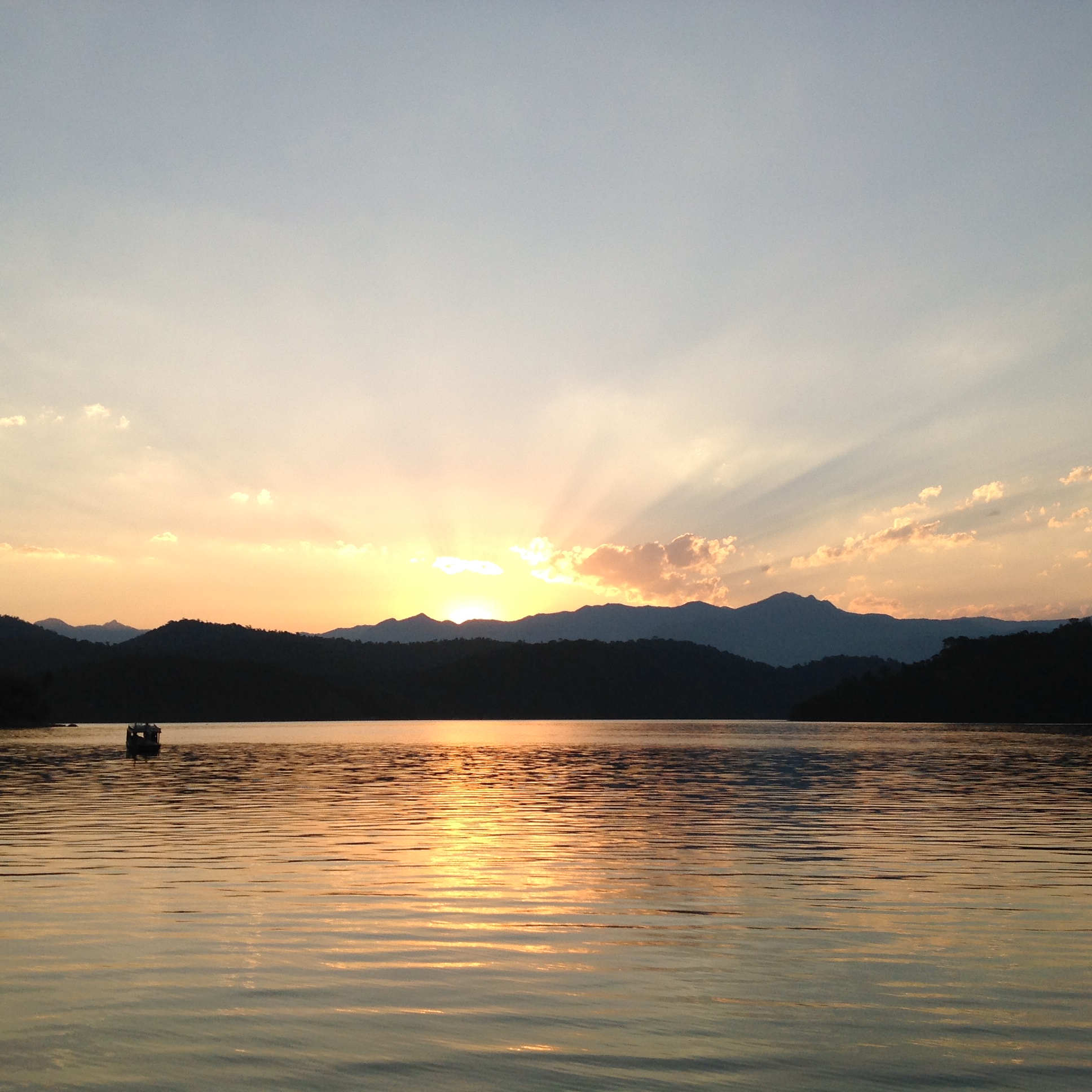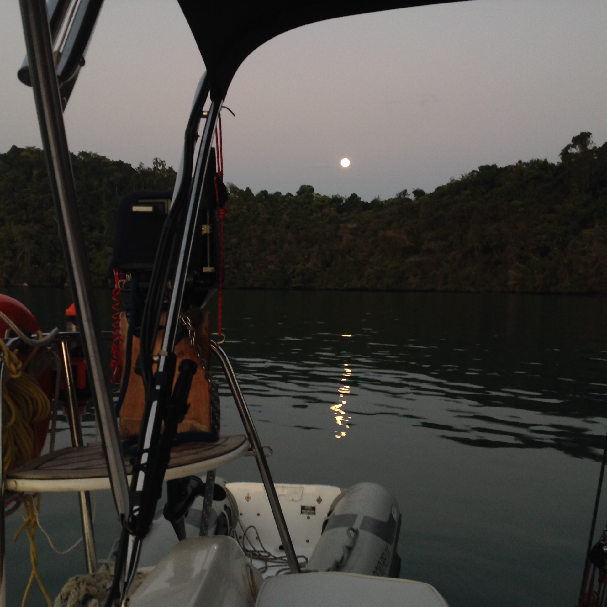 A Bella nos acompanhava aos saltinhos e quando eu ficava para trás do Renato, ela corria me buscar, uma graça! Cansamos bastante e paramos algumas vezes para recuperar o fôlego. Quando chegamos: Uau valeu o cansaço! A vista é maravilhosa, como um desenho feito pelo artista. Sentamos, descansamos, o Renato fotografou a vista é após nos recupe-rarmos, iniciamos a descida, que foi bem mais tranquila. Na chegada, almoço no Restaurante do seu Orlando, prato: dourado, muito gostoso. No meio da tarde retornamos para a Ilha da Cotia para pernoite e fomos brindados com um maravilhoso por do sol é um lindo nascer da lua. Não tem como não ser muuuito feliz deste jeito. Lembrei do teste físico que fiz com nosso querido amigo cardiologista Flavio Studart, com pouco fôlego na esteira, pois a subida é muito puxada e creio que não irei lá novamente, guardo a imagem belíssima da vista em minha mente.