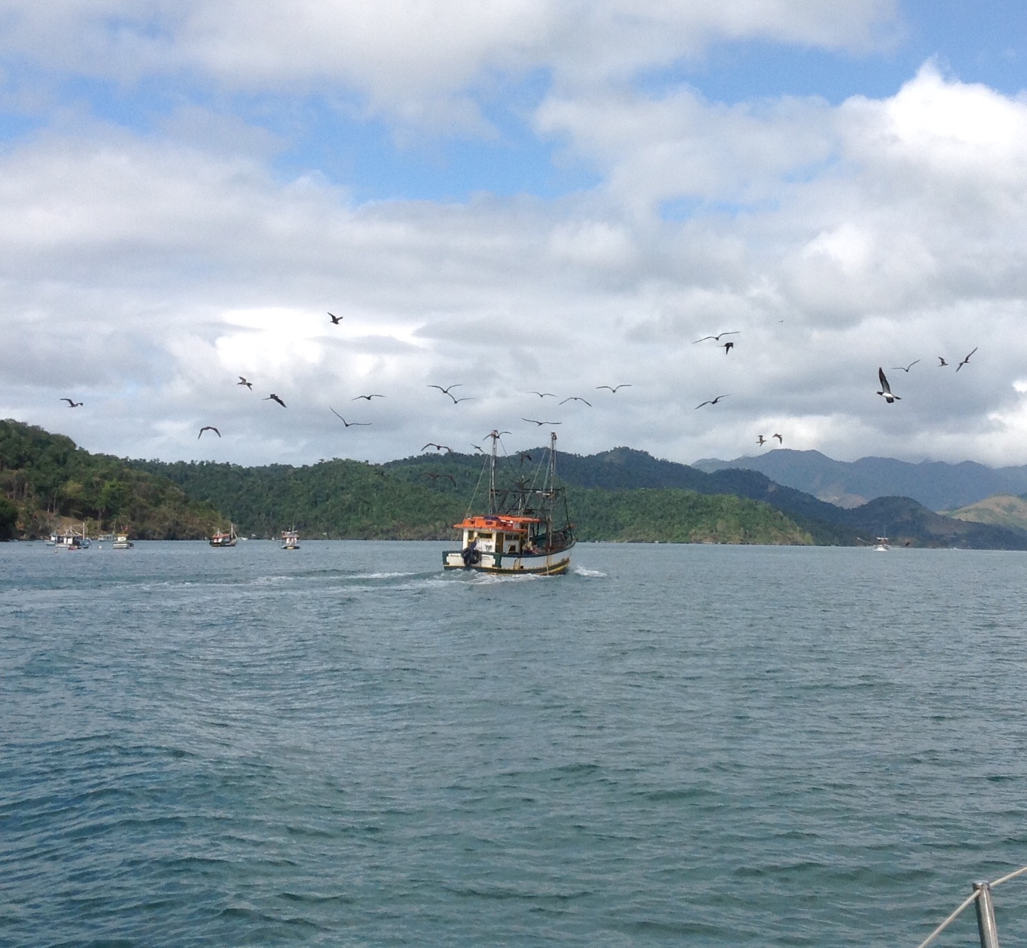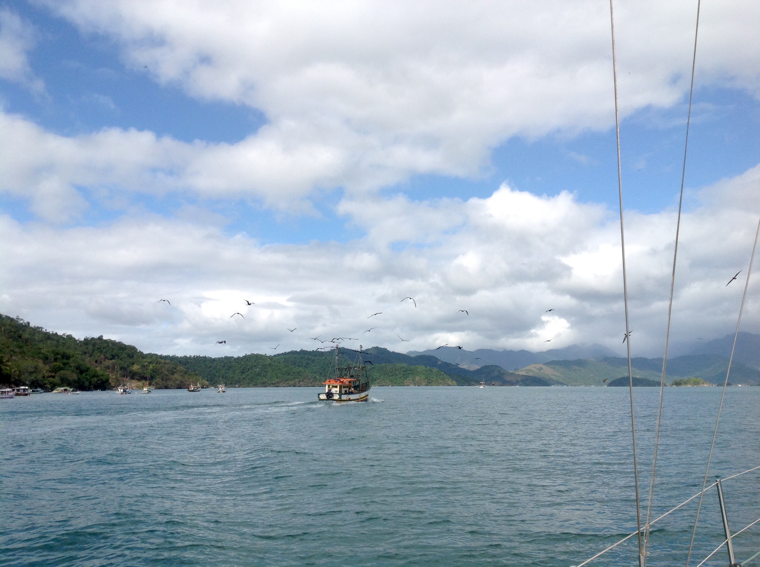 Viemos bem pelas dez milhas, pouco movimento de escunas ainda, alguns barcos de passeio e alguns pesqueiros, que pelo caminho vão limpando os peixes e jogando os restos na água, ou ainda vão descartando os peixes indesejáveis que vieram no arrastão, fazendo a festa das gaivotas, que vão acompanhando o barco milhas e milhas.