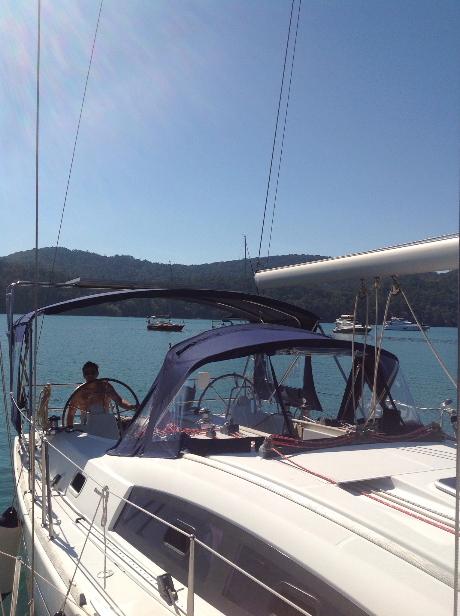 imageO fim de semana foi com muitos barcos ancorados na Cotia e no final da tarde foram saindo um a um, permanecemos em dois veleiros e no cair da tarde chegaram mais dois para pernoitar. Namastê 🙏🏼