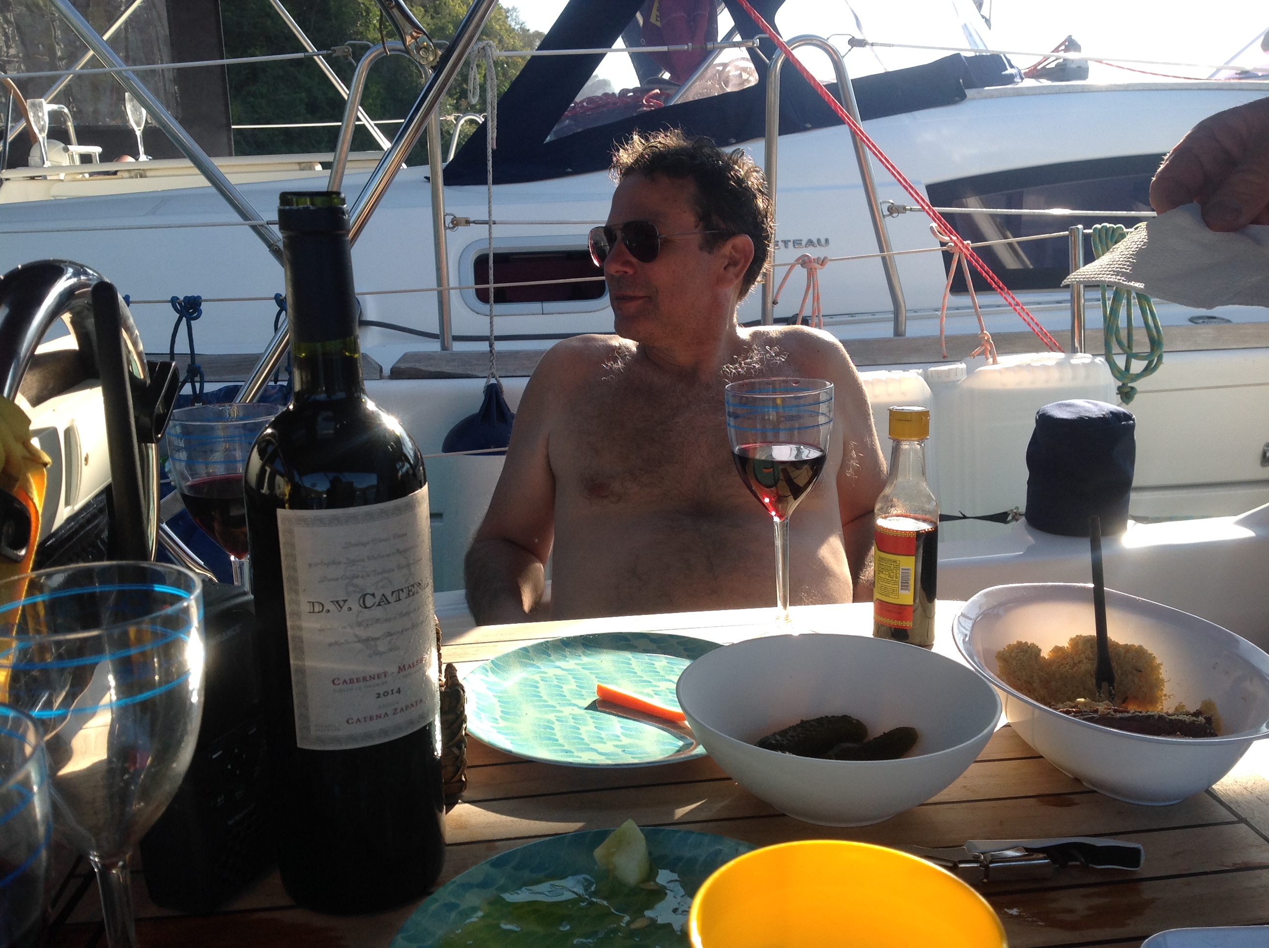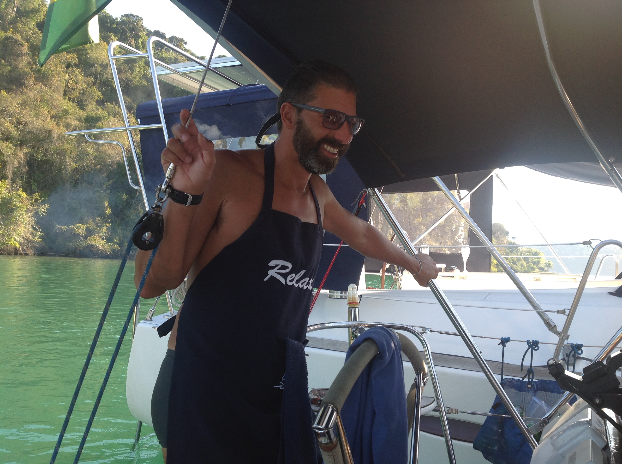Quando retornaram da velejada fizemos um brinde à esta vida que escolhemos e aos amigos preciosos, que enriquecem a nossa existência. Hora de o Renato começar os preparativos do churrasco que se estendeu tarde adentro.