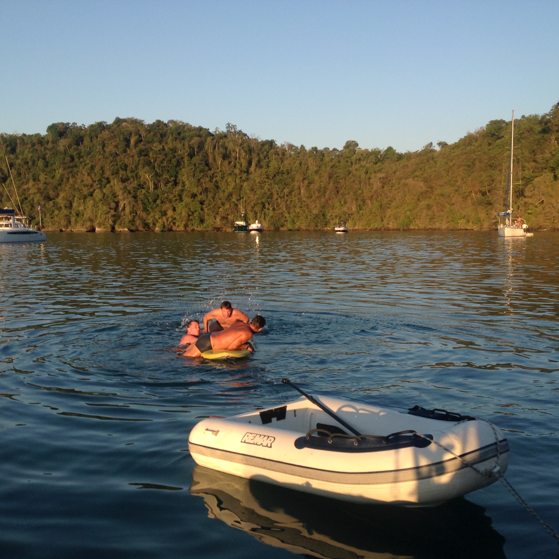 Estava muito divertido, todos brincando, rindo e relaxando! Após o banho ficamos reunidos no cockpit, conversando tomando 🍷🍷🍷 e curtindo a boa companhia.