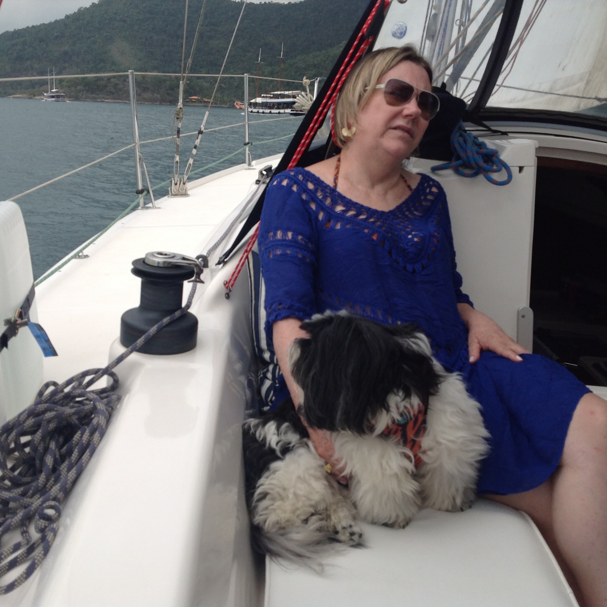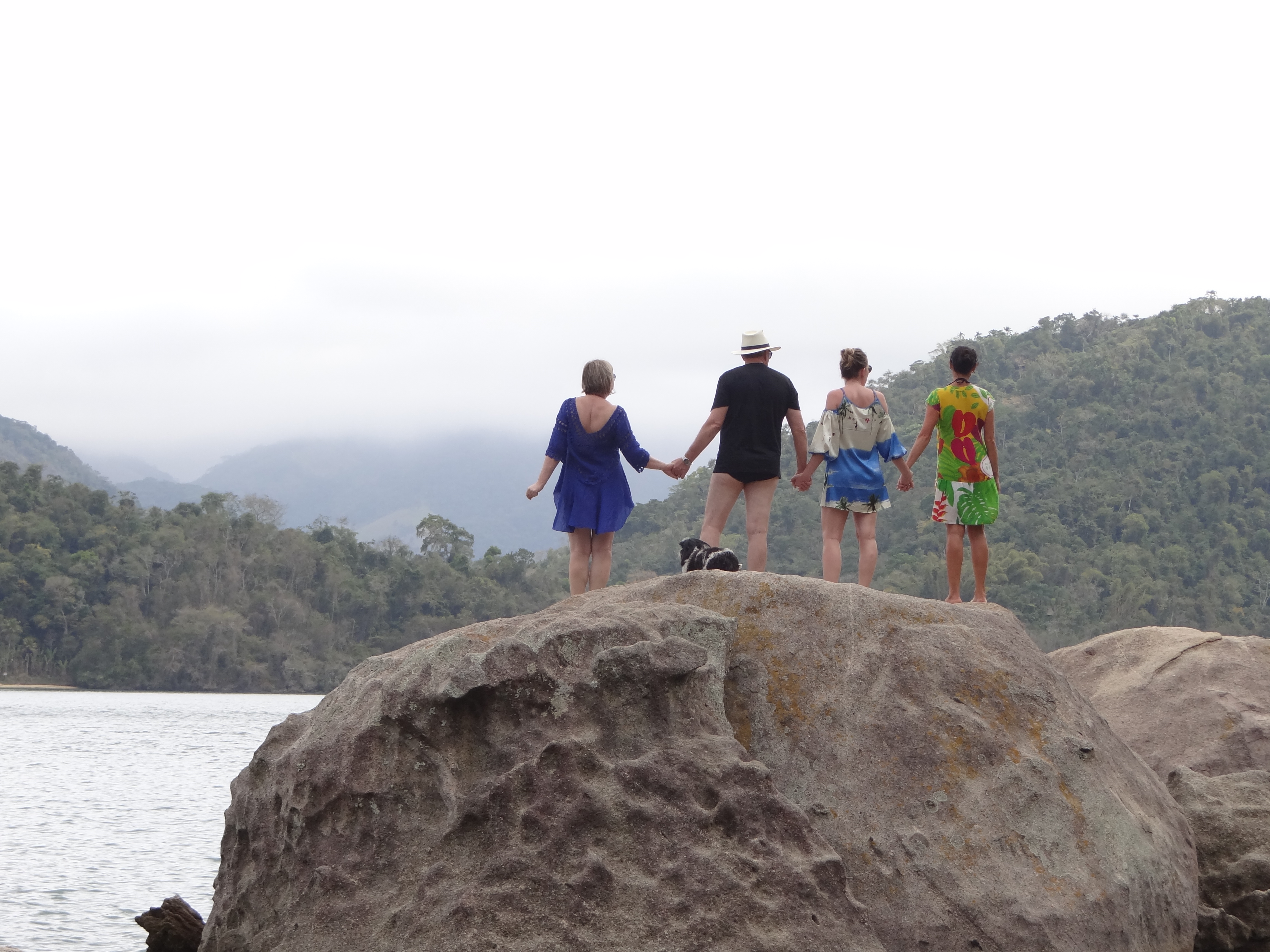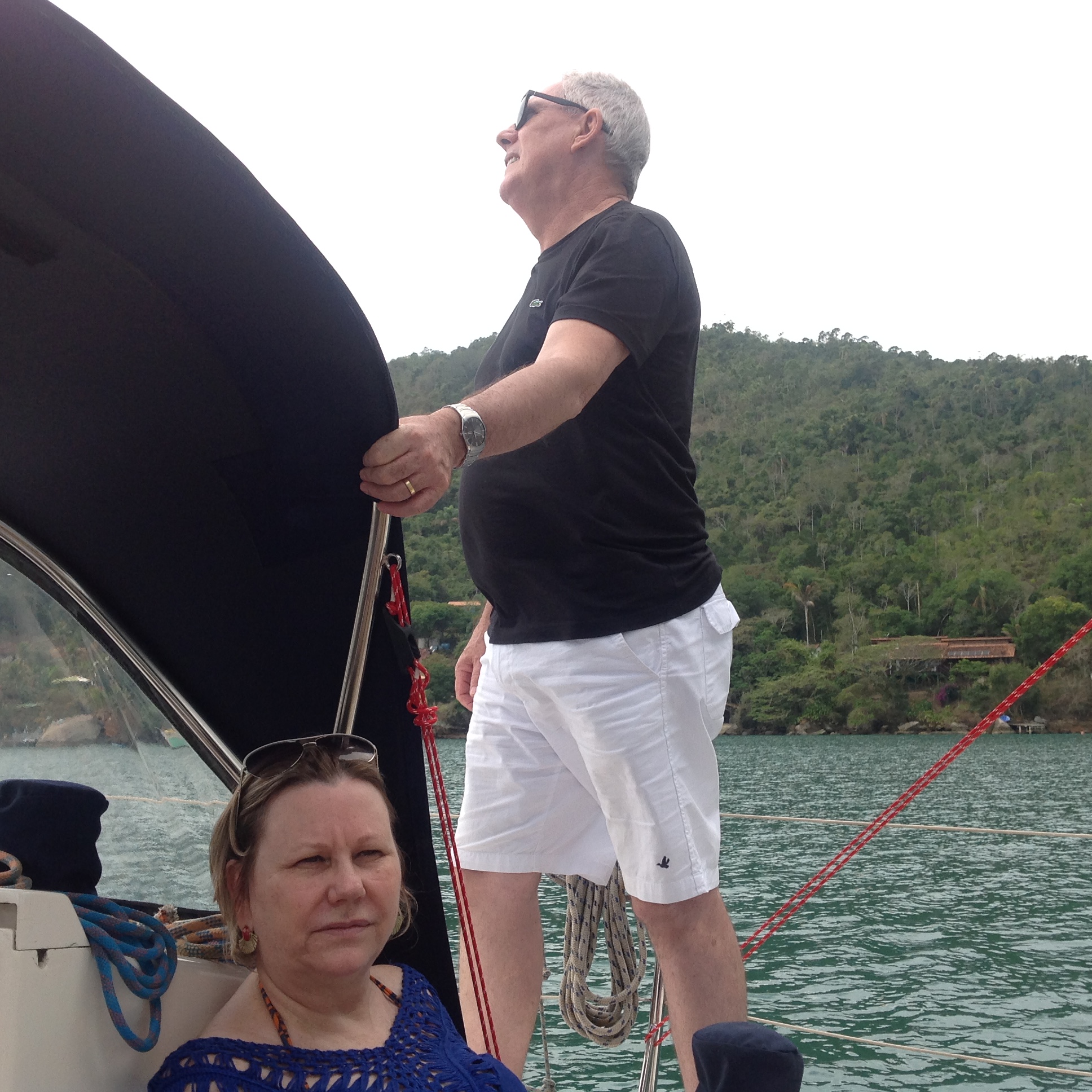 O dia começou muito feliz, mostramos o barco a eles, seu funcionamento e logo se acomodaram. Saímos da Marina rumo a Ilha da Cotia, mas fomos costeando e mostrando cada prainha, contando o que vimos por lá, o que há de interessante em cada uma delas. Eles também se admiraram da cor da água, que mesmo sem muito sol, estava clara, verde esmeralda. O Ilson se saiu muito bem como imediato, quase tomou o lugar da mandante kkk. Ao chegarmos na Cotia preparei uma entrada com camarão branco, os daqui são deliciosos e graúdos e a seguir almoçamos o já tradicional camarão ao ninho, especialidade que veio do Oceanware e que todos adoram. Passamos a tarde gostosamente conversando, matando a saudade e compartilhando com eles um pouco de nosso dia a dia. O dia foi maravilhoso simplesmente. Retornamos da Cotia para a Marina e marcamos de nos encontrar no dia seguinte. Namastê 🙏🏼