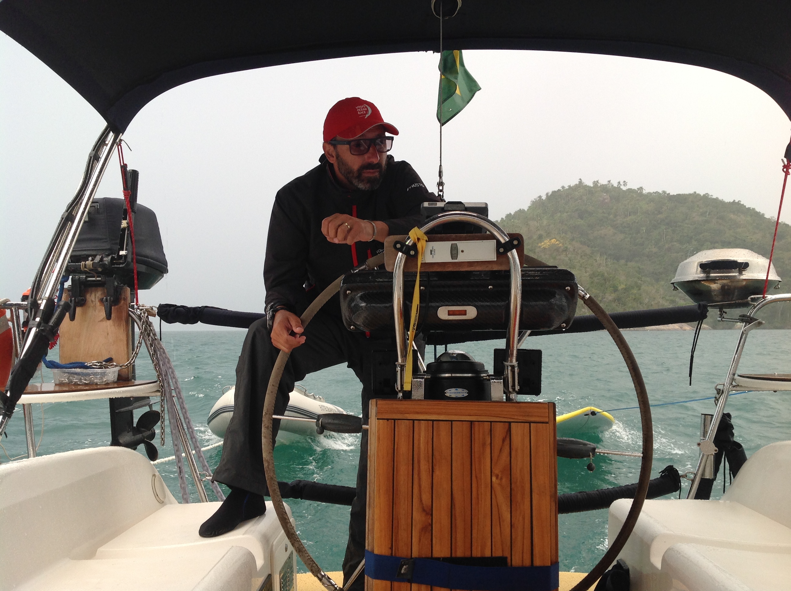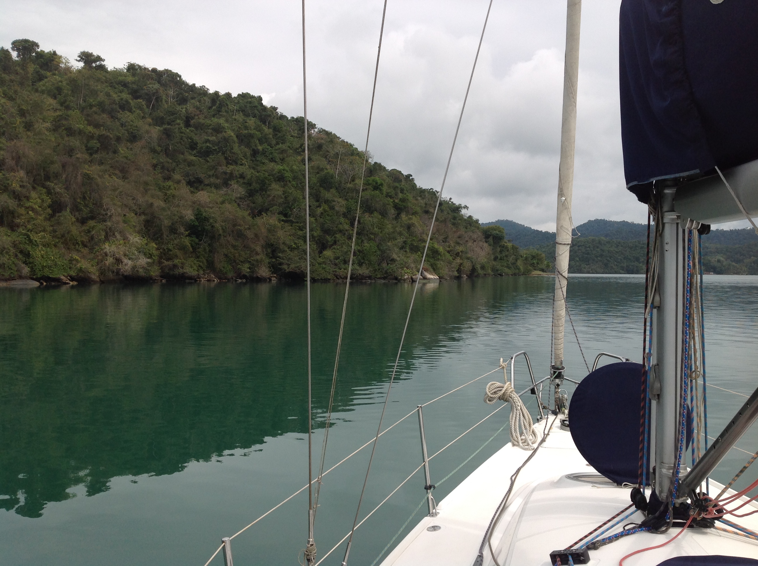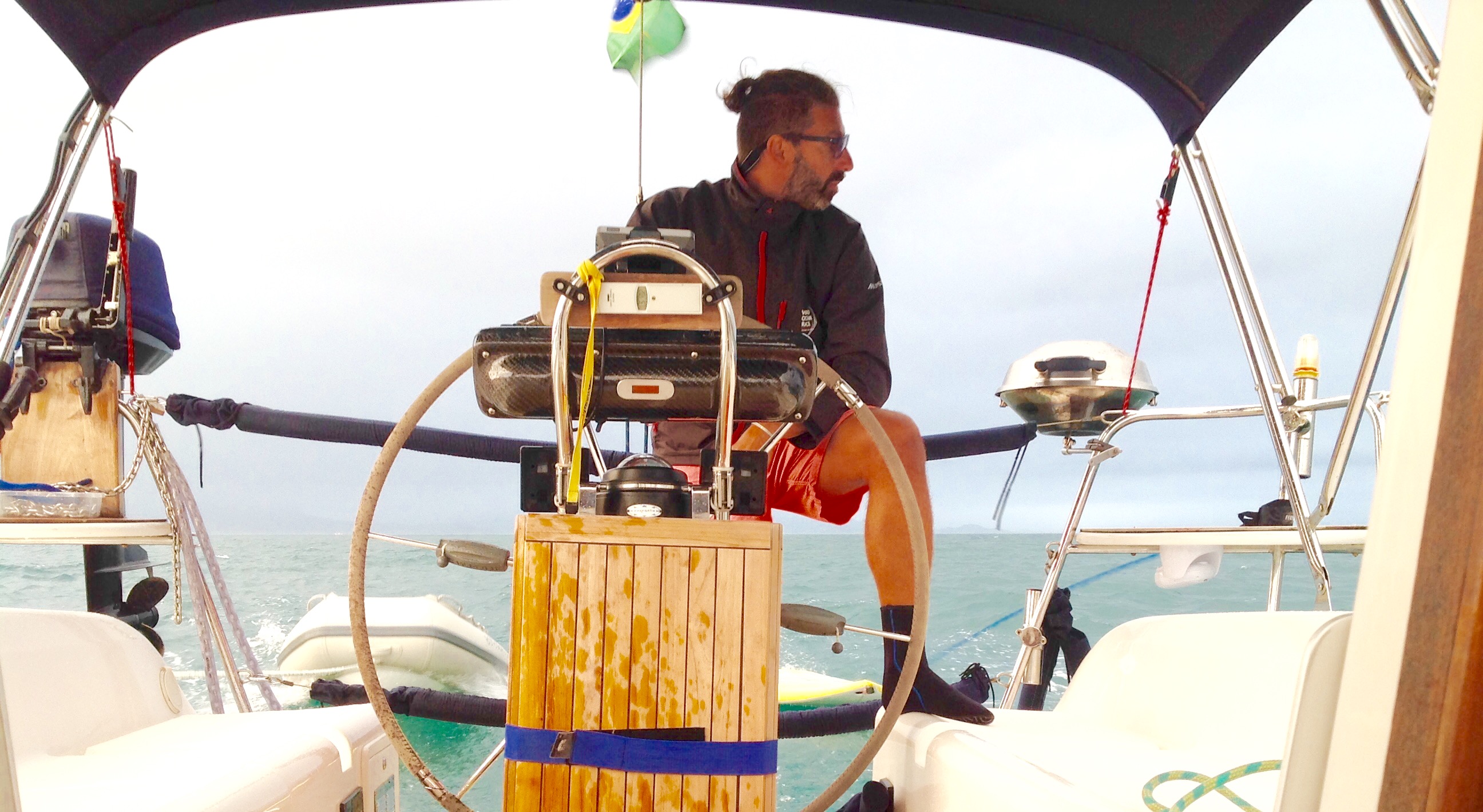 Dia 78 (07/09/16) quarta🌥🌦🌥 dia de sair da Marina Farol de Paraty, tomamos café da manhã na Marina, encontramos o André, do Zéfiro, que nos emprestou a Wap e o Renato deu uma geral no cockpit e convés. Quando se mora no barco, aproveita-se as oportunidades de água doce disponível para manter o barco limpo, livre do sal, que aos poucos pode ir impregnando a fibra. Saímos às 15h30m e o tempo estava fechado, já havia dado chuva e sol, mas a tarde estava bem carregado. Desatracamos e rumamos para a Ilha da Cotia, onde o veleiro Grão, nos aguardava.
