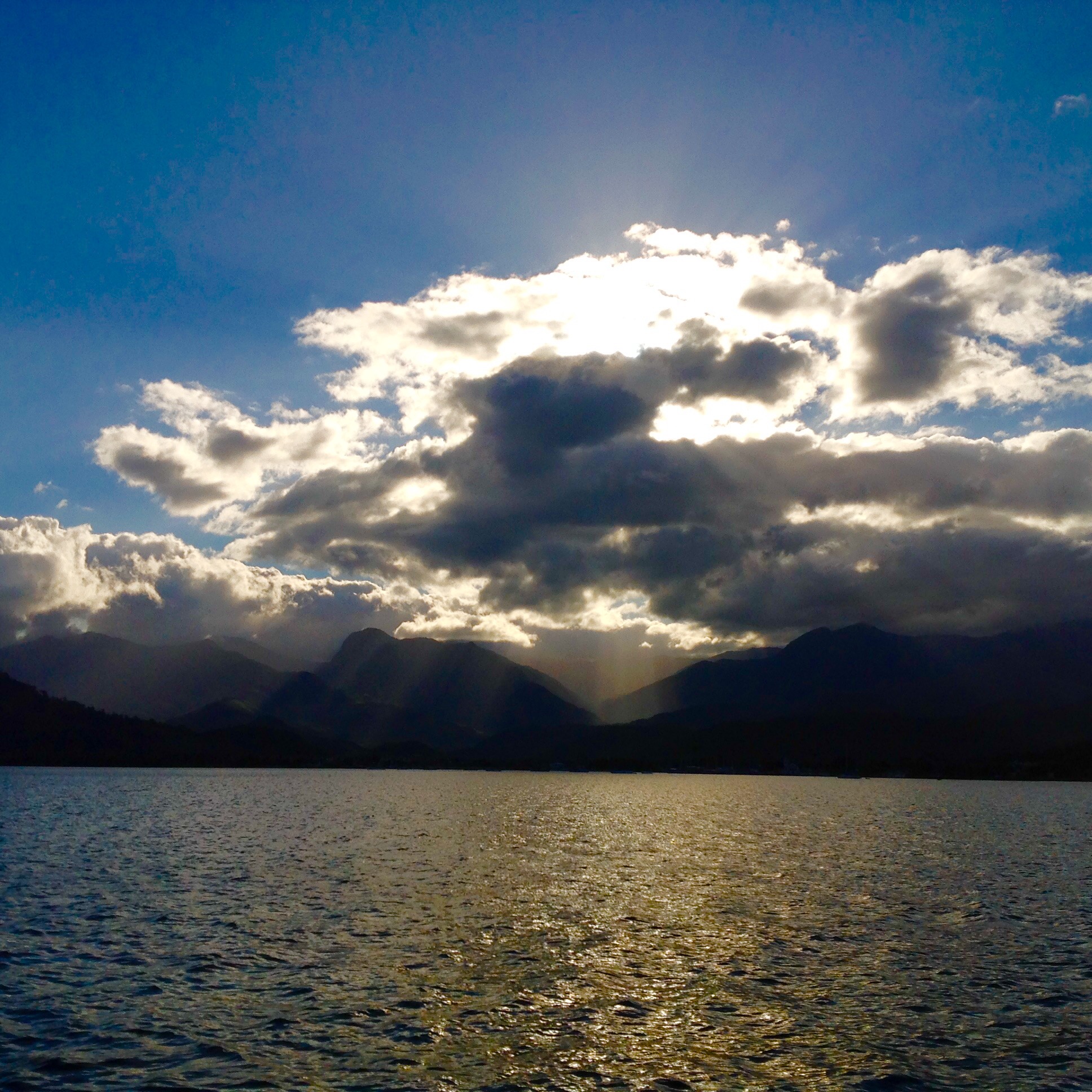 Desatracamos e fomos para o Saco do Jardim onde os recebemos com o tradicional camarão ao ninho, acompanhado de várias 🍻weizenbier trazidas pelo Teixeira. Passamos a tarde gostosamente, fomos com o bote até o Forte, local com vários canhões, importantes para a segurança de Paraty no passado. Fizemos várias fotos pois a vista é muito linda.