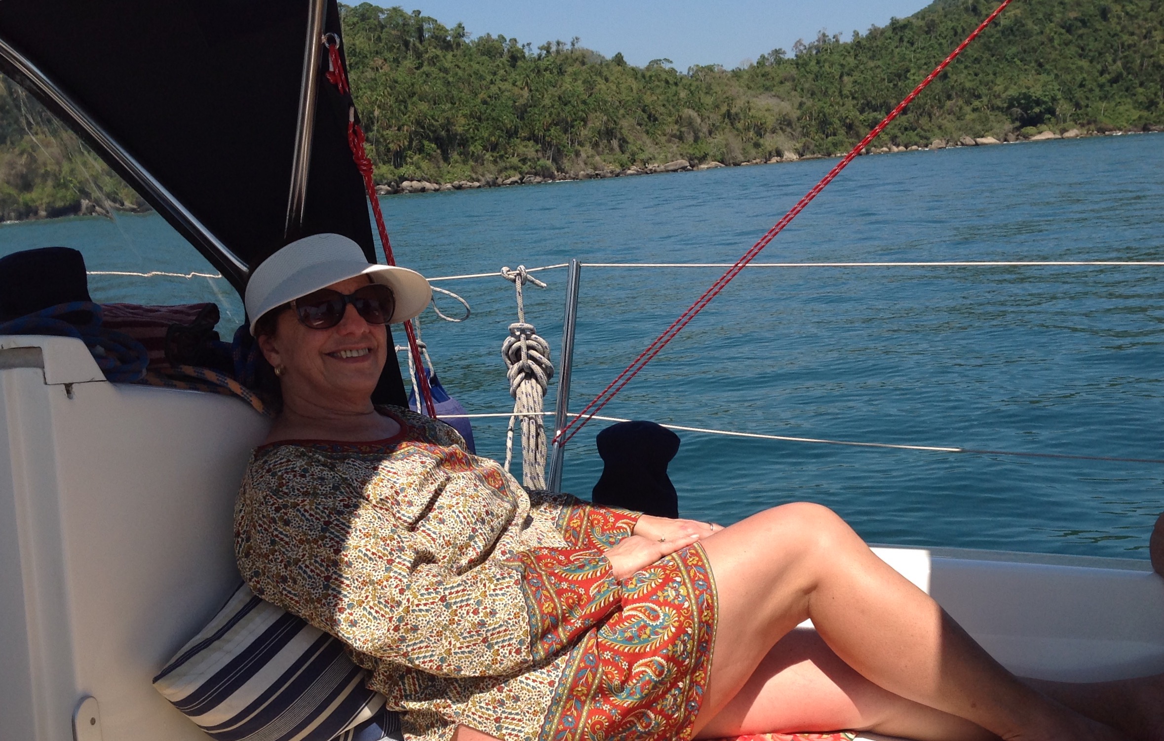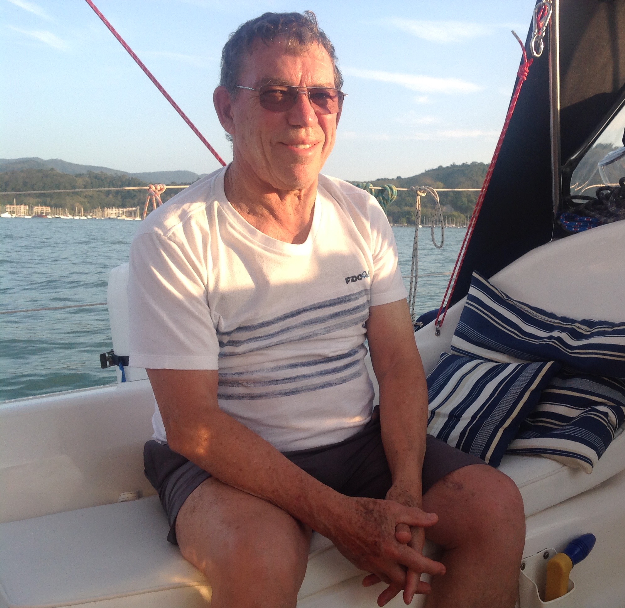 Chegamos com sol e pegamos pouco vento na ida. Descemos na prainha para pegar sol e caminhar com a Bella. Falando com a Roberta, veleiro Maremio e com a Natascha, veleiro Velella, soubemos que por aqui há muitas cobras por toda a região, por isso a partir de agora, descemos com a Bella na guia e só depois de dar uma boa olhada no local a soltamos. O cardápio de hoje foi churrasco, uma boa picanha com queijo coalho, efeito e servido pelo Renato no capricho. Como é sexta já começaram a chegar alguns veleiros e lanchas para o fim de semana na Cotia. No retorno para a Marina, costeamos o cais de Paraty e paramos para ver o por do sol ao som de Frank Sinatra, cantando New York, show!