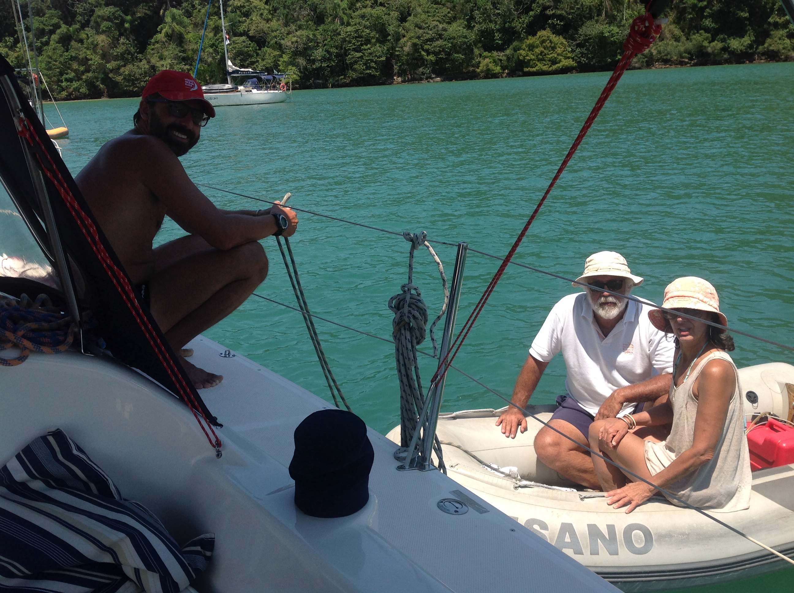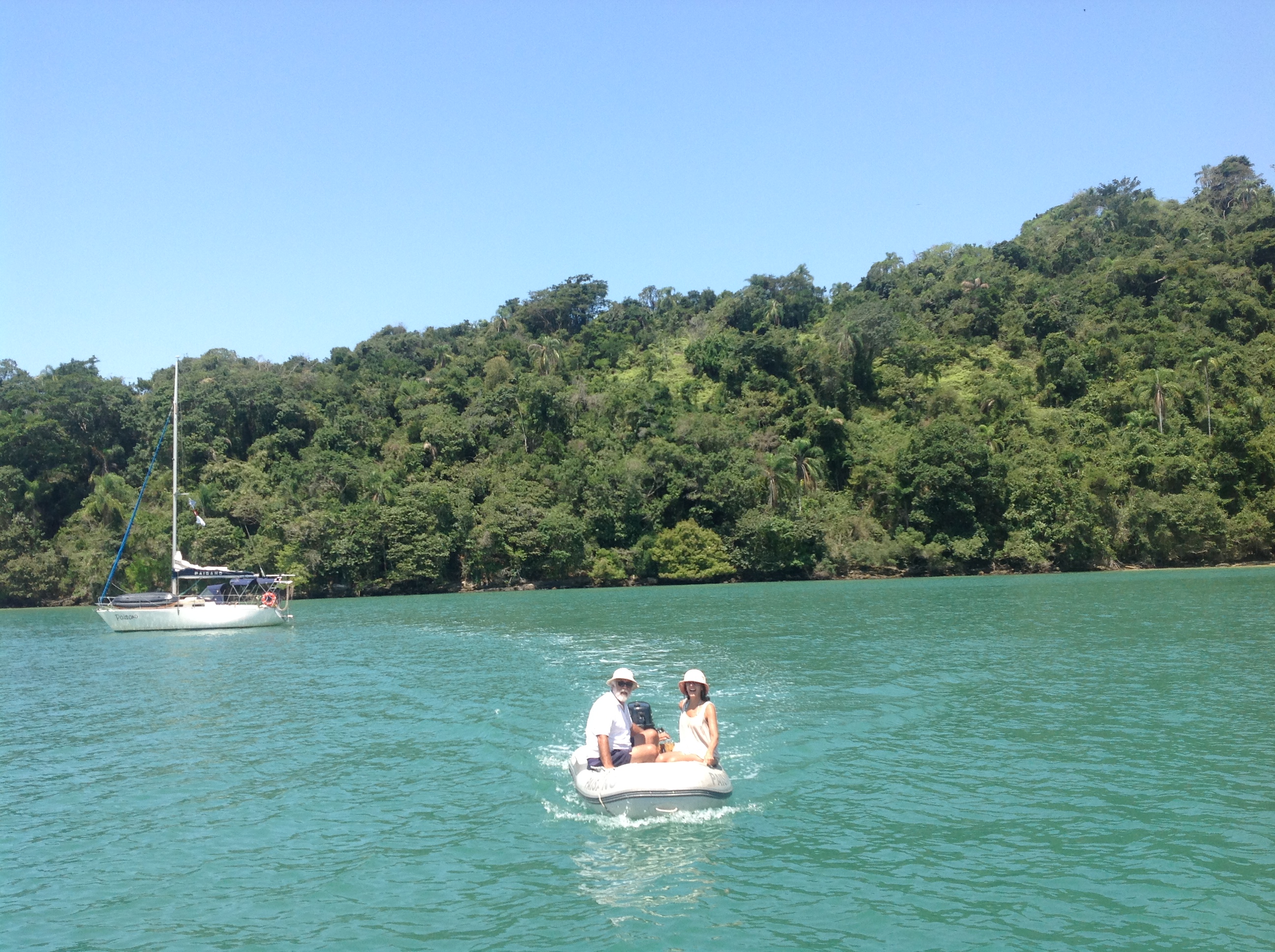 Dia 110 (09/10/16) domingo 🌞🌞🌧 Ilha do Cedro. Dia super ensolarado, nenhuma nuvem no céu, dia fazer stand up, andar na praia, brincar e dar banho na Bella, passear de bote e curtir a Ilha do Cedro, com muitas lanchas e veleiros ancorados no entorno.