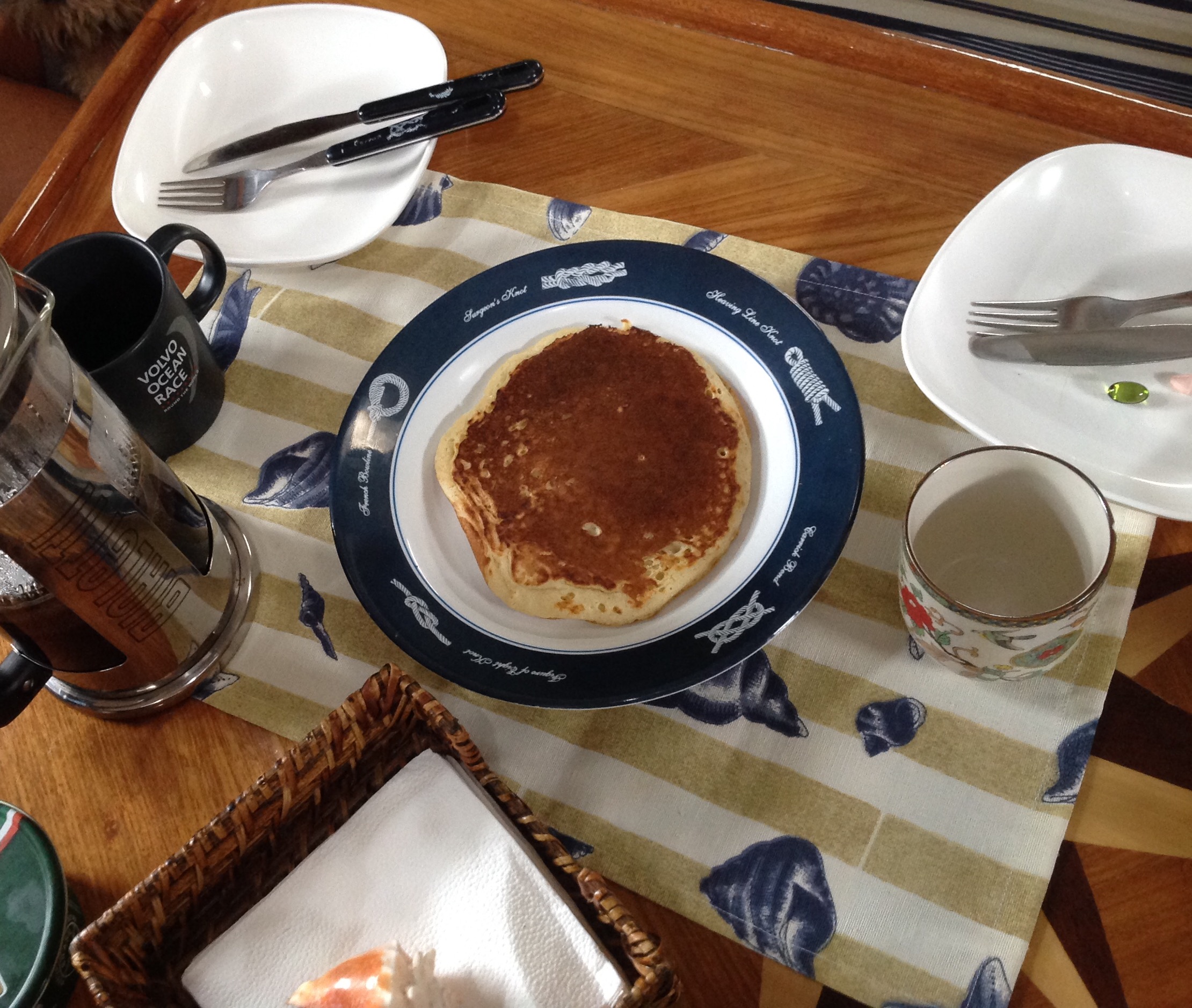 Acordei inspirada, mesmo com o dia tão chuvoso e preparei panquecas no estilo americano, que tiveram nossa aprovação, saborizei com baunilha e ficaram deliciosas! Saímos da Ilha do Cedro e ancoramos na Prainha do Cantagalo, pois amanhã queremos dar uma geral no barco e logo vamos para a Marina Farol de Paraty, aguardar nossos amigos. Dia de chuva, chimarrão, almoço caprichado, leitura… Jeito simples e gostoso de começar a semana.