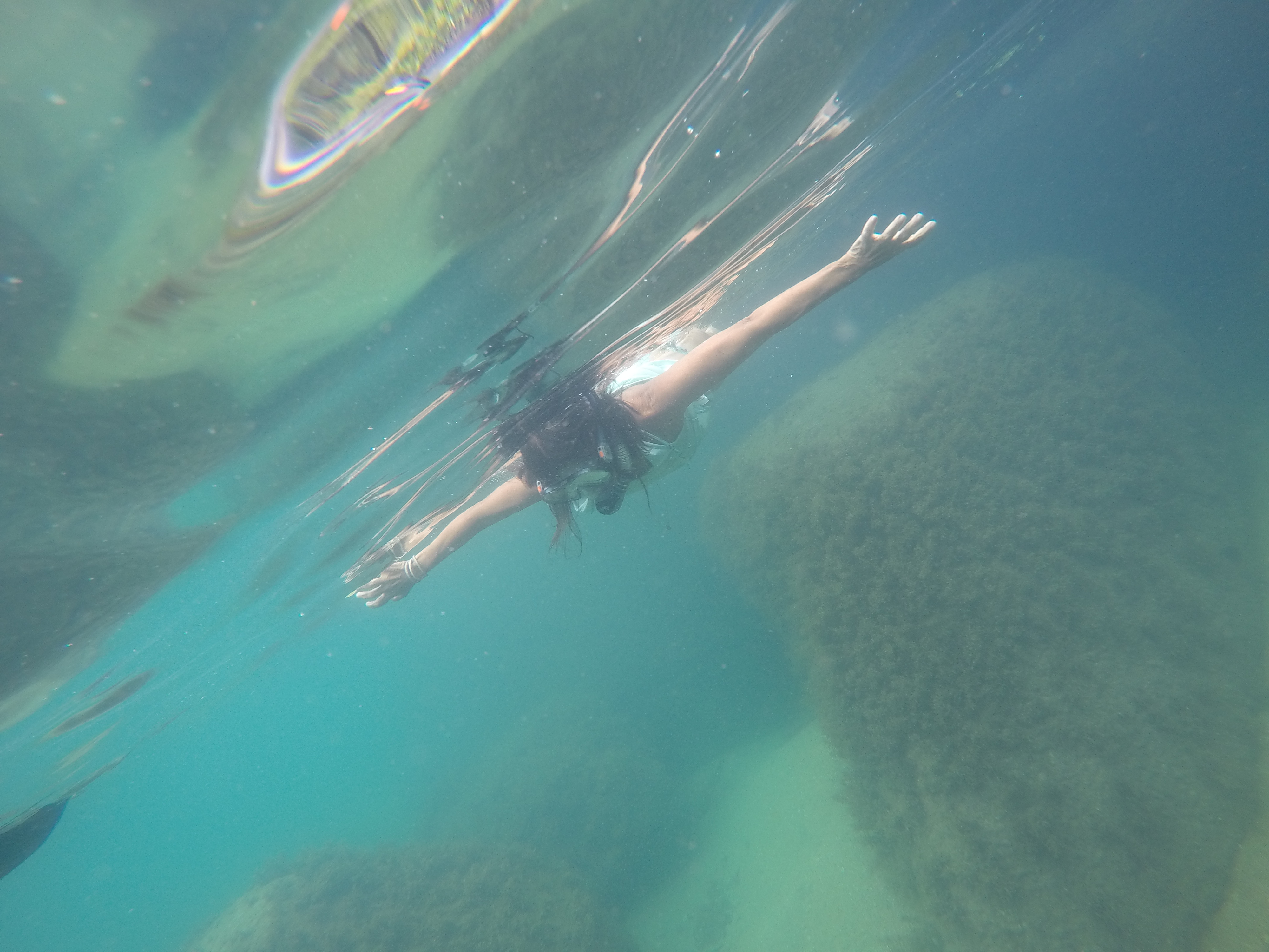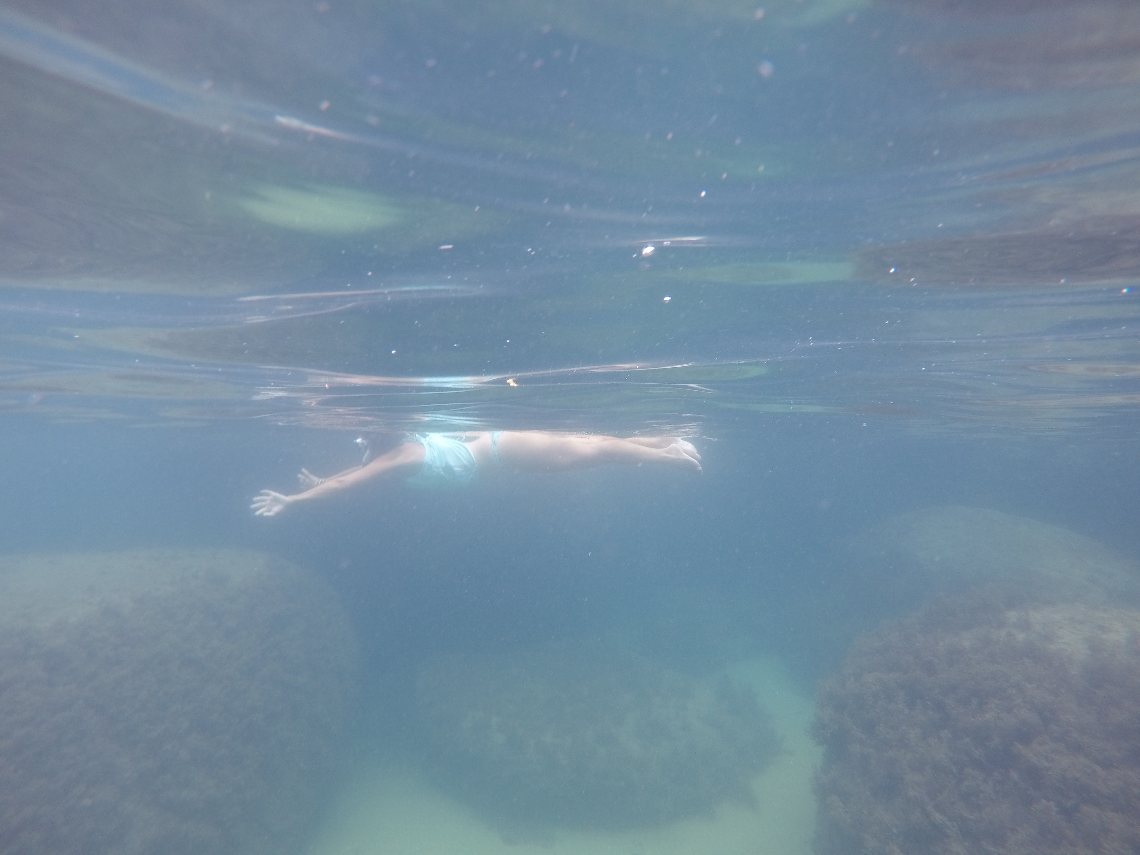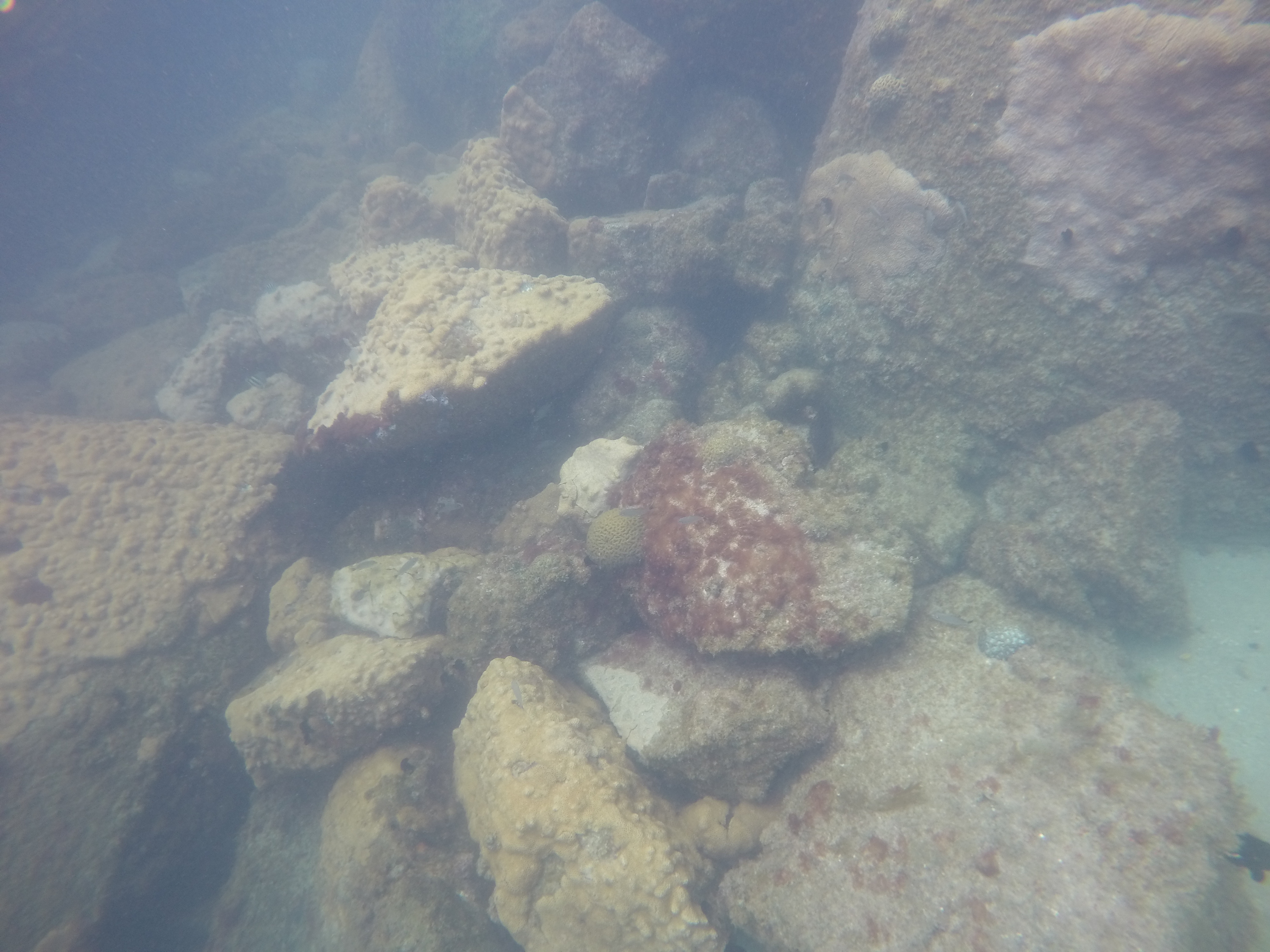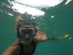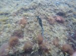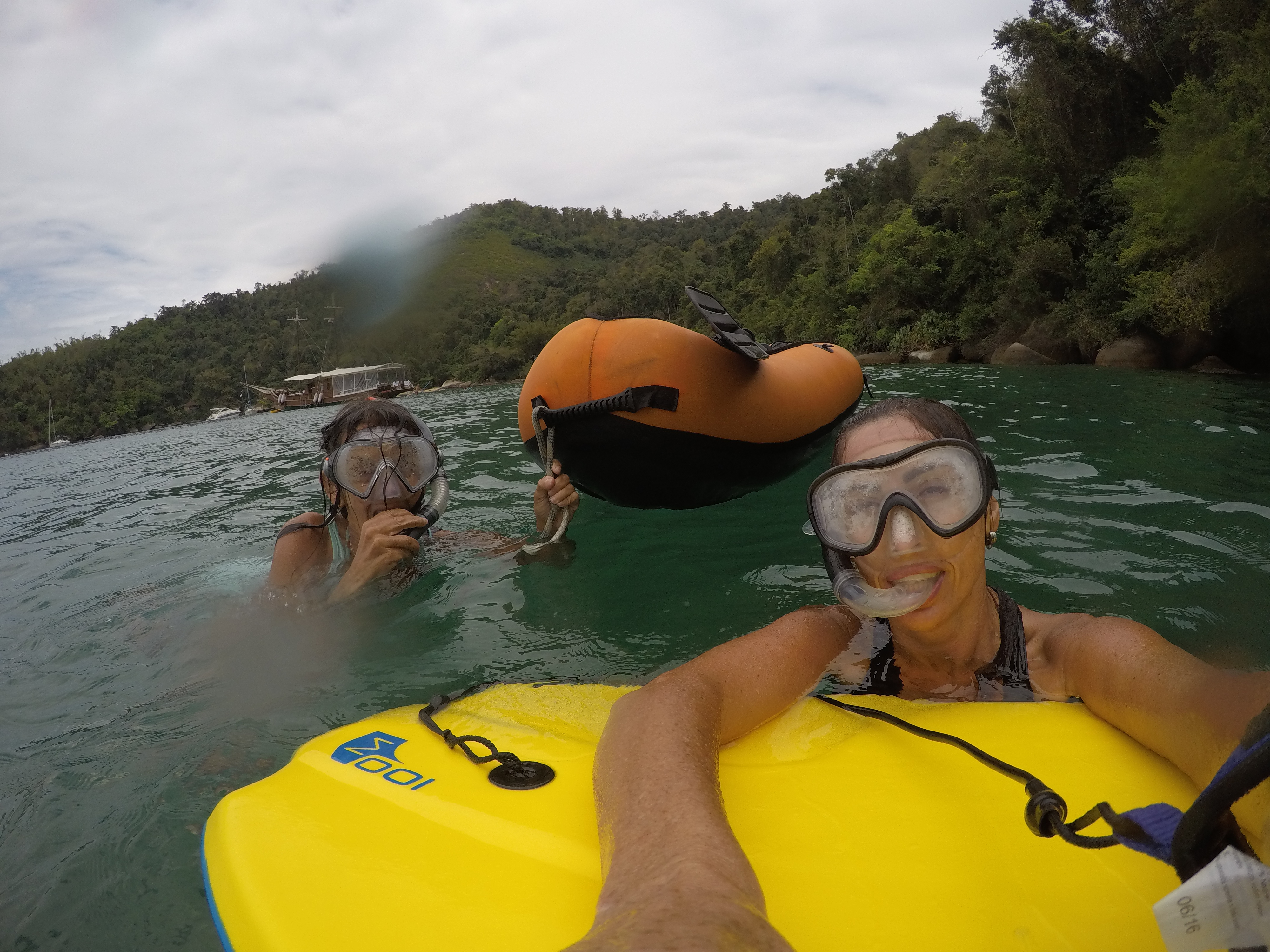O Renato foi ao local que o Herbert havia visto o cavalo marinho e lá estava ele…. Logo, nos animamos a entrar também. Eu e a Helena costeamos de snorkel grande parte do lado direito de quem olha o Saco da Velha. Vimos grandes cavernas, rochas enormes e muitos peixinhos, estrelas, retornamos encantadas com tanta beleza, é mesmo indescritível a beleza encontrada durante o mergulho.
