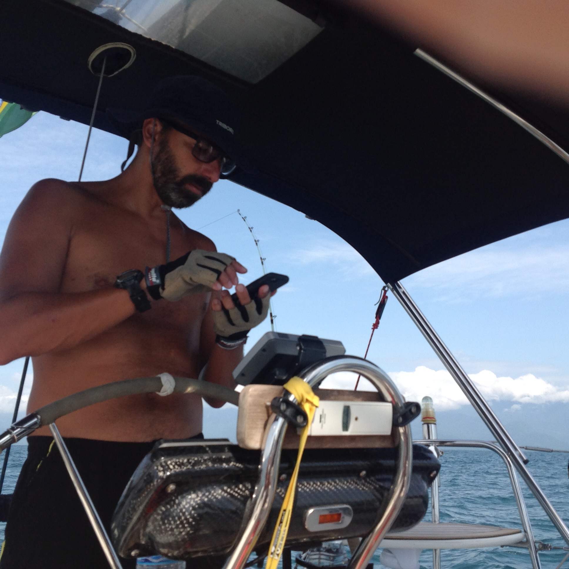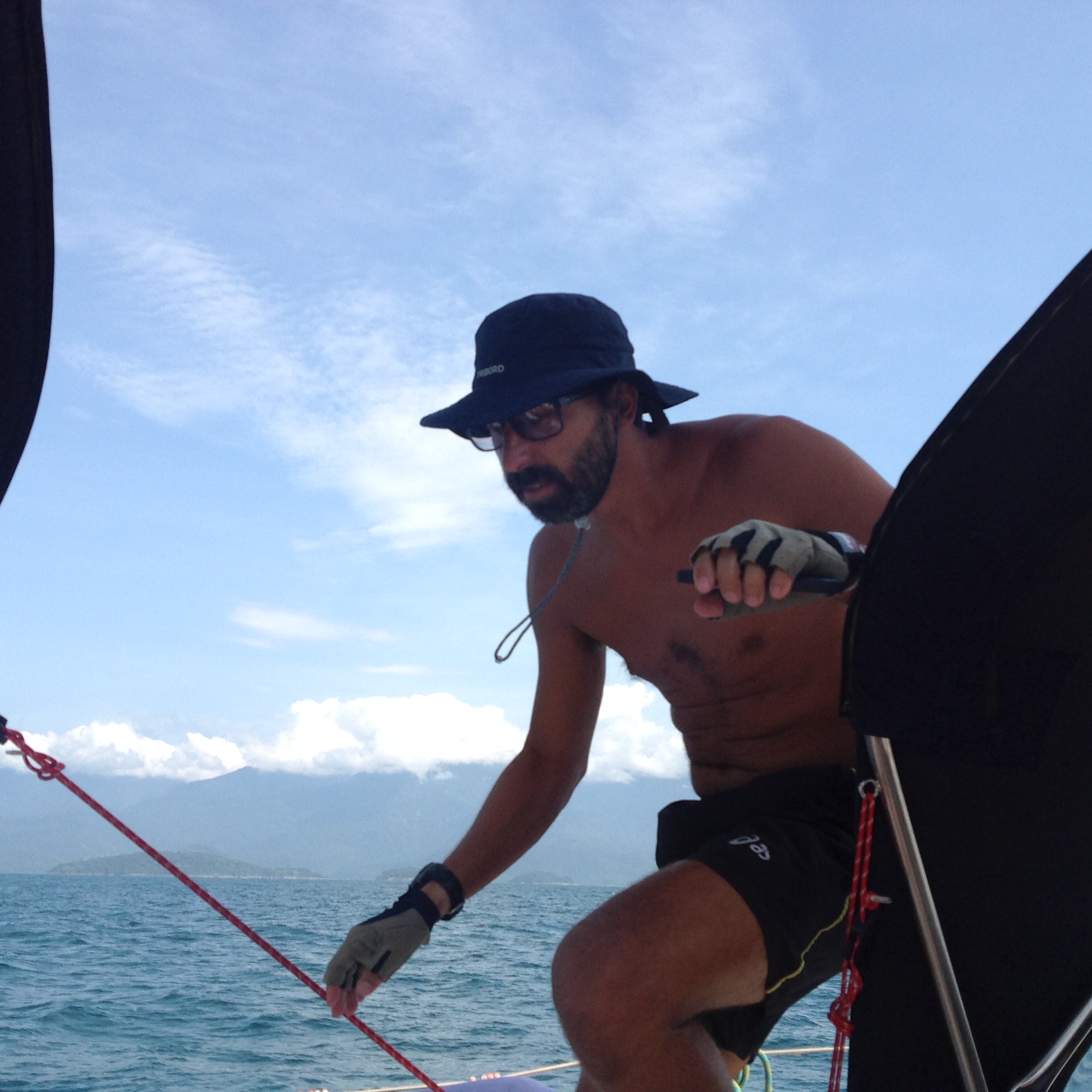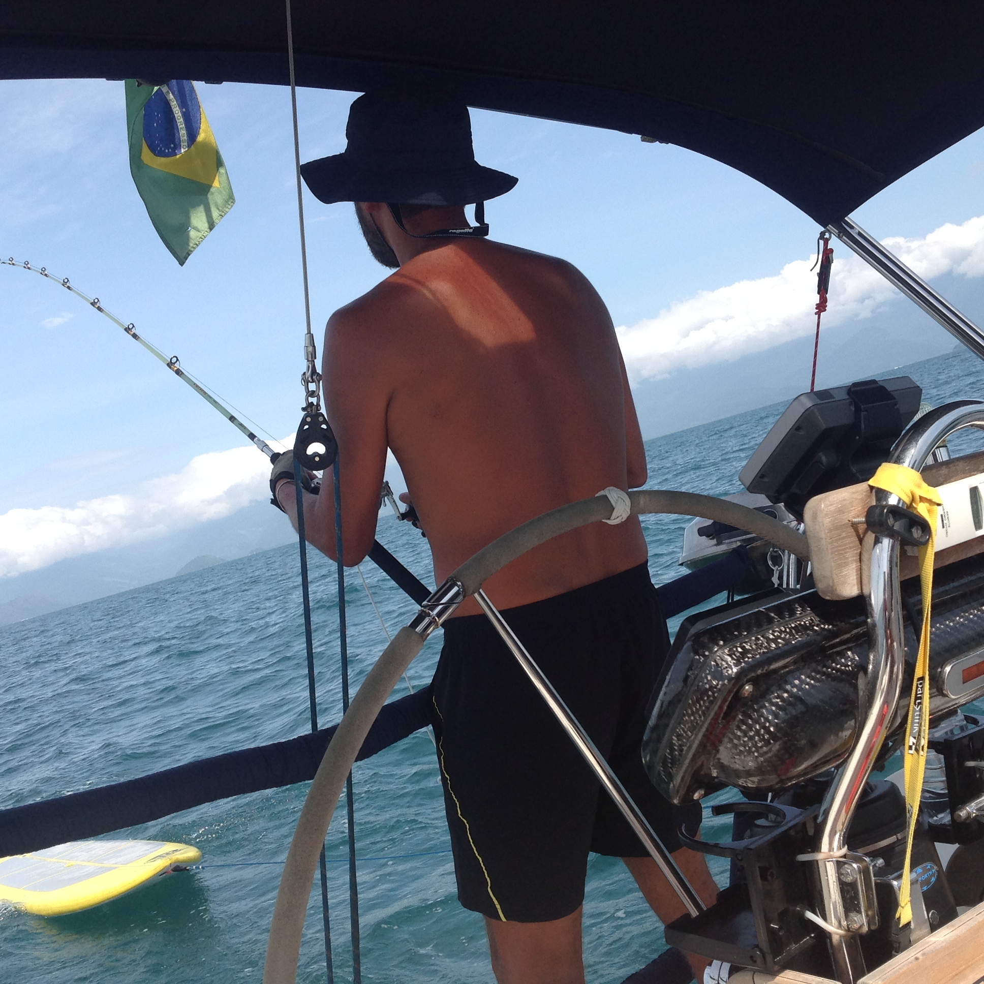 Dia 135 e 136 (03 e 04/11/16) quinta e sexta, Ilha Itanhanguá 🌞💨🌧. Estávamos planejando tirar umas “férias ” de Paraty e ir para Angra dos Reis. O Paisano decidiu nos fazer companhia e assim hoje, às 08:30h zarpamos da Ilha do Araújo rumo a Itanhanguá, nossa primeira parada. Motoramos na saída e logo entrou o vento e velejamos até a chegada.