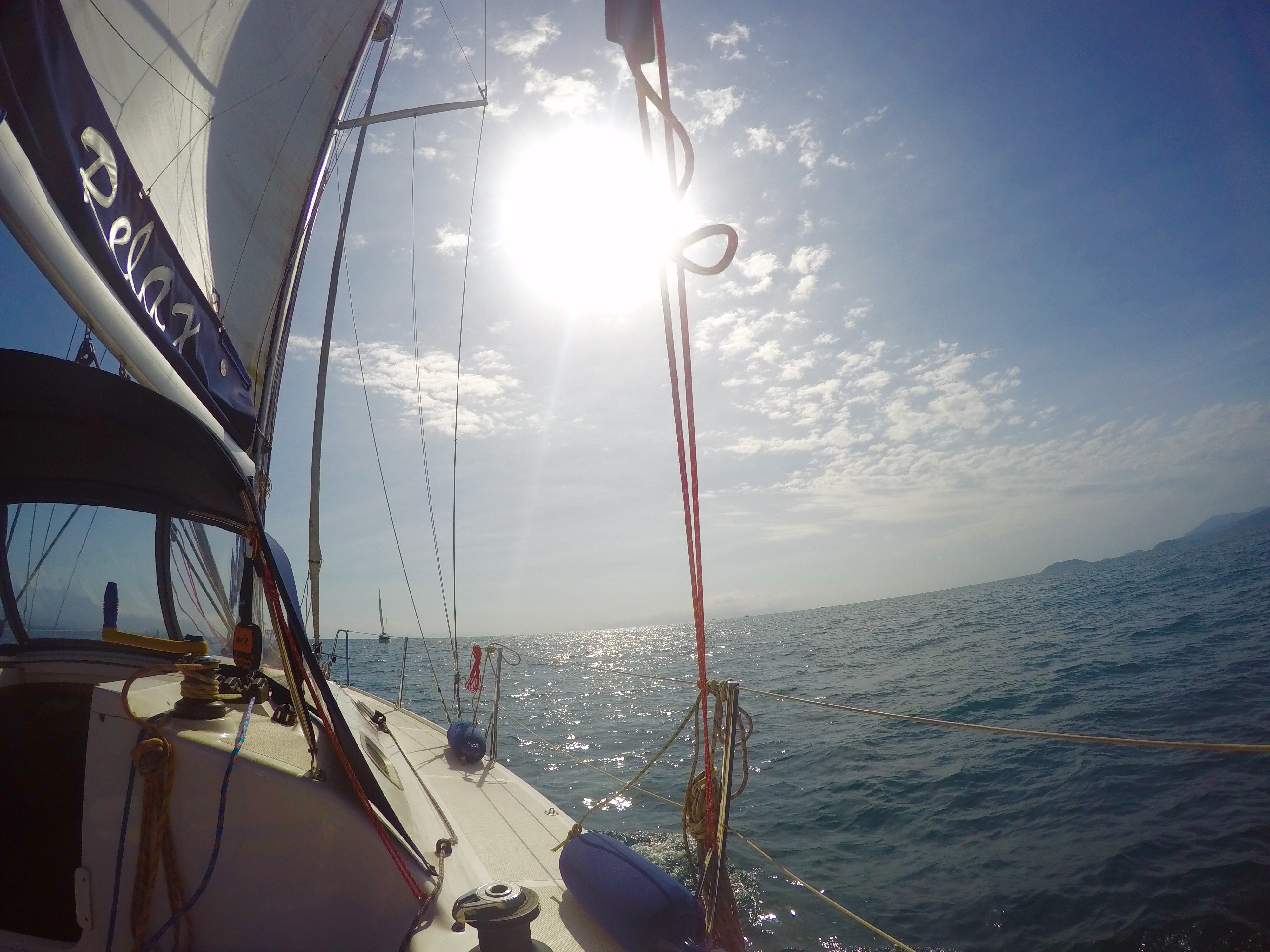 O barco deslizava suave nas ondas do mar e o silêncio evidenciava o barulho das ondas e do vento que entrava de Sudeste e depois de Leste, as pouco mais de 4 horas de navegação passaram num instante. A Bella ficou bem e assim curtimos a boa velejada!