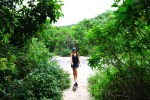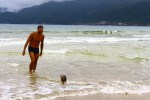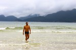 A Praia dos Mangues, onde desembarcamos é bonita e tem alguns moradores e é bem frequentada por aqueles que querem fazer a trilha que leva a praia de Lopes Mendes. Descemos de bote até a praia, onde deixamos preso com corrente a uma árvore e iniciamos a trilha, bem acessível e um pouco escorregadia em função da umidade. Cheiro de mata, de flor, muitos cantos de pássaros e até a presença de pequenos macacos nas árvores, deixaram o passeio anda mais gostoso. Chegamos a praia de Lopes Mendes e ela realmente é tudo o que nos falaram. Faixa enorme de areia e boa extensão, água cristalina, pedras emoldurando as laterais, lindíssima, inspiradora e de uma beleza que traz paz e tranquilidade. Curtimos muito e andamos por toda ela, tomamos banho de mar e depois iniciamos o retorno da trilha, pois voltaremos hoje para a Praia da Tapera, na Enseada do Sítio Forte.