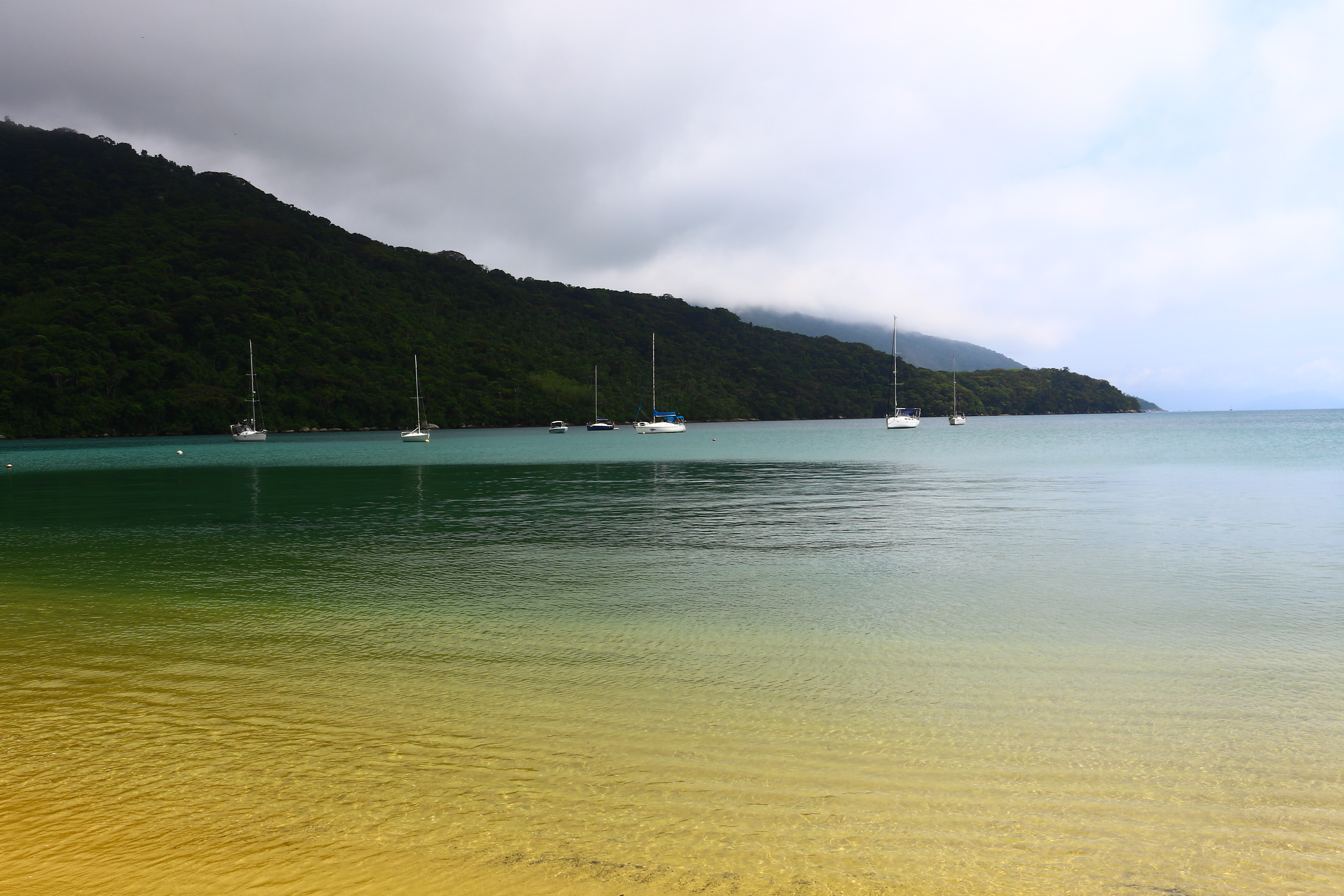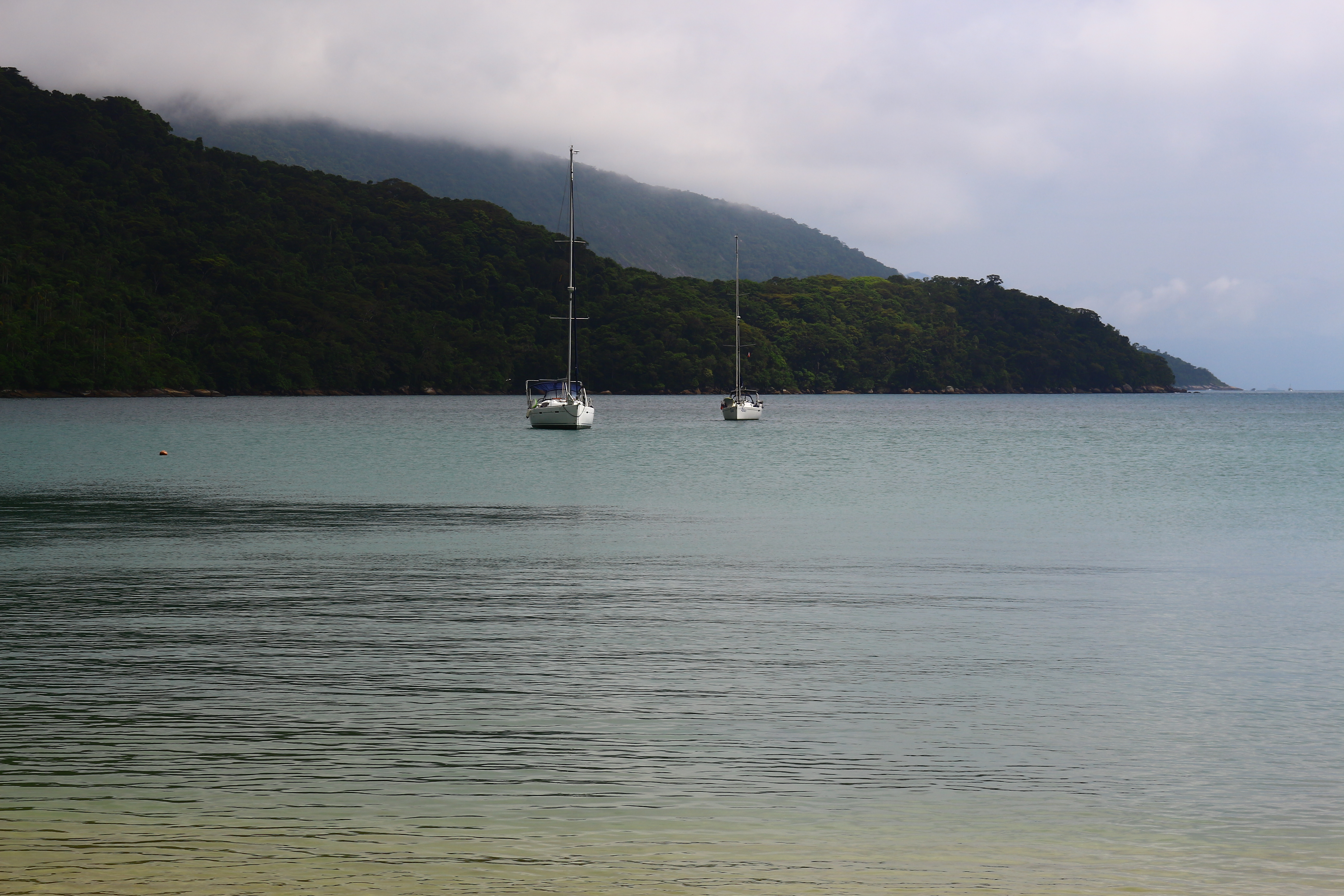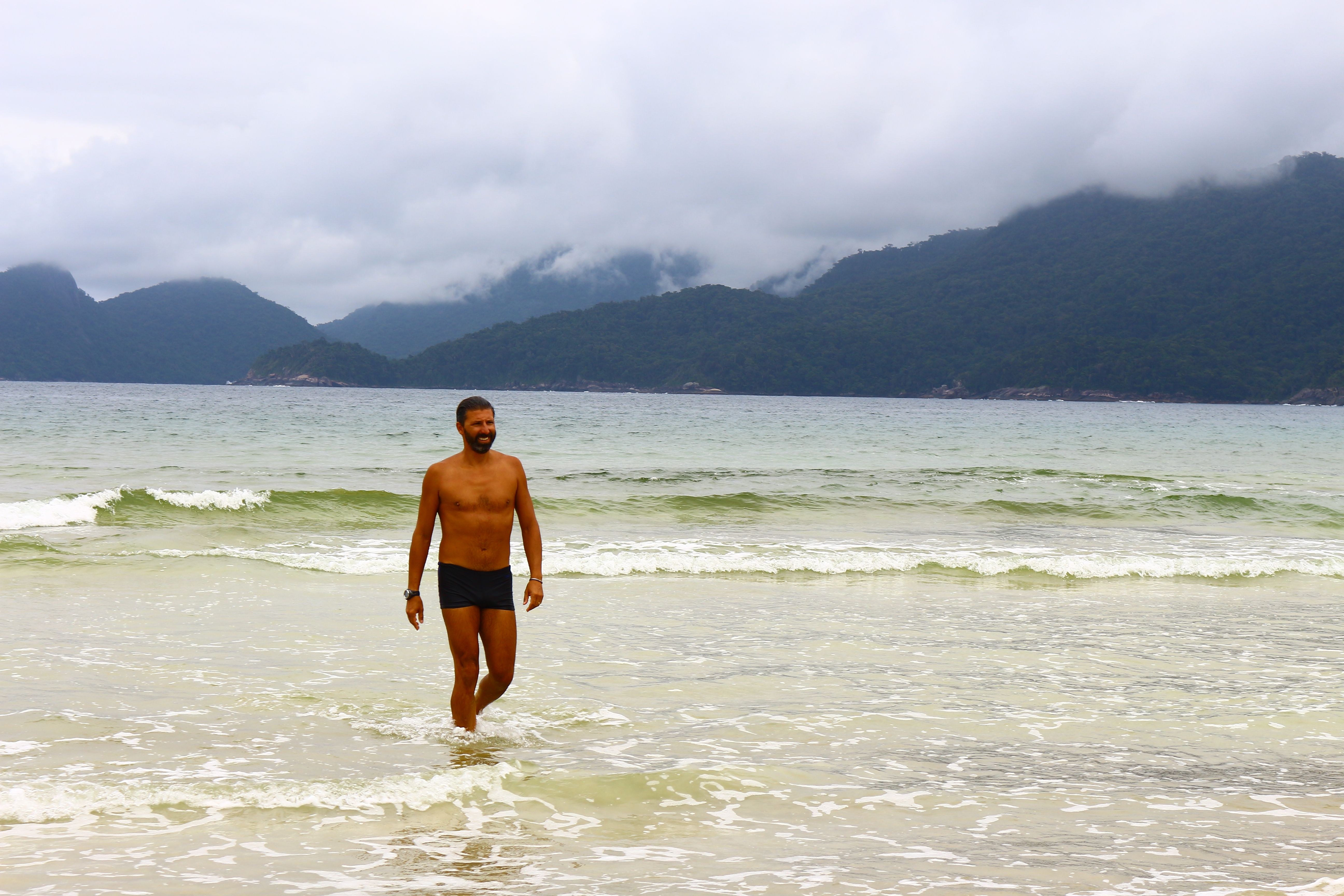 Dia 149 (17/11/16) quinta, 🌥🌤🌥🌧 Praia dos Mangues, Enseada de Palmas e Lopes Mendes, Ilha Grande, RJ. Sol entre nuvens, céu carregado mas mesmo assim rumamos para a Enseada de Palmas, penúltima praia da Ilha Grande que não fica voltada para o mar aberto. Combinamos com o Pigro de tomarmos café somente na chegada e então tomamos um café reforçado para encararmos algumas horas de caminhada pela trilha que vai até a Praia de Lopes Mendes.