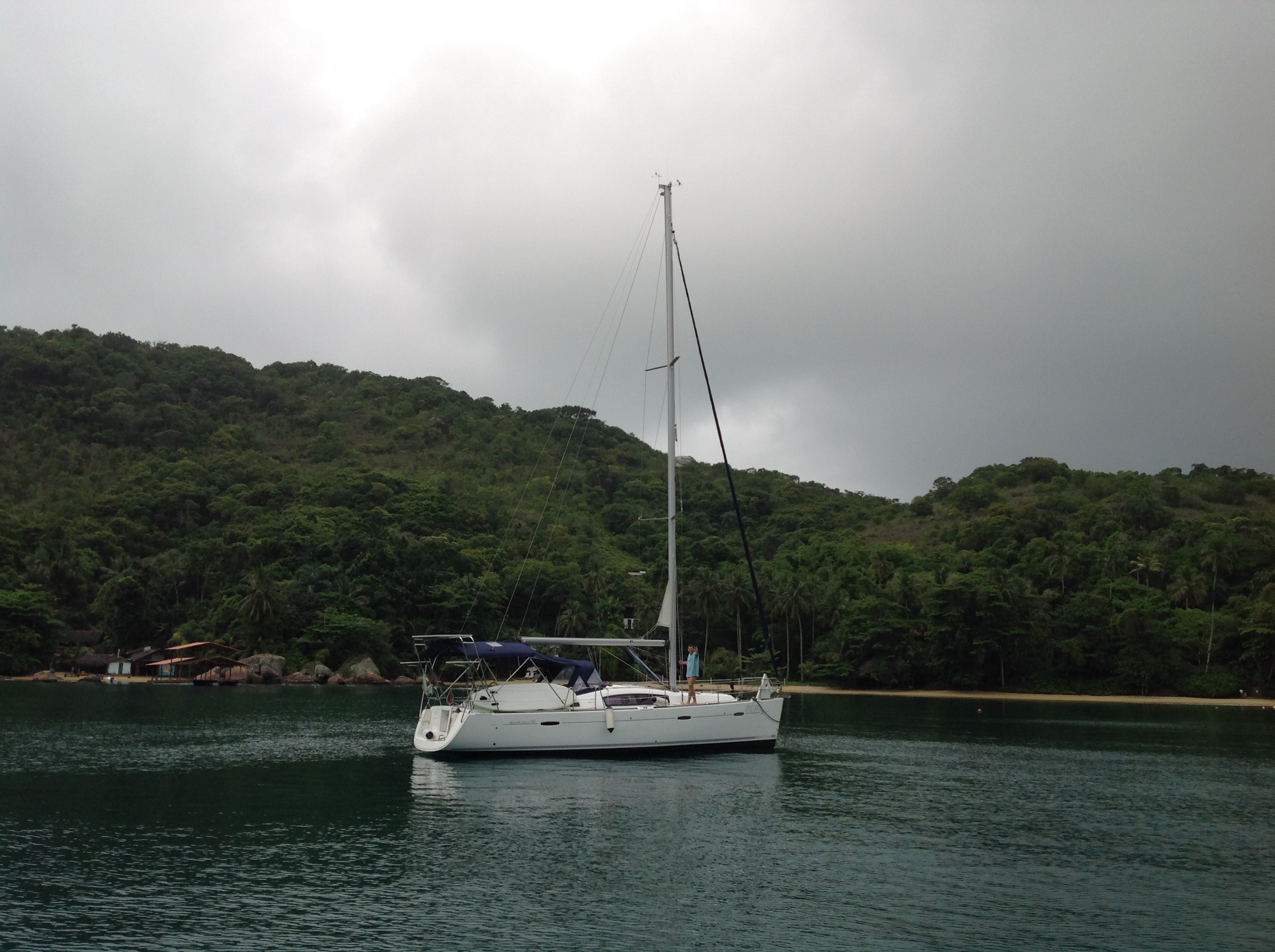 O Renato deixou tudo organizado em função da previsão de vento, secava o convés mas logo vinha uma garoa, depois a chuva e molhava novamente e assim passamos o dia. Acompanhamos os noticiários na TV é realmente é muito bom poder viver um pouco blindado e alheio a tantas notícias ruins e também a todos os escândalos de corrupção que estão vindo à tona em função do trabalho do Ministério Público.
