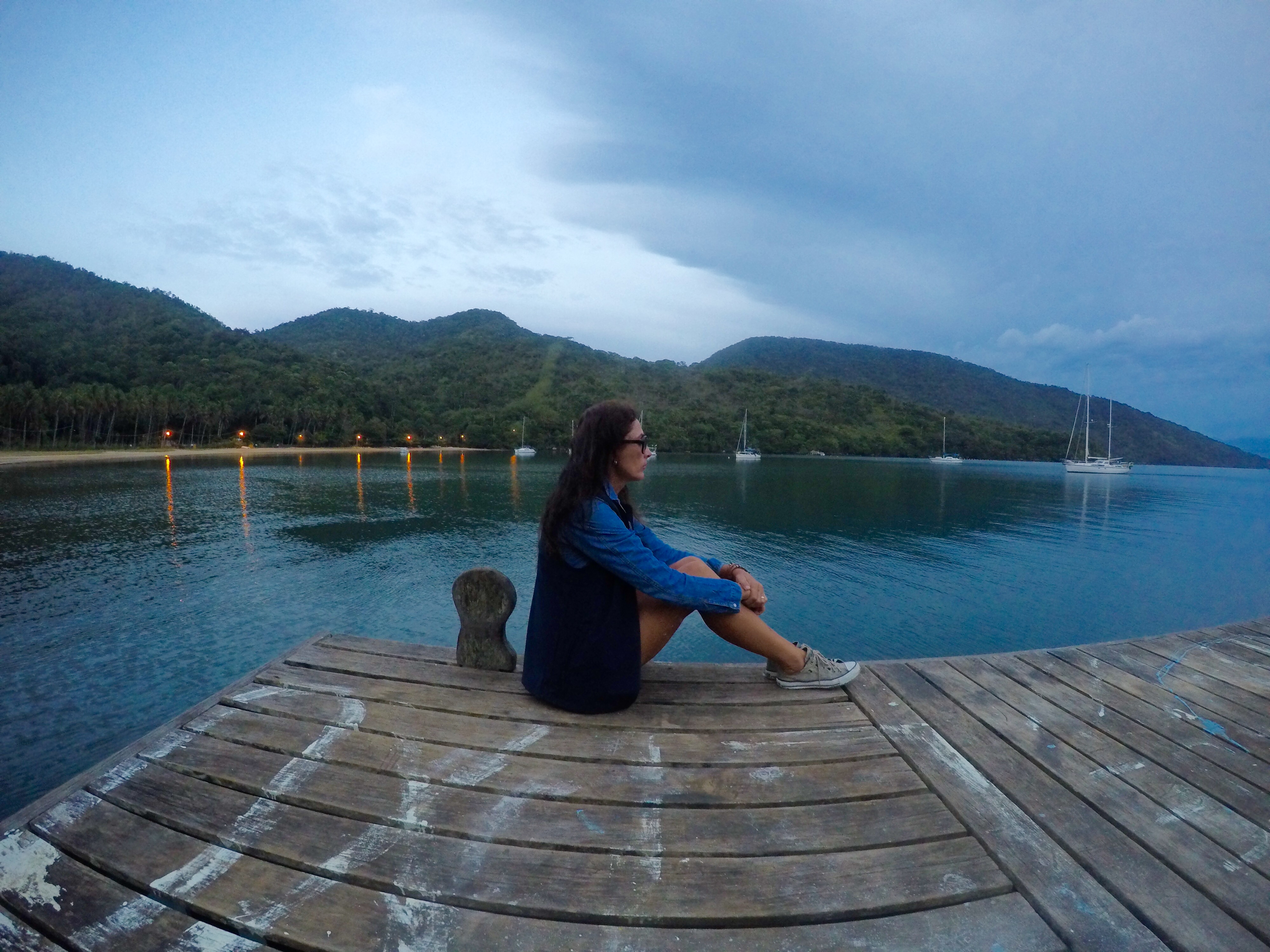 Retornamos as 14 horas, o tempo fechou e no canal pegamos um ventinho, chegamos bem e curtimos a experiência do transporte náutico disponível, que entrou em várias pequenas vilas para pegar e levar os passageiros do dia. Um brinde ao final do dia para comemorar nosso aniversário e uma parada no cockpit para curtir a noite, que levou o vento e trouxe uma brisa suave. Namastê 🙏🏼.
