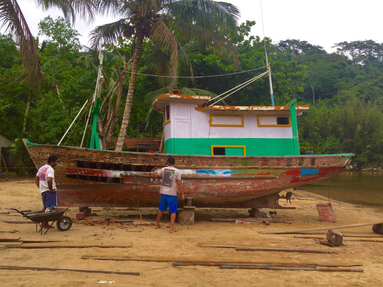 Chegamos e vimos que é uma vila de pescadores, com uma Igreja de São Pedro bem de frente para o cais. Perambulamos por lá até descobrir que um dos pescadores, que ainda estava embarcado tinha peixe para vender e assim compramos uma bela “bicuda”. Com o peixe numa sacola com um pouco de gelo começamos a retornar.