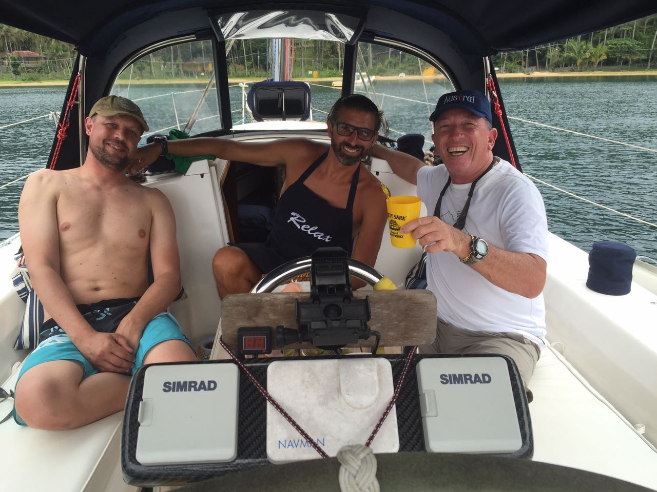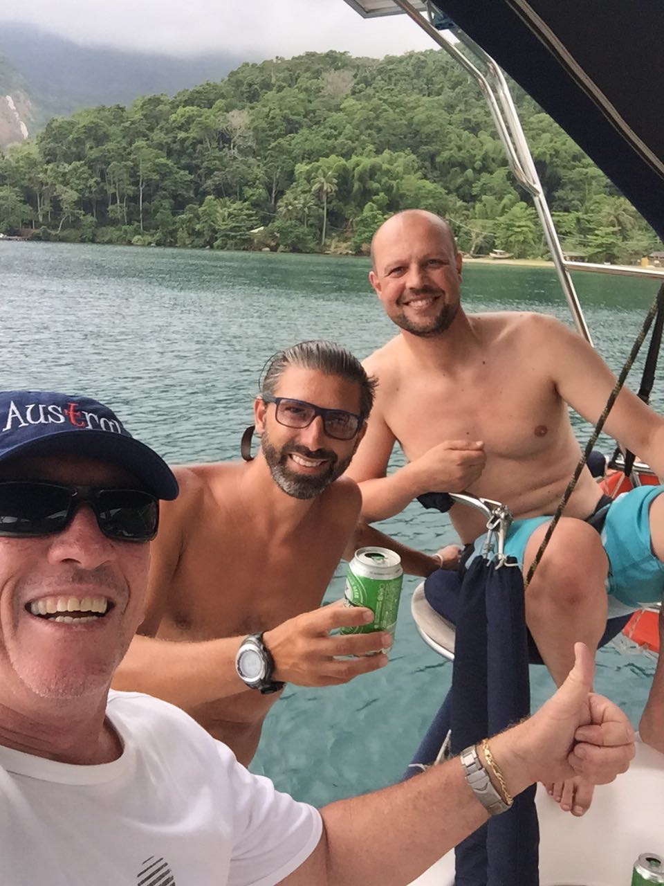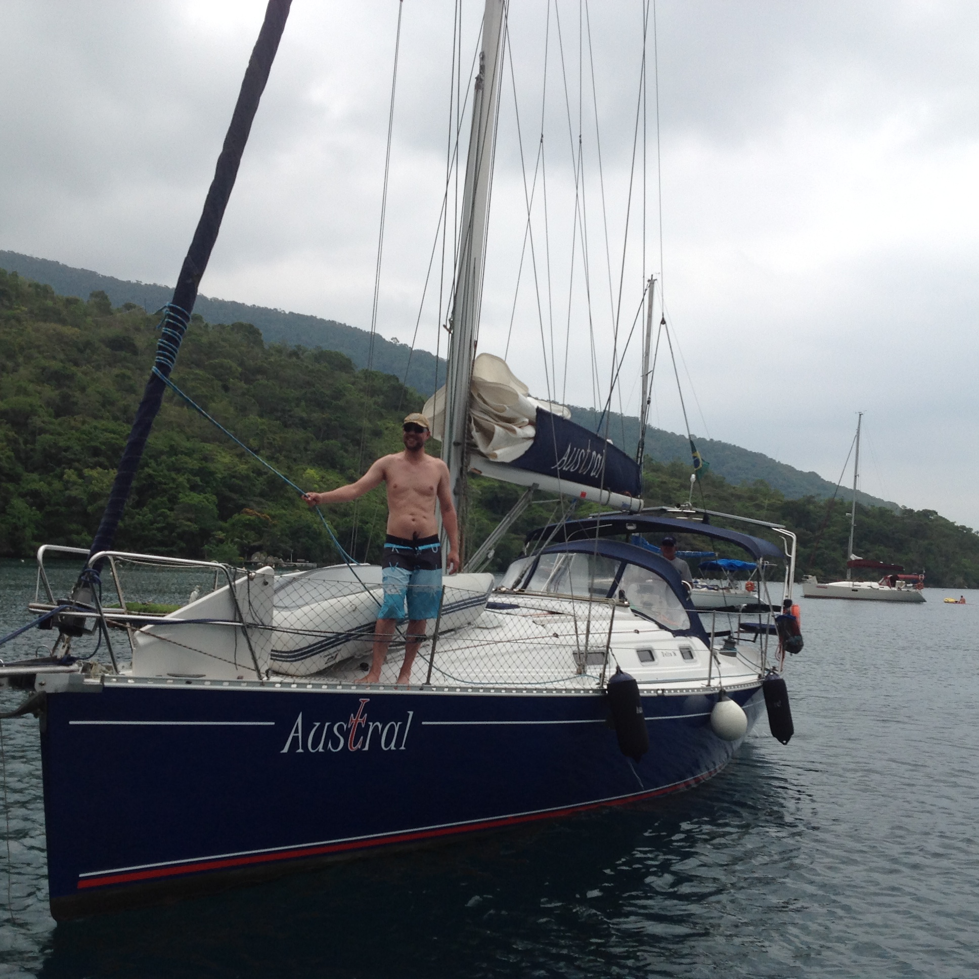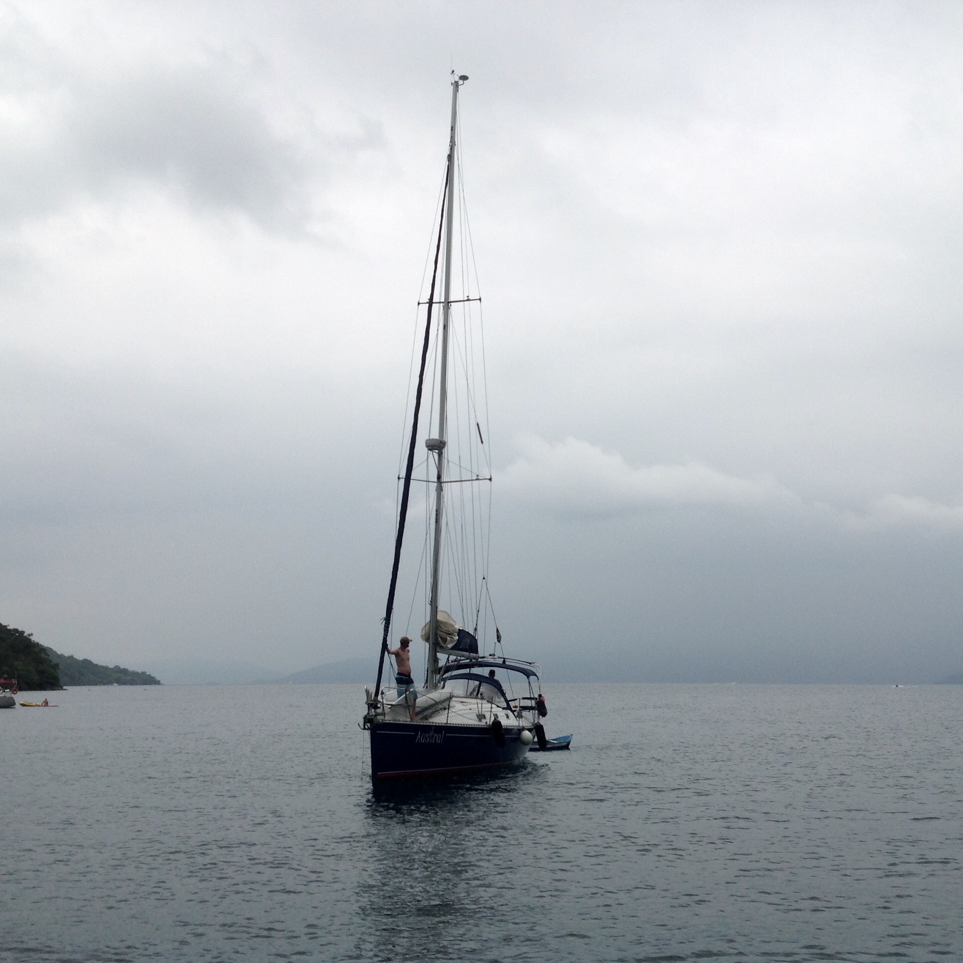 No meio da tarde chegou o Austral, barco muito bonito e sempre impecável, muito bem cuidado pelo Pádua, o Renato foi recebê-los e logo vieram para o Relax para o churrasco de boas vindas. O Pádua foi uma das primeiras pessoas que conhecemos quando compramos nosso veleiro e deixamos no Clube Náutico de Antonina, PR e ao longo desses anos temos construído com ele uma grande amizade. Pessoa alegre, divertida e sempre de bom “Austral” kkk.O Robson veio com ele para trazer o barco e relataram que foi uma viagem super tranquila e sem imprevistos. Caiu uma chuvinha e os meninos entraram na água para brincar. Noite tranquila.