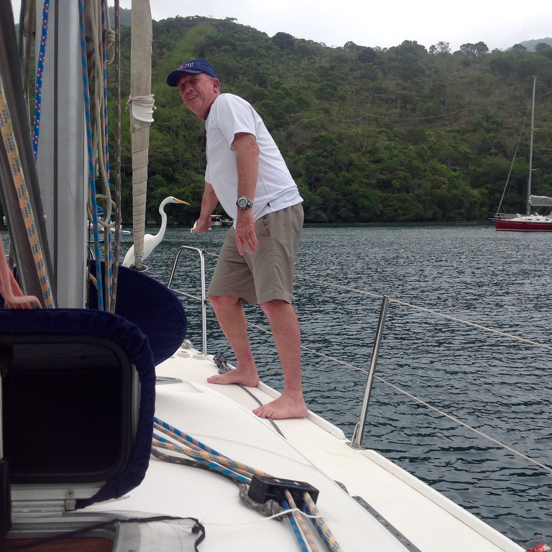 Dia 172 e 173 (10 e 11/12/16) sábado e domingo 🌤☀️🌤 Praia da Tapera, Sítio Forte, Ilha Grande, RJ. O sábado amanheceu com neblina e muitas nuvens, mas muito quente também. O mar estava lisinho e sem nenhum vento, bom para Remar de stand up” descemos para a praia caminhar e brincar com a Bella e depois aproveitei para standapear, vi muitas estrelas do mar das grandes, algumas laranjadas e outros com cor mais para o amarelo e branco. Muitos barcos já ancorados no lado do flutuante Bacana’s, afinal é fim de semana. hoje à tarde chega nosso querido amigo Padua, do veleiro Austral, que vem trazer seu barco para o Bracuhy, para curti-lo aqui, durante as férias.