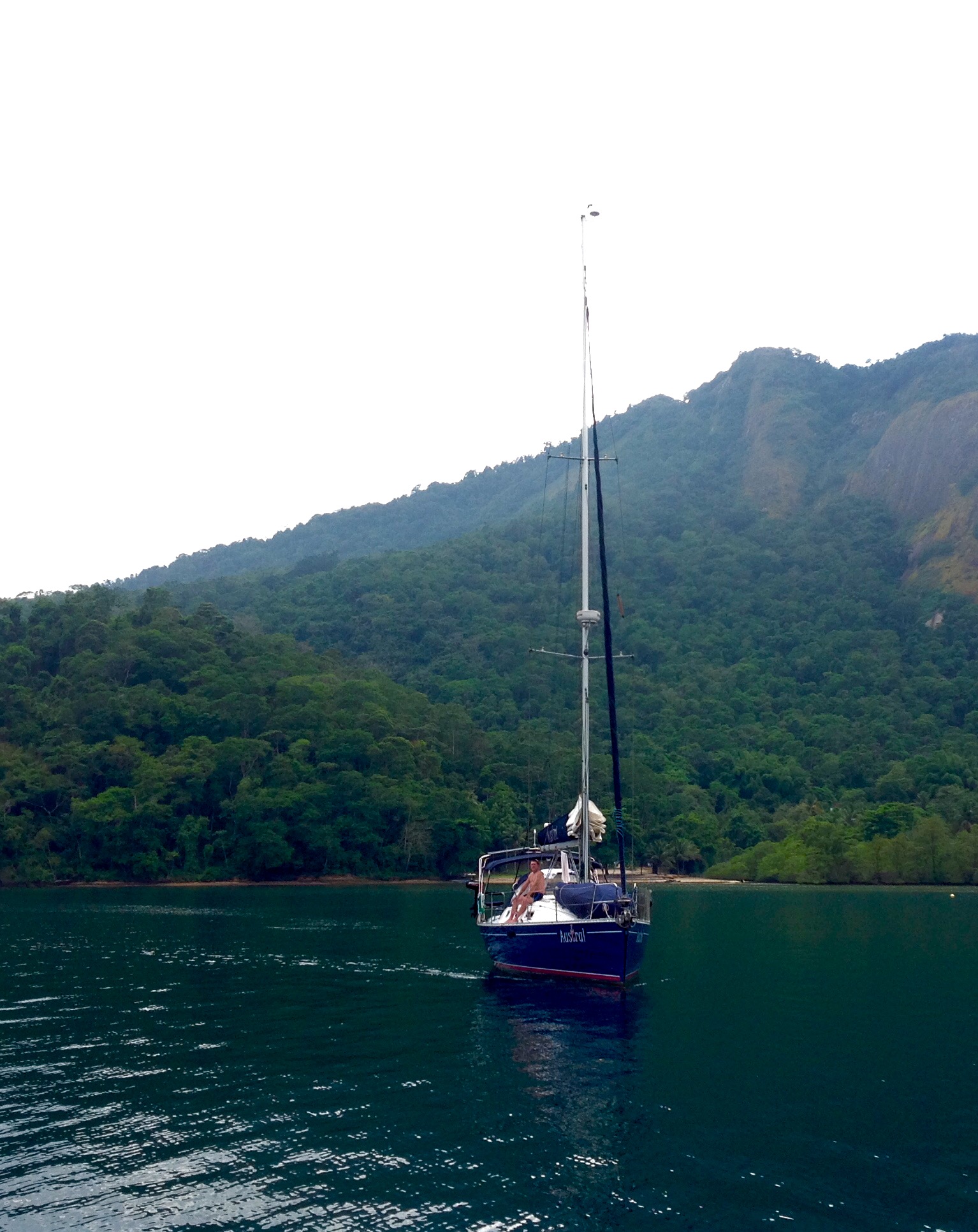 Domingo amanheceu nublado e quente novamente, o Renato foi até a prainha abastecer os galões de água doce, eu sai remar de stand up, depois organizamos o barco para sair junto com o Pádua, ele rumo ao Bracuhy e nos rumo a Paraty. Porém acabamos por ir para o restaurante da Telma comer uns petiscos e achamos melhor sair na segunda pela manhã, pois temos que passar no supermercado, na Marina Piratas. O Austral se despediu e rumou para o Bracuhy com bons ventos e ficou um aperto no coração, como acontece quando os amigos partem 😔. Nos despedimos da Telma e do Nalde, que tão bem nos trataram neste tempo que ficamos apoitados aqui na praia da Tapera, um dos lindos recantos da enseada do Sítio Forte. Namastê 🙏🏼
