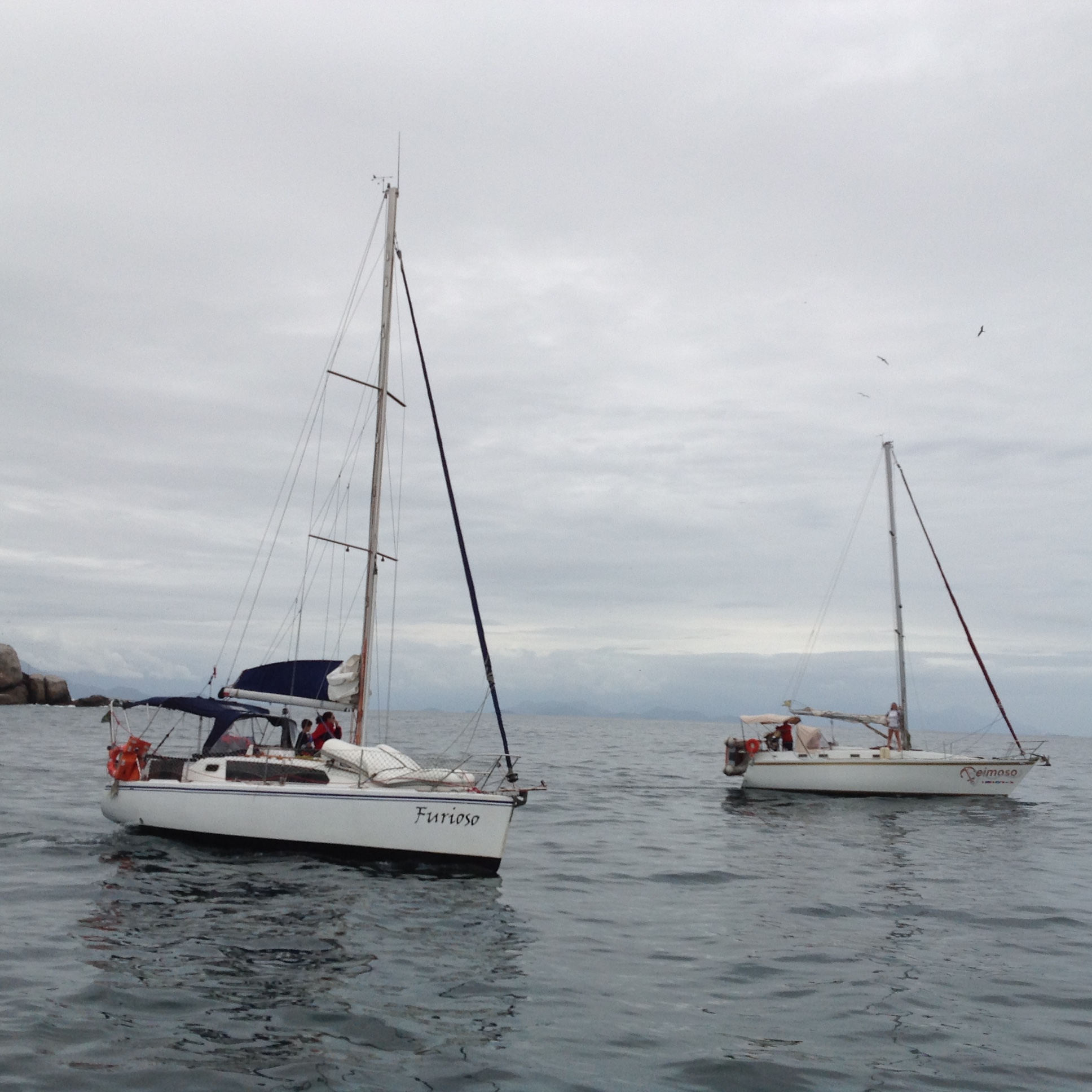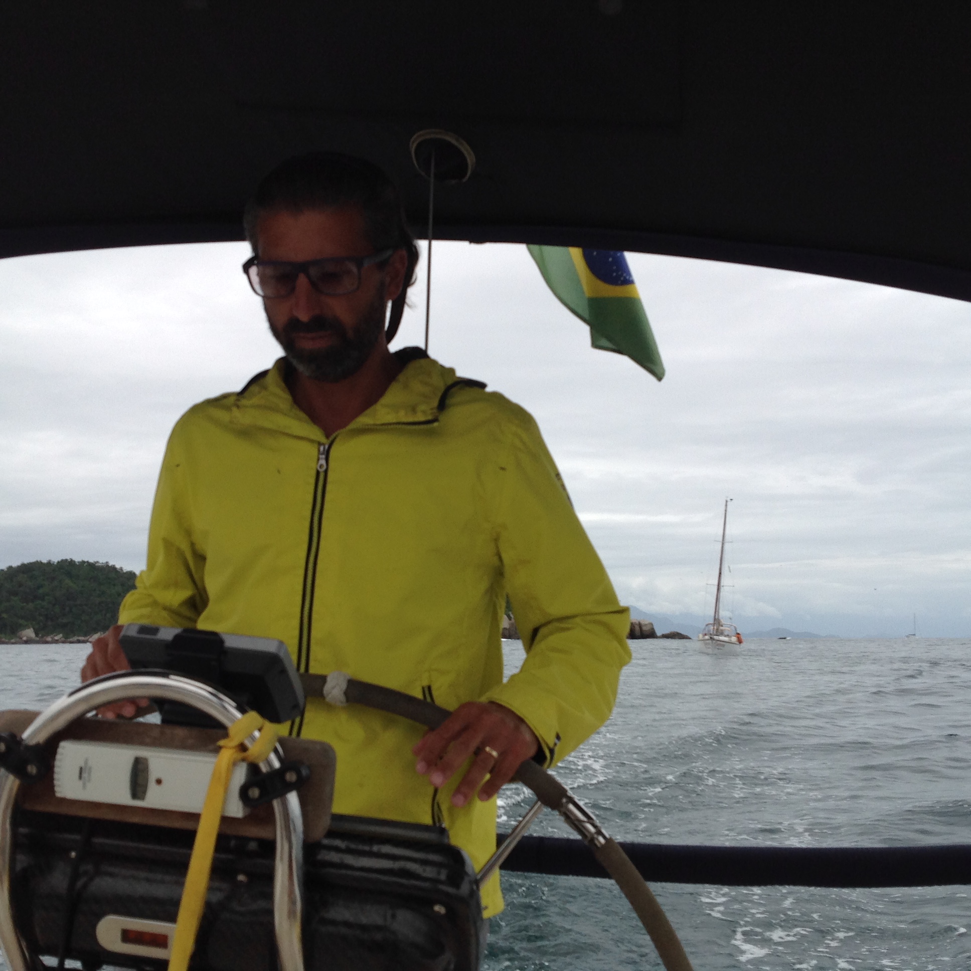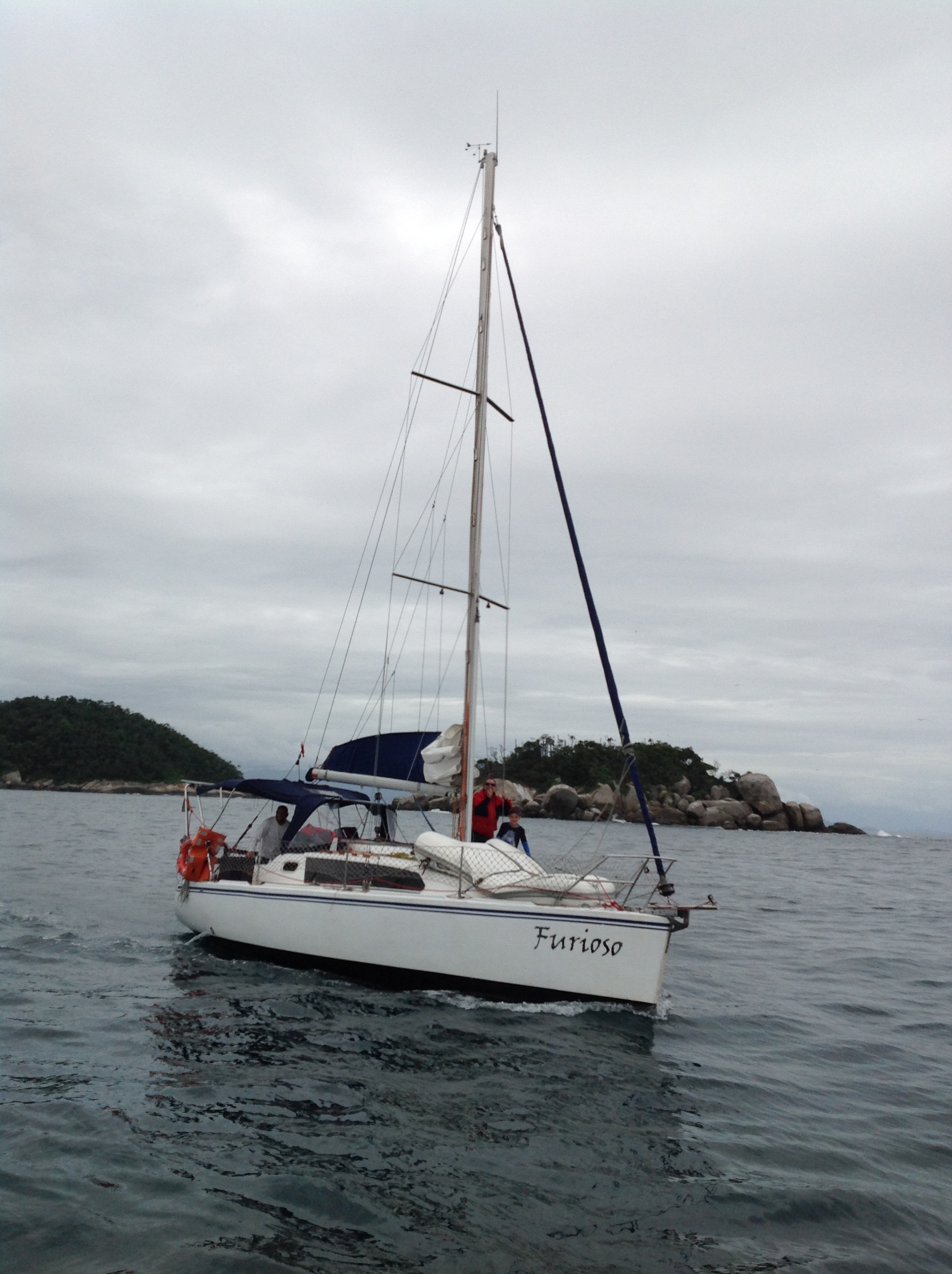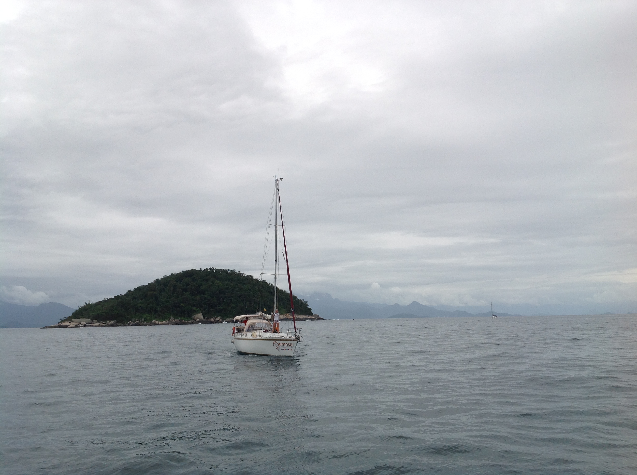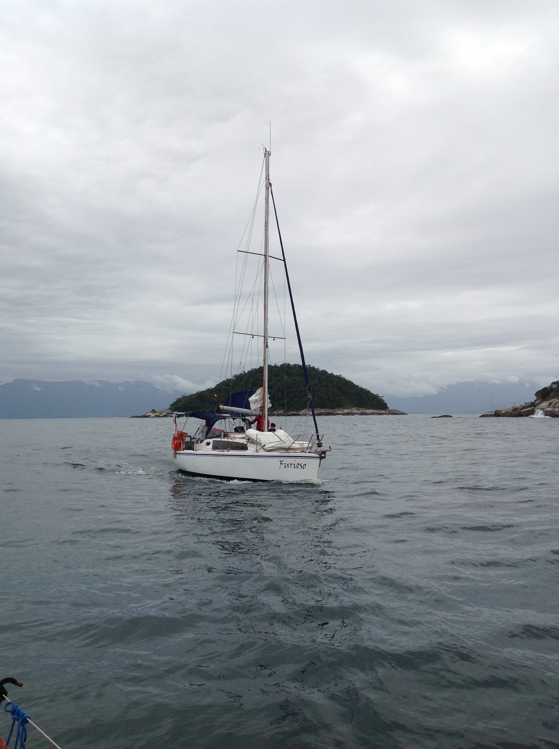 Dia 178 (16/12/16) sexta ☁️🌥🌤 Ilha do Cotia, Baía de Paraty, RJ. O dia amanheceu e caiu a maior chuva, o Renato foi de bote até Paraty para comprar o camarão que vamos preparar para receber os amigos que estão chegando hoje. Jorge, Leandra e Marco, do veleiro Furioso e o Mauricio e a Vera, do veleiro Teimoso. Com eles formamos o trio dos temperamentais: furioso, teimoso e relax kkk.