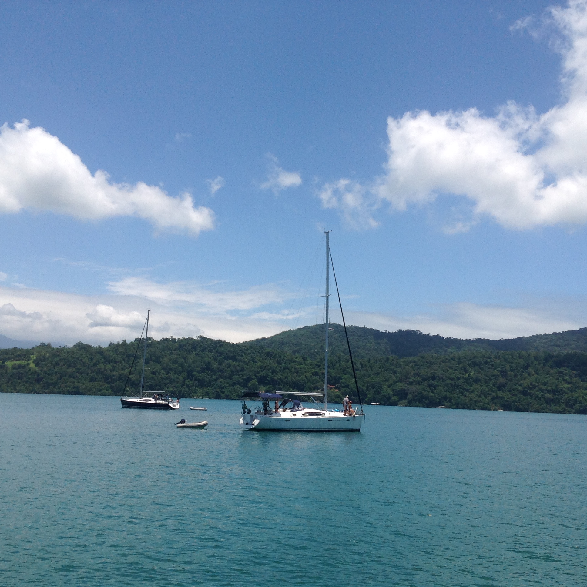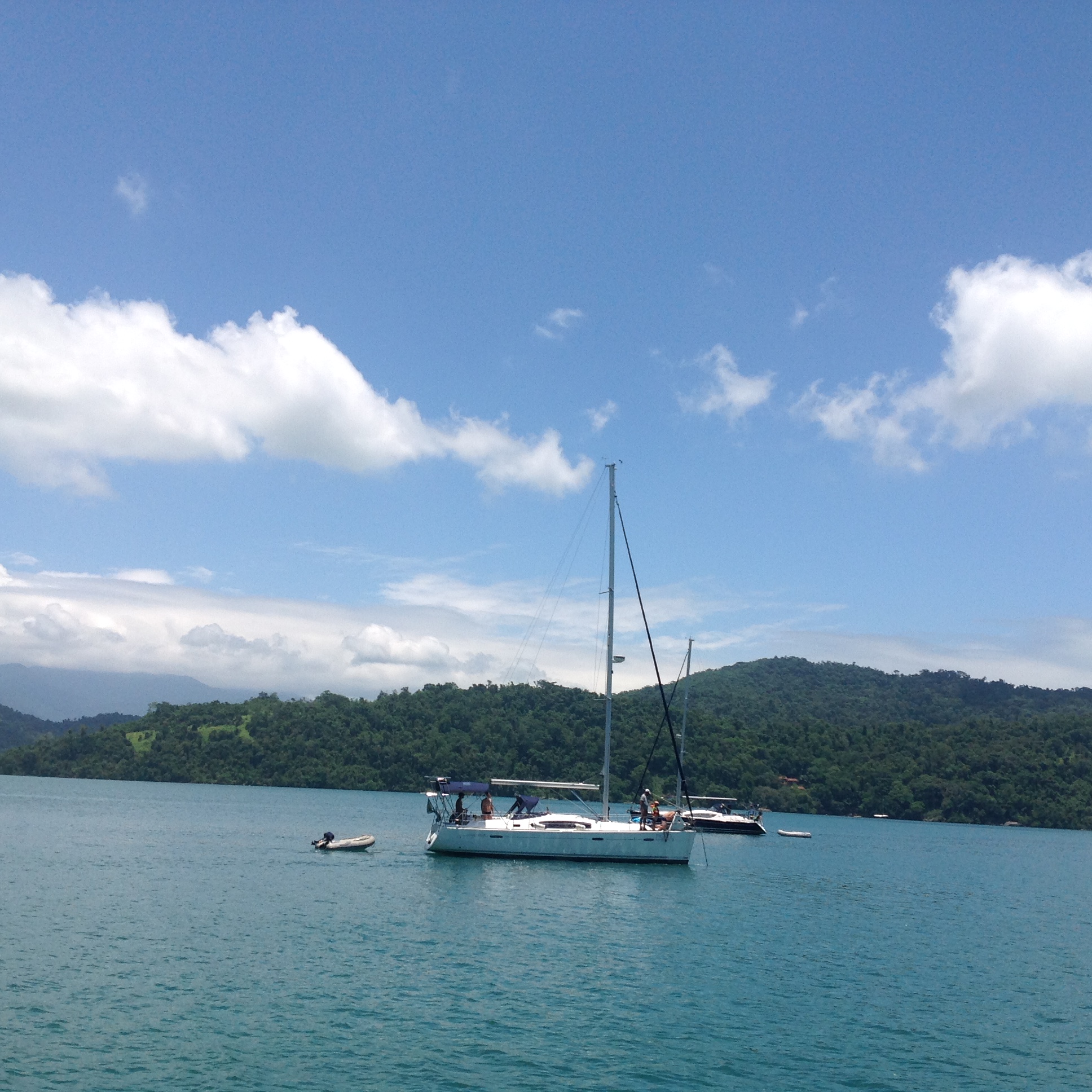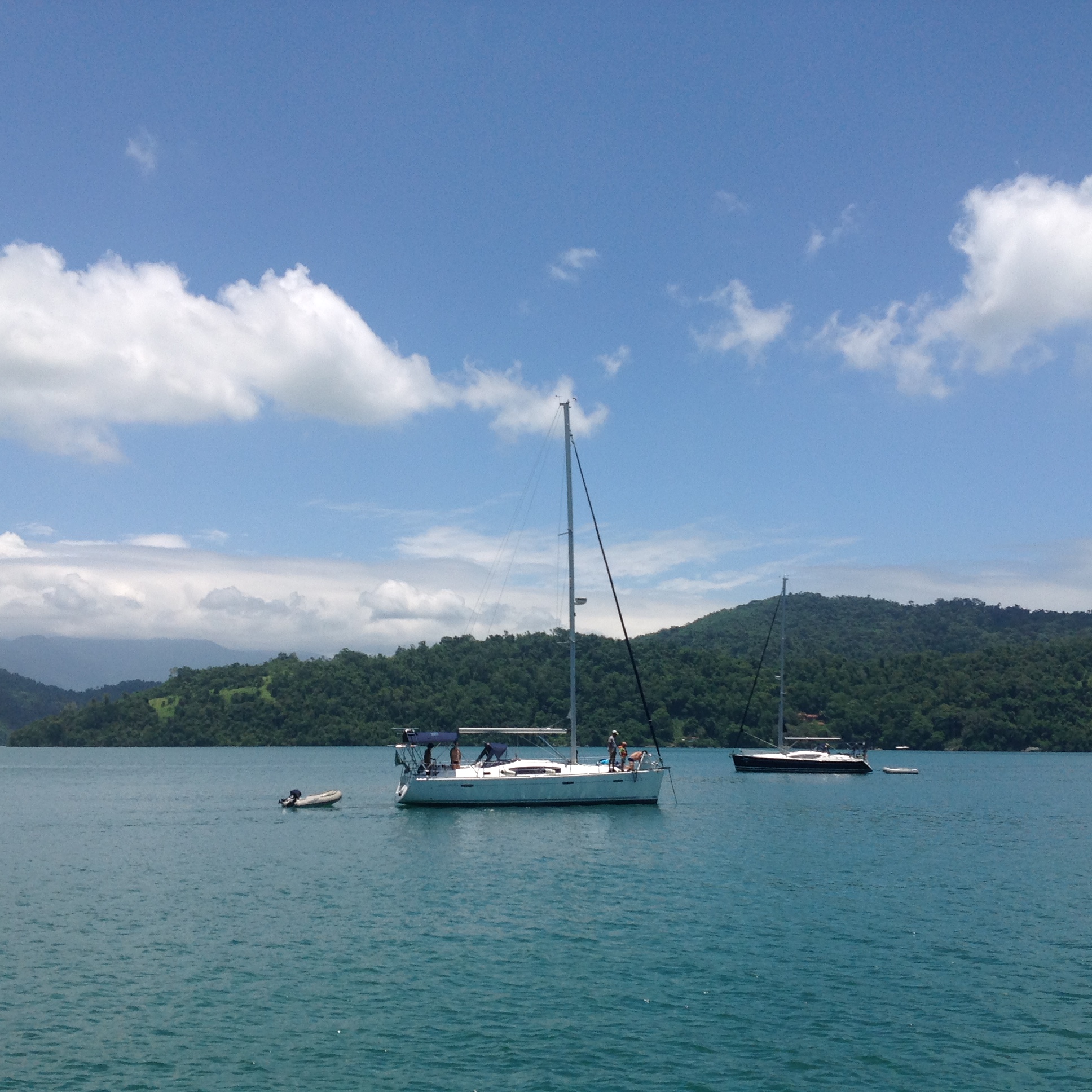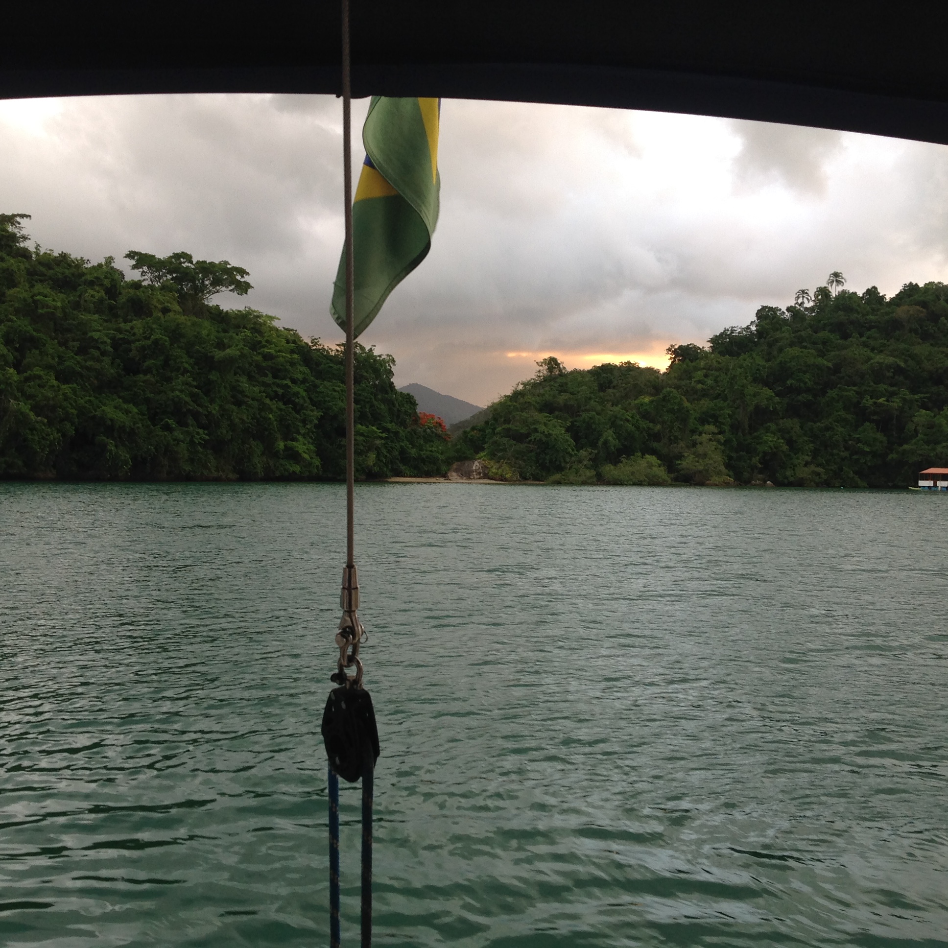 Os meninos combinaram e saíram para velejar com o Flavio, no veleiro Pigro e eu e a Vera fomos standapear e depois fomos para o Furioso, tomar uma caipira de maracujá, como aquelas que tomávamos na Ilha das Peças, Baía de Paranagua, PR. Tínhamos tirado os tapetes do convés para secar, pois estavam molhados da chuva e de repente dois deles escorregaram da guarda-mancebo e caíram na água, infelizmente não deu tempo de salvá-los 😨😰😭.
