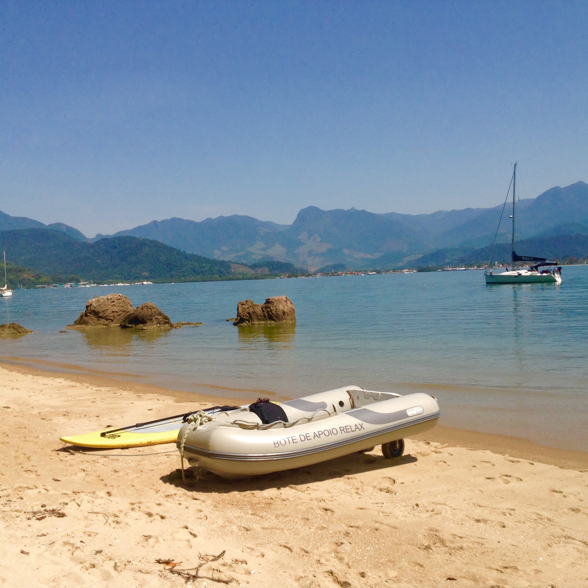 Aproveitamos para abastecer os barcos de água doce e também lavei algumas roupas. Esta prainha é muito conhecida pelos velejadores que não ficam em marinas e também por aqueles que estão de passagem e precisam de um lugar para pegar água doce, lavar o bote e parar num local de fácil acesso à cidade de Paraty. Curtimos a prainha pela manhã e depois fomos com os veleiros rumo a Paraty, onde ancoramos próximo ao cais e descemos de bote até a cidade. Passeamos pelo centro histórico, sempre movimentado pelos turistas que buscam passeios náuticos nas centenas de saveiros e escunas que levam os turistas para conhecer está linda Baia de Paraty. Almoçamos, fomos ao mercado reabastecer os barcos, passamos na sorveteria e voltamos para pernoitar na prainha dos vagabundos. Lá apresentamos aos nossos amigos a Helena e o Artur, do veleiro Paisano, e a Vera, do veleiro Teimoso, nos ofereceu um jantar caprichado que estava muito gostoso.