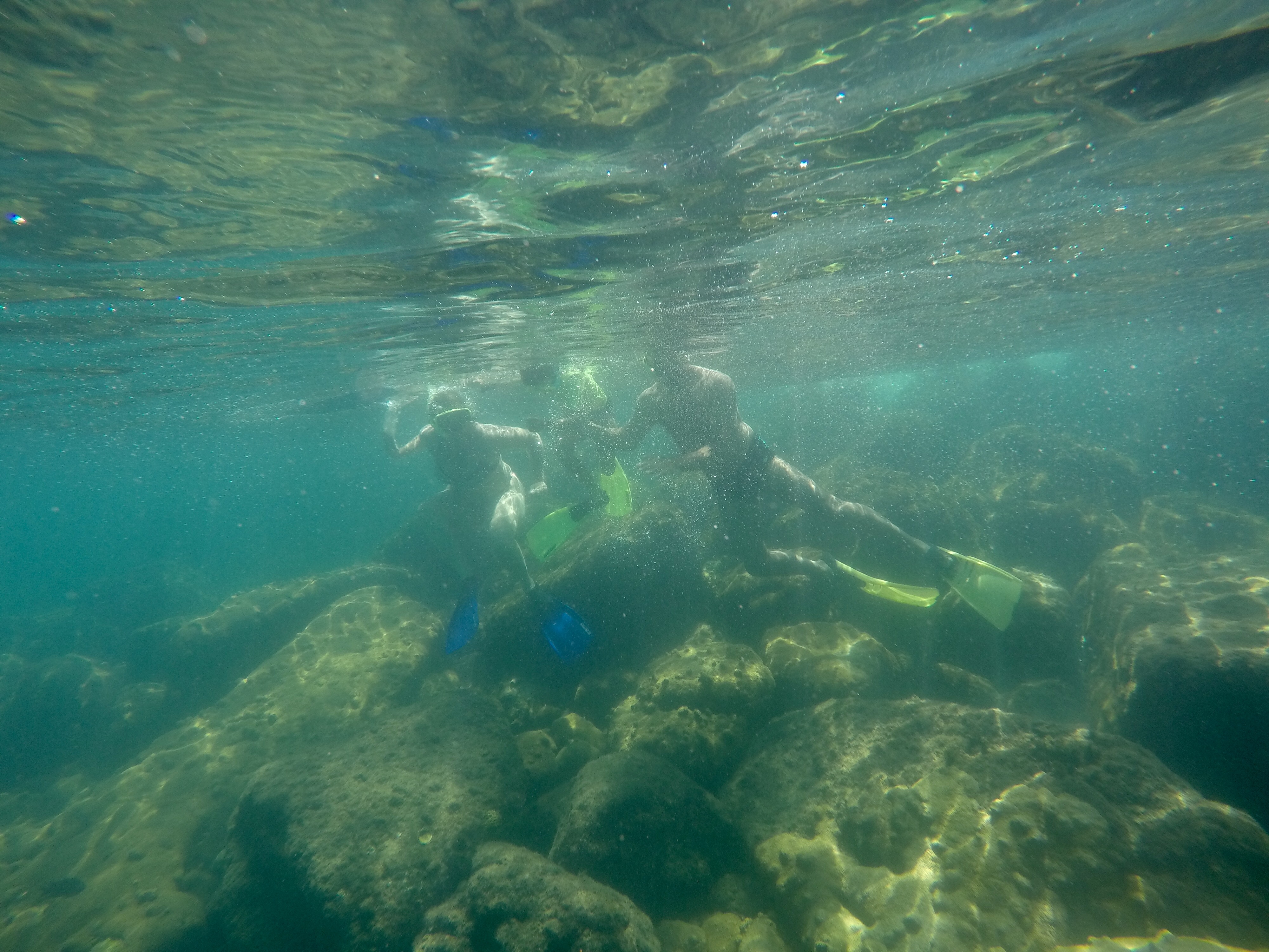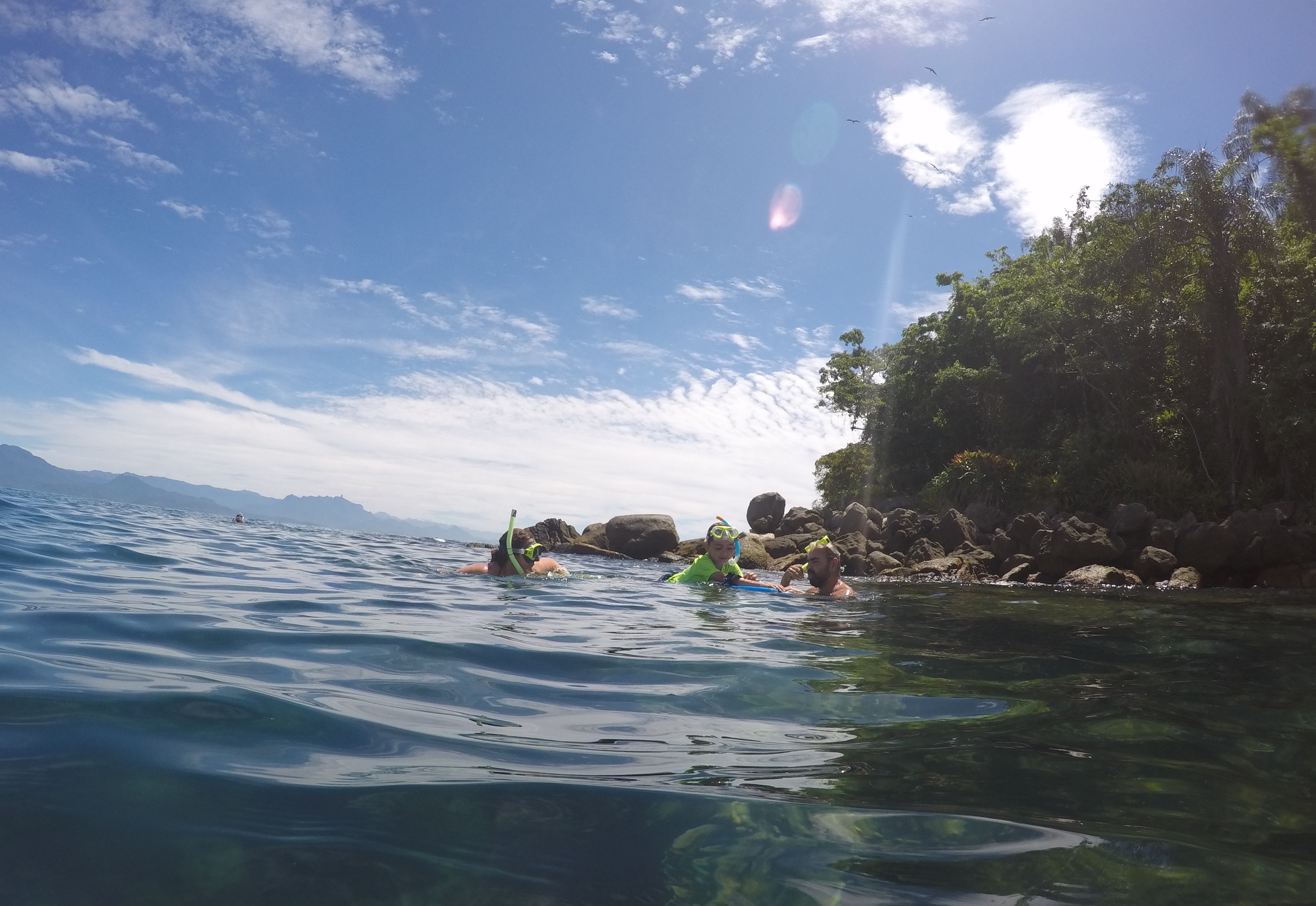A ideia é irmos cedo para aproveitar o mergulho antes do almoço, pois lá pelas 11 horas começam a chegar as escunas e com elas muita gente querendo mergulhar. Fomos em flotilha, Relax, Teimoso, Furioso e Paisano. Todos gostaram do mergulho com snorkel, bem bonito e um dos points de mergulho de Paraty.