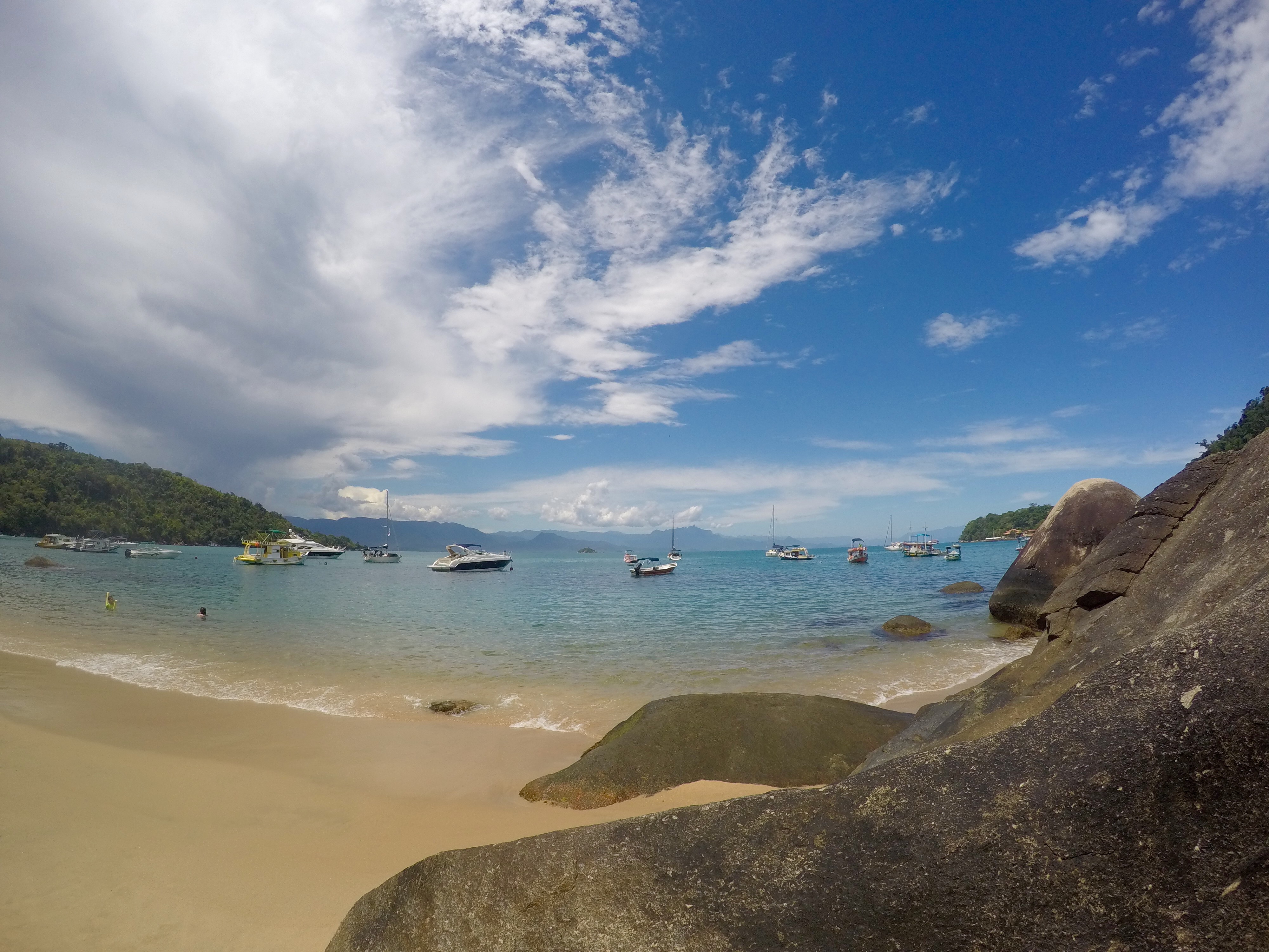 Dia 182 (20/12/16) terça 🌤☀️☀️ Praia Cantagalo, Paraty, RJ. Como o dia amanheceu lindo e ensolarado o Renato convidou a todos para um mergulho na Ilha Comprida, próxima da Ilha da Pescaria.
