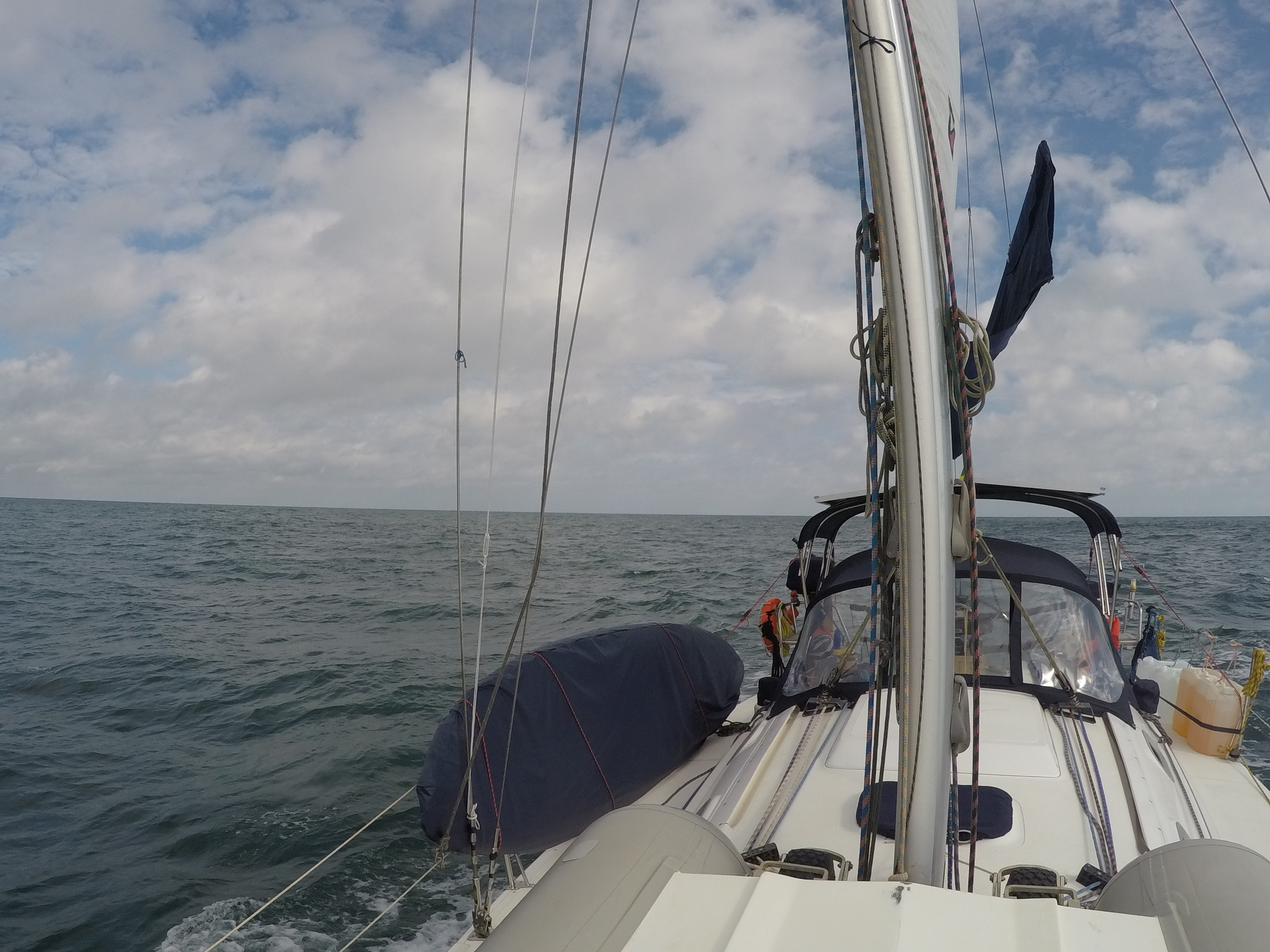Na quarta a noite fizemos Antonina a Ilha das Peças, onde pernoitamos para sair na quinta cedindo. Na quinta saímos às 06 horas da Ilha das Peças e pegamos um dia calmo, conforme a previsão, a noite começou com ondas de intervalo curto, causando o batimento constante da proa e o spray de água salgada e por vezes de ondas entrando no convés.