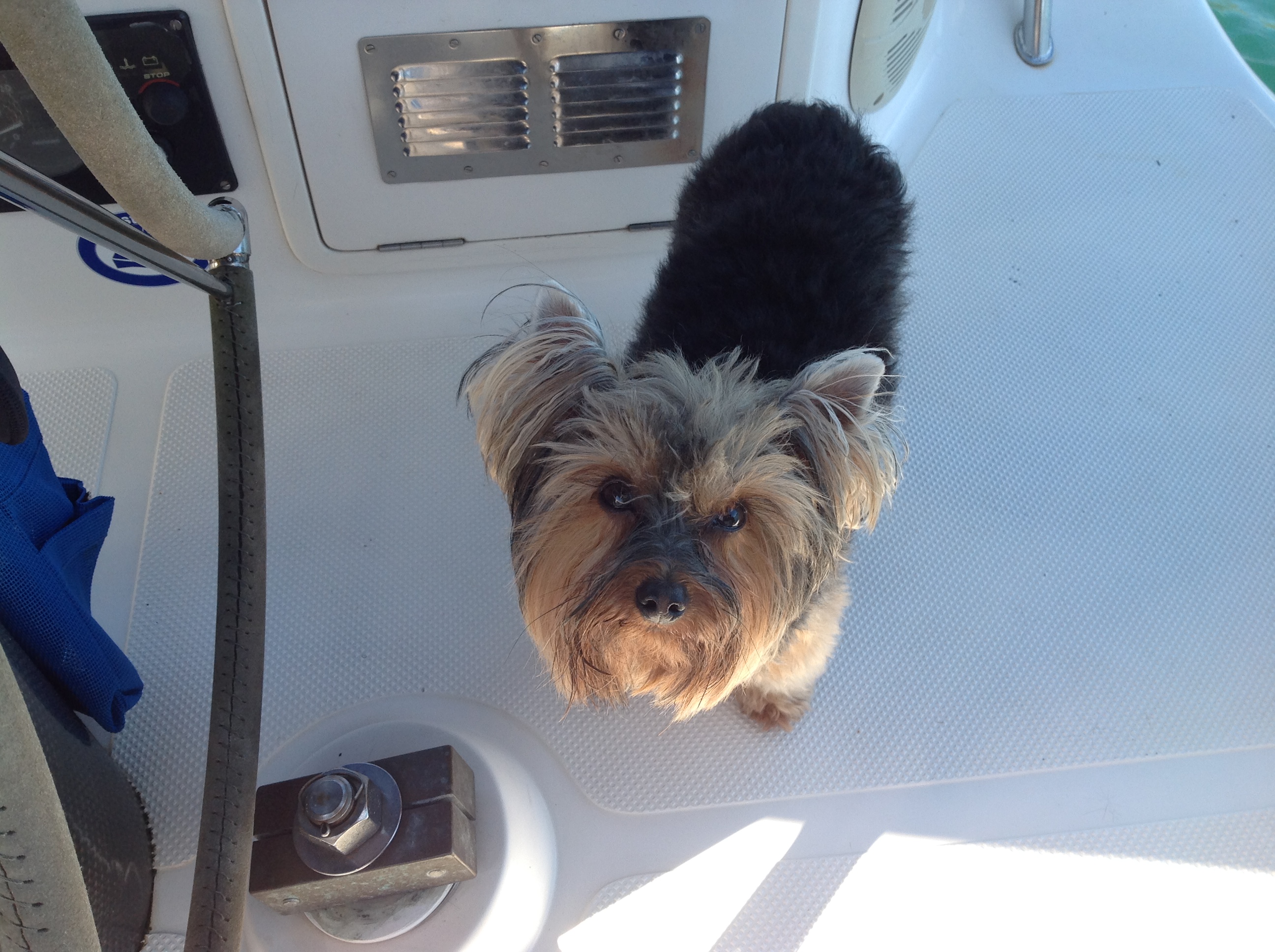 A Bella, nossa Yorkshaire, ficou muito assustada com o barulho das ondas e fiquei cuidando dela no interior enquanto o comandante tocava lá fora no cockpit, noite adentro até a manhã seguinte. Na sexta pela manhã as ondas diminuíram por um tempo e a tarde o mar cresceu com uma forte lestada, com rajadas de 25 e 32 constantes. Longo e cansativo dia.