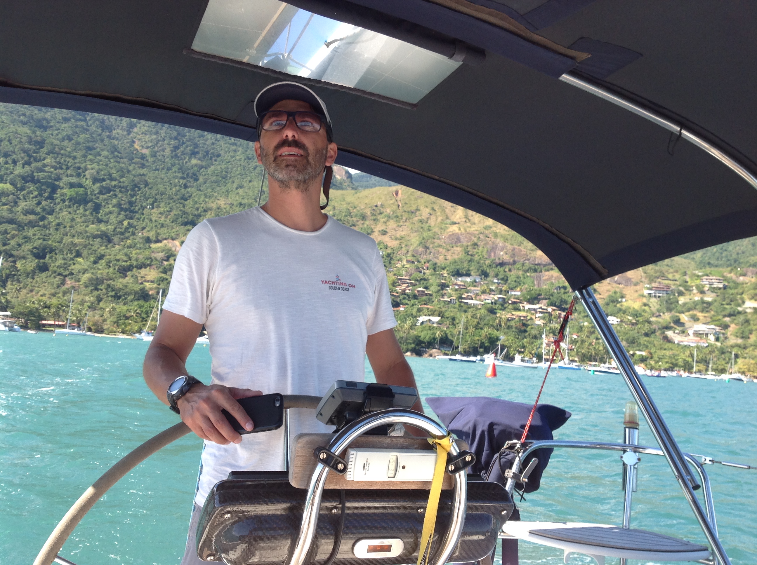 Acordamos com um belo dia de sol, abastecemos um diesel verana e fomos para uma poita bem em frente à prainha, com pier a 30 metros para desembarque. Descemos e encontramos Ilhabela animada e agitada com muitos turistas e velejadores, que vieram para a 44 Semana de Vela de Ilhabela.